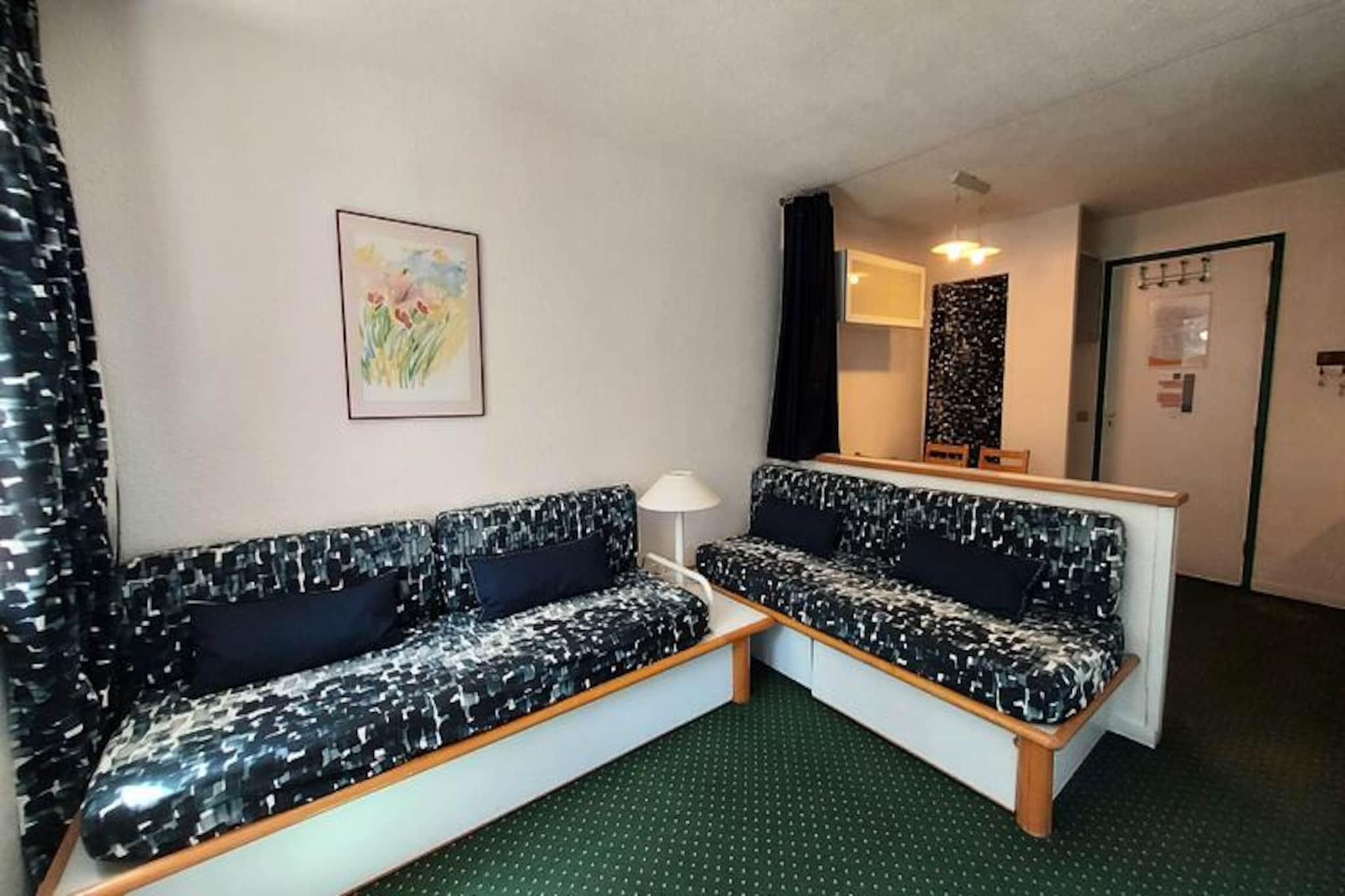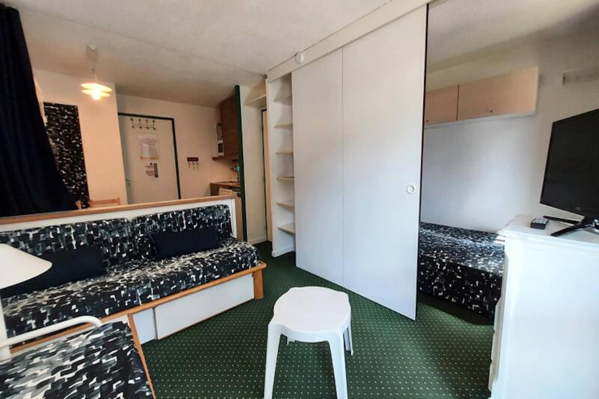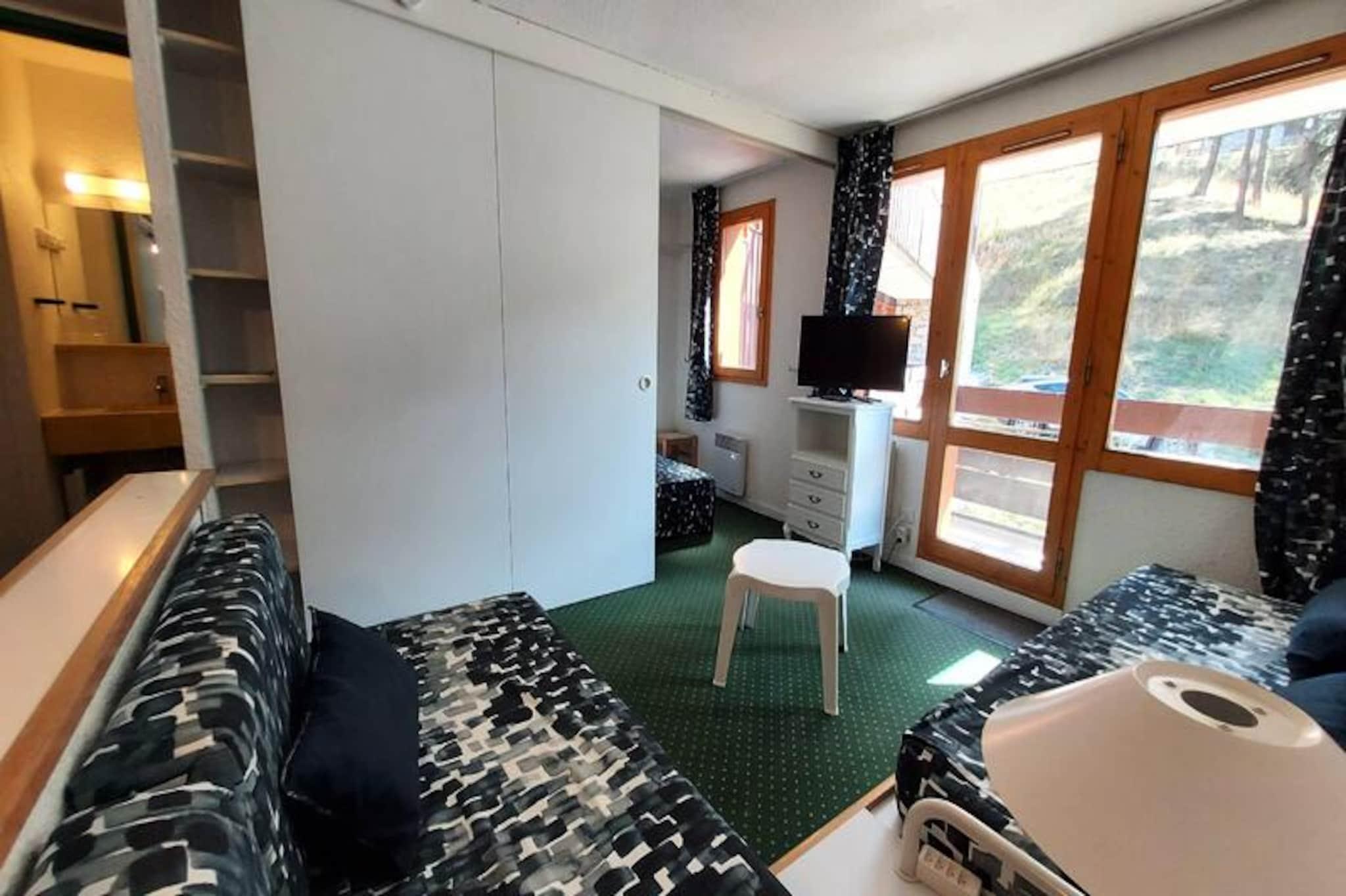 High above the charming alpine village of Montchavin, this cozy 25m² apartment offers a serene retreat for up to four guests. Situated on the third floor of the Le 4ème Dé residence, it provides a warm and inviting space to unwind after a day of mountain adventures. The south-facing balcony presents a stunning view of the resort, where the beauty of the surrounding peaks meets the vibrant energy of the village below. Whether you're here for the thrill of skiing or the tranquility of nature, this apartment is your perfect base. Inside, you'll find a thoughtfully designed layout featuring a bedroom with a comfortable double bed and a movable partition for added privacy. The living room, equipped with two single beds and a TV, offers a cozy spot to relax. The kitchen area is fully equipped with modern amenities, including a microwave, dishwasher, induction hobs, refrigerator, and even a raclette and fondue set for authentic alpine dining experiences. The bathroom, with its separate toilet, ensures convenience, while the apartment's duvets promise a restful night's sleep. Please note, this is a non-smoking, pet-free apartment with no WiFi, allowing you to truly disconnect and embrace the mountain atmosphere. The Le 4ème Dé residence is well-equipped with two elevators and a ski locker for your convenience. Located just 200 meters from the slopes and 300 meters from the resort center, you'll enjoy easy access to all the activities and amenities Montchavin has to offer. The nearby forest adds a touch of natural serenity, while the traditional architecture of the Hameau du Sauget neighborhood creates a picturesque alpine setting. Parking is relatively easy, making your arrival and departure hassle-free. Whether you're here to carve through fresh powder, explore scenic hiking trails, or simply soak in the alpine charm, this apartment offers the perfect blend of comfort, convenience, and breathtaking surroundings. Let the magic of Montchavin create memories you'll cherish forever.