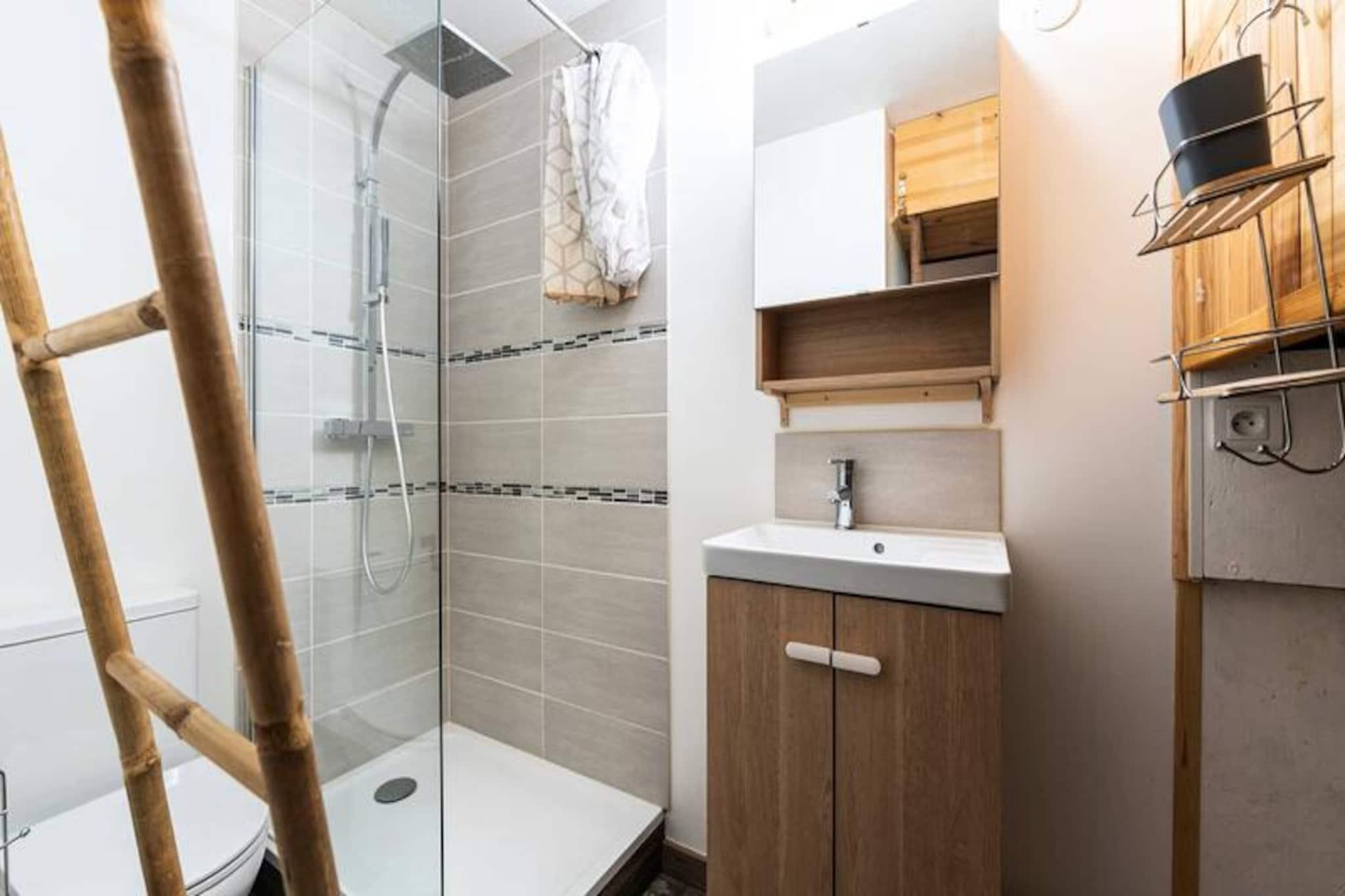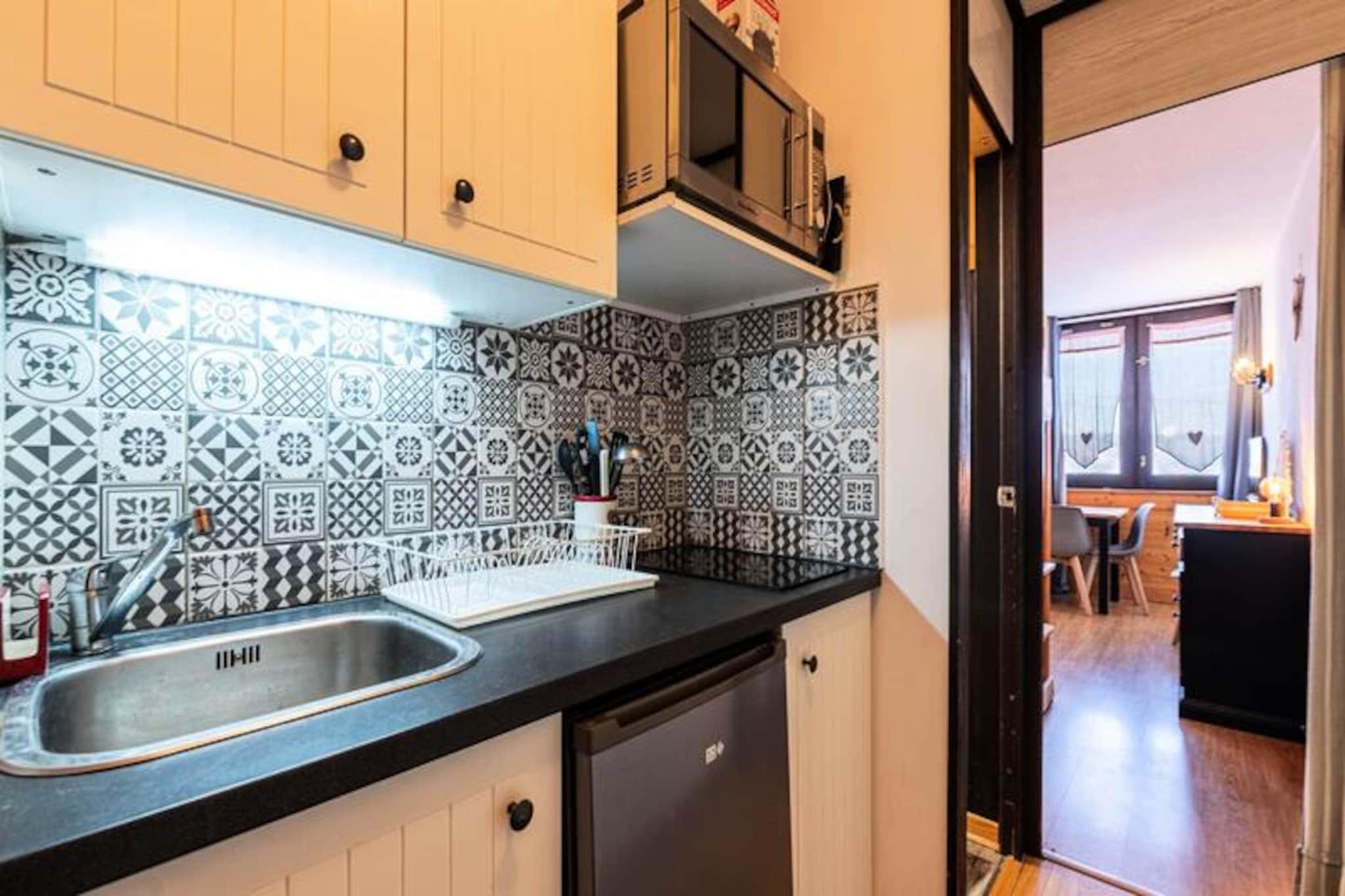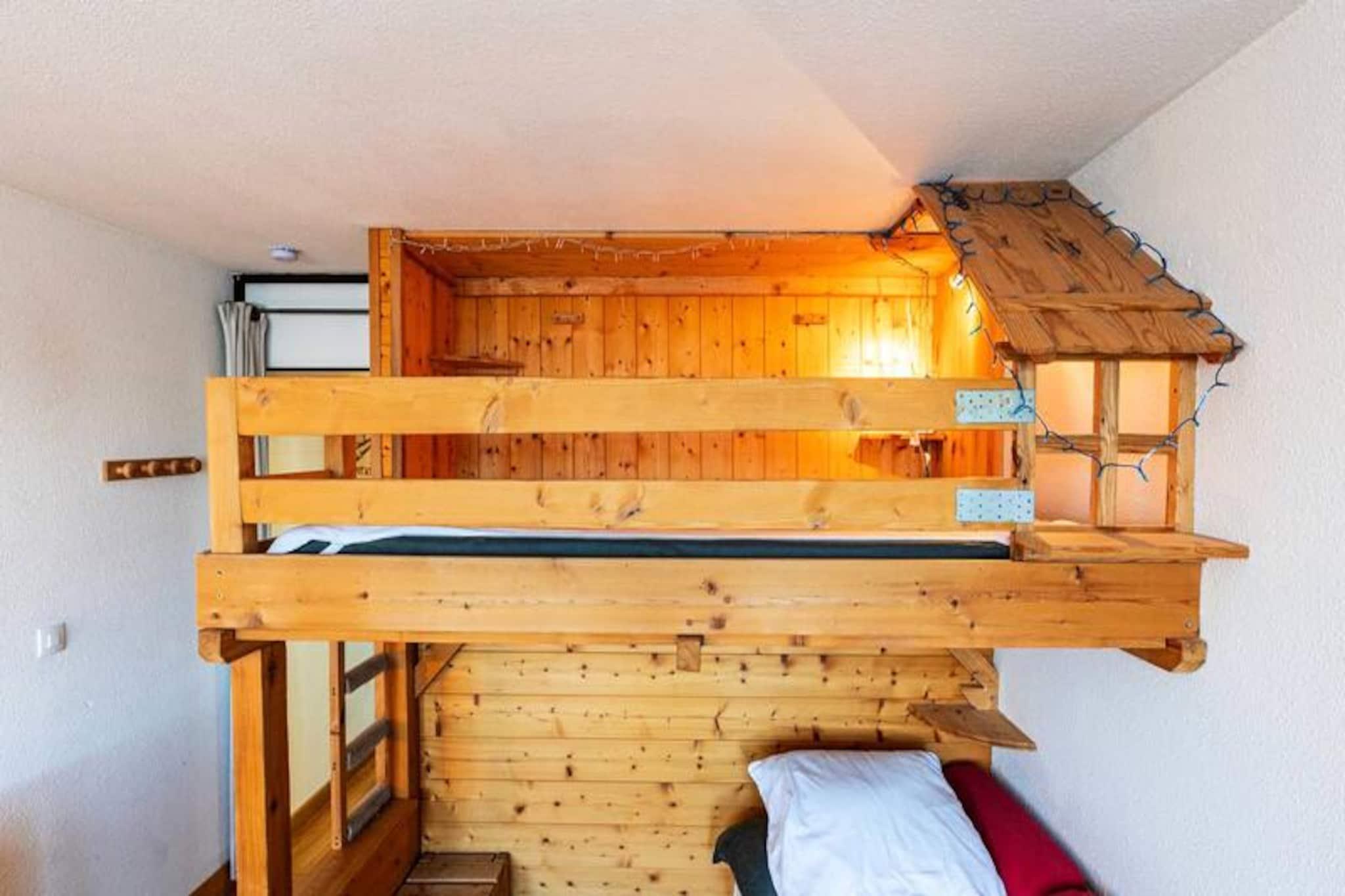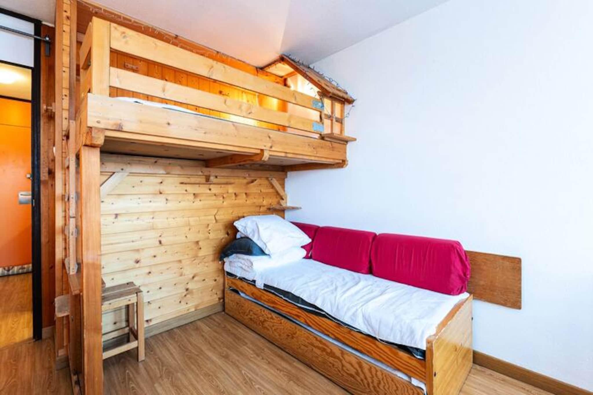 High above the Tarentaise Valley, where the majestic Mont Blanc dominates the horizon, this charming studio offers a cozy alpine retreat in the iconic Paquebot des Neiges residence at La Plagne Aime 2000. Imagine waking up to breathtaking views of snow-capped peaks and the serene valley below, with the convenience of ski-in/ski-out access just steps away. Designed for families and couples seeking both adventure and relaxation, this property combines modern comforts with the timeless beauty of the French Alps. \n\nThe studio, thoughtfully decorated with mountain-inspired touches, accommodates up to four guests. The living area features a pull-out sofa bed and mezzanine sleeping space, creating a warm and practical environment for restful nights. A fully equipped kitchen awaits culinary enthusiasts, complete with electric hobs, a combination oven/microwave, and even a raclette grill for authentic alpine dining experiences. Large windows flood the space with natural light, framing the stunning scenery outside. Additional amenities include a ski locker for effortless slope access and free above-ground parking nearby. \n\nStep outside and immerse yourself in the vibrant atmosphere of La Plagne Aime 2000. The residence boasts an indoor shopping gallery, ensuring that everything from groceries to ski rentals is within easy reach. For a change of pace, Plagne Centre is just minutes away via a free cable car ride, offering even more dining, shopping, and entertainment options. Whether you're skiing down pristine slopes, exploring mountain trails in summer, or simply soaking in the panoramic views, this location caters to every season and every traveler. \n\nChoose this delightful studio for your next alpine getaway and create unforgettable memories surrounded by the grandeur of Mont Blanc and the welcoming charm of La Plagne.