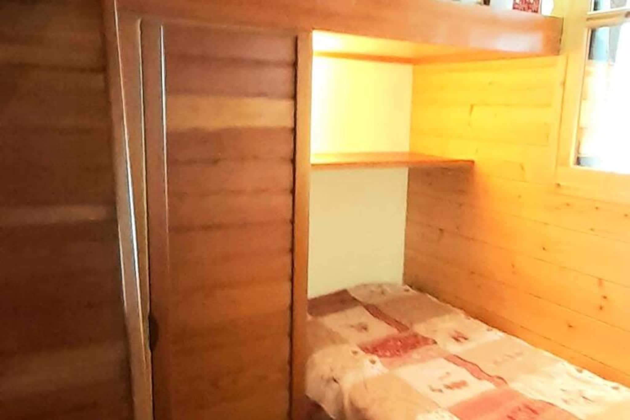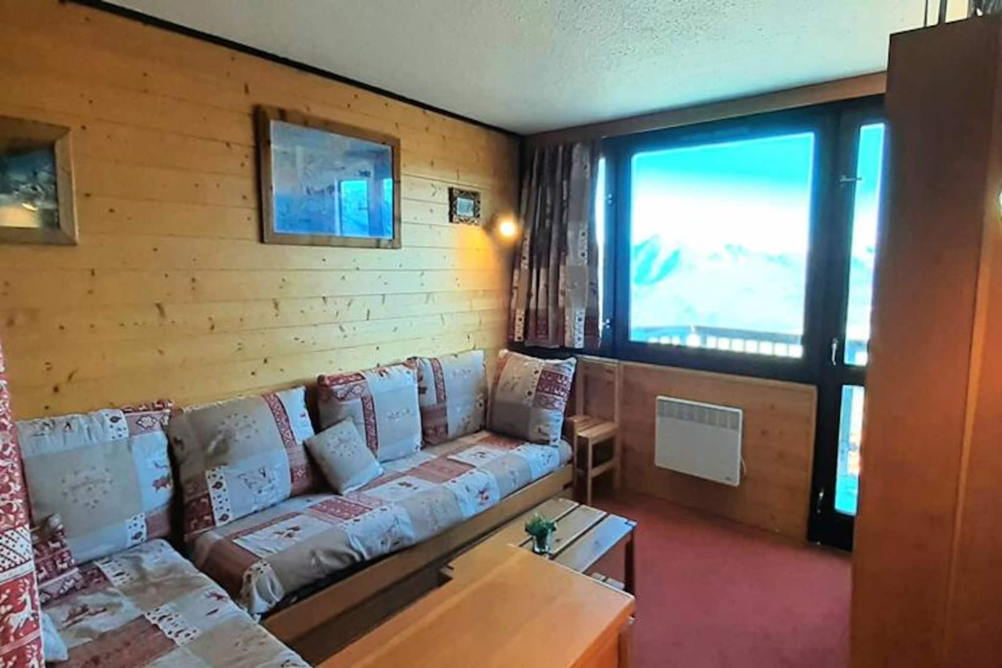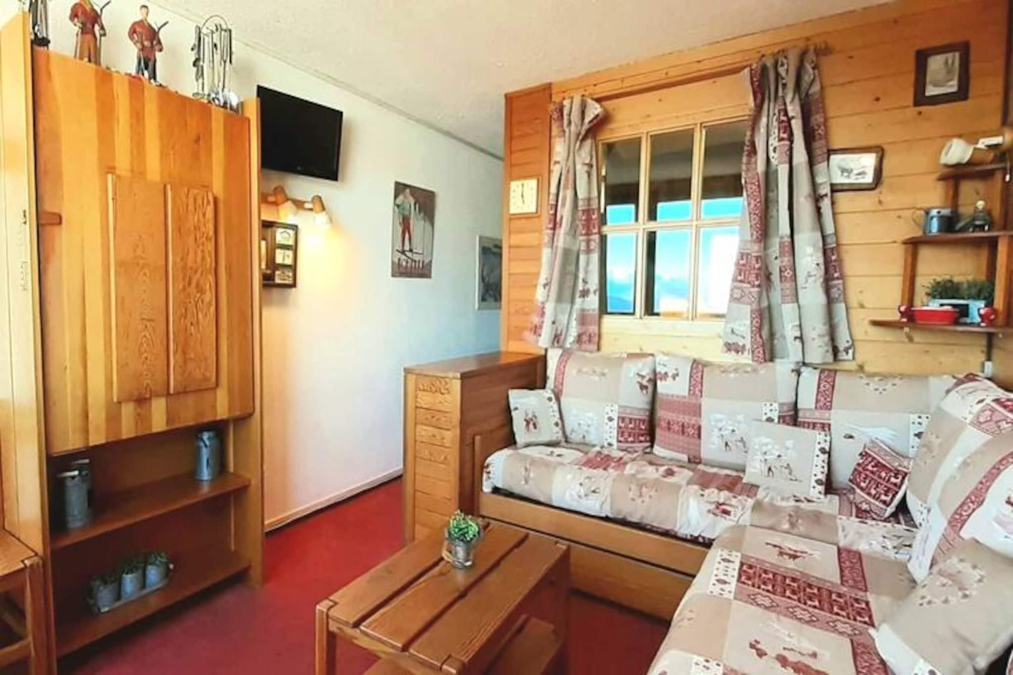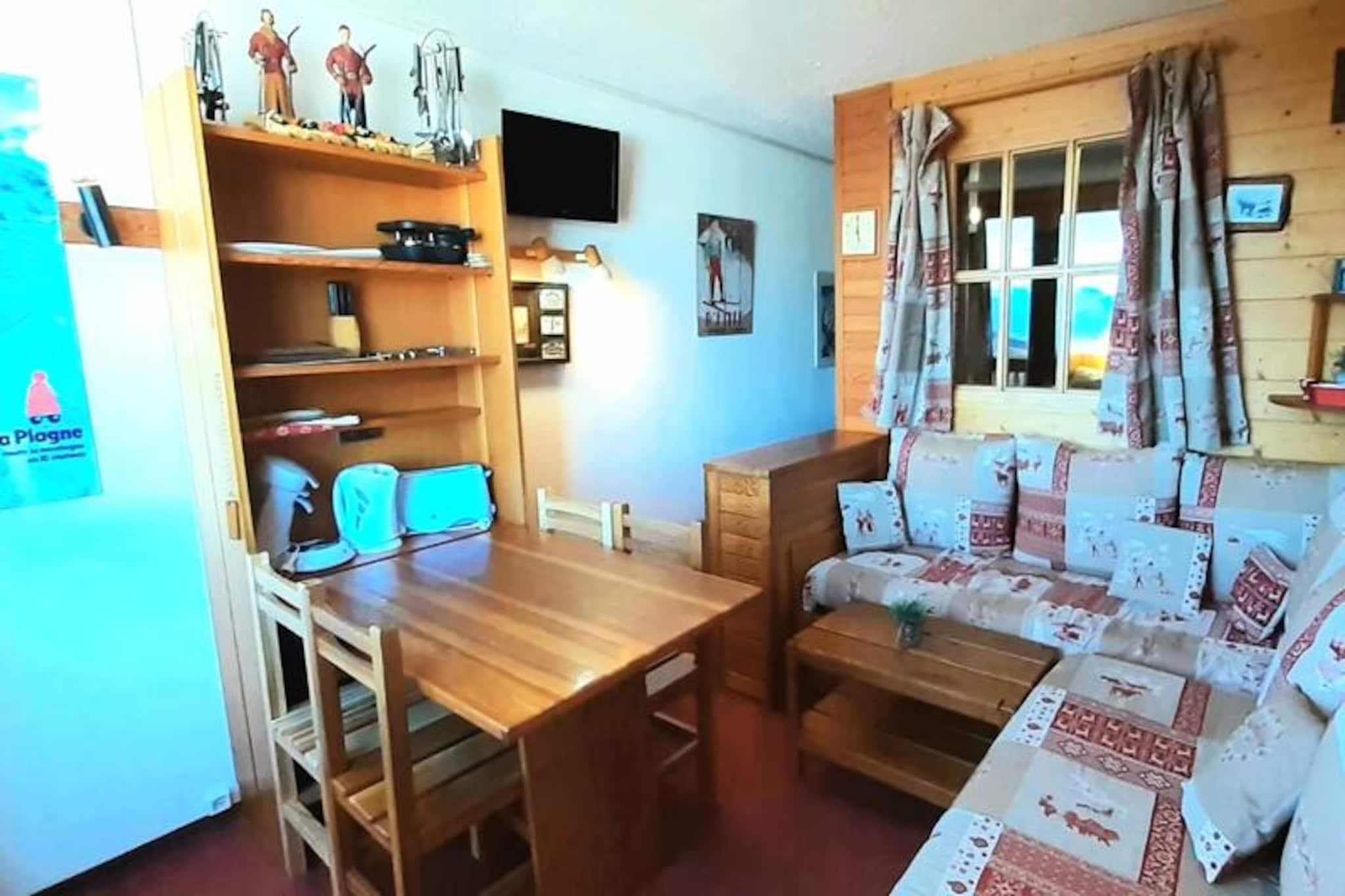 With breathtaking views of Mont Blanc and the Tarentaise Valley, this charming studio cabin in the heart of Aime La Plagne offers an unforgettable alpine retreat. Set within the iconic 'Paquebot des Neiges' residence, this property combines modern comfort with the timeless beauty of the French Alps. Imagine waking up to the golden hues of sunrise over the mountains, stepping out directly onto the slopes, and ending your day with a spectacular sunset panorama from your 13th-floor vantage point. The residence's central location ensures everything you need is just steps away, from ski-in/ski-out access to a convenient shopping mall. \n\nThe 25m² studio comfortably accommodates up to four guests, making it ideal for families or small groups. The living area features a cozy corner sofa bed and a trundle bed, which can be arranged as two separate singles or a large double bed. A foldable shepherd's table allows for intimate meals or extra space for relaxation. The fully equipped kitchen includes all essentials, from a dishwasher to a raclette grill, ensuring you can enjoy hearty alpine meals after a day on the slopes. The cabin bedroom offers two single beds, one on a mezzanine, perfect for creating a snug retreat. A modern bathroom with a shower completes the space, while additional amenities such as a ski locker and free parking add to the convenience. \n\nBeyond the property, Aime La Plagne is a paradise for winter sports enthusiasts and nature lovers alike. With direct ski access and the nearby Télémétro connecting you to Plagne Centre in minutes, adventure is always within reach. In summer, the area transforms into a haven for hikers and cyclists, with trails that wind through lush alpine meadows and offer stunning views of Mont Blanc. Whether you're here to carve through pristine snow or explore the vibrant summer landscape, this studio cabin is your gateway to the best of the Alps. \n\nChoose this property for its unbeatable location, cozy ambiance, and the promise of unforgettable memories in the heart of the mountains.