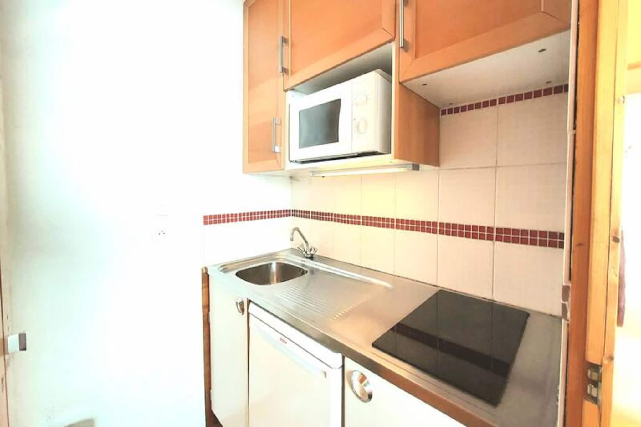 High above the picturesque Tarentaise Valley, this charming apartment offers a cozy alpine retreat in the heart of Plagne Centre. With its south-facing balcony, you’ll wake up to the warmth of the sun and breathtaking views of the surrounding peaks. The residence enjoys a peaceful location, yet places you just steps away from the vibrant energy of one of the Alps’ most iconic ski destinations. Whether you’re here for thrilling winter sports or serene summer hikes, this is your gateway to unforgettable mountain adventures. The apartment, located on the first floor, spans 24m² and is thoughtfully designed for comfort and convenience. The living room features a comfortable sofa bed and TV, perfect for relaxing after a day on the slopes. A separate kitchen is equipped with a microwave, refrigerator, and electric stovetop, making it easy to prepare meals at home. The entrance area includes practical bunk beds, ideal for families or small groups. A private bathroom with a toilet completes the space. Additional amenities include a ski locker and free parking right in front of the residence, ensuring a hassle-free stay. Situated just 100 meters from the nearest ski slopes, this apartment is a dream for snow enthusiasts. The shops, restaurants, and services of Plagne Centre are only 600 meters away, offering everything you need within walking distance. Don’t miss the ascent to La Grande Rochette, where you’ll be rewarded with one of the most stunning 360° panoramas in the Alps. In summer, the area transforms into a haven for hikers and nature lovers, with trails that wind through lush alpine meadows and forests. Whether you’re seeking adrenaline-fueled days on the slopes or tranquil evenings under starry skies, this apartment provides the perfect base for your alpine escape. Book your stay and experience the magic of Plagne Centre, where every season brings its own unique charm.