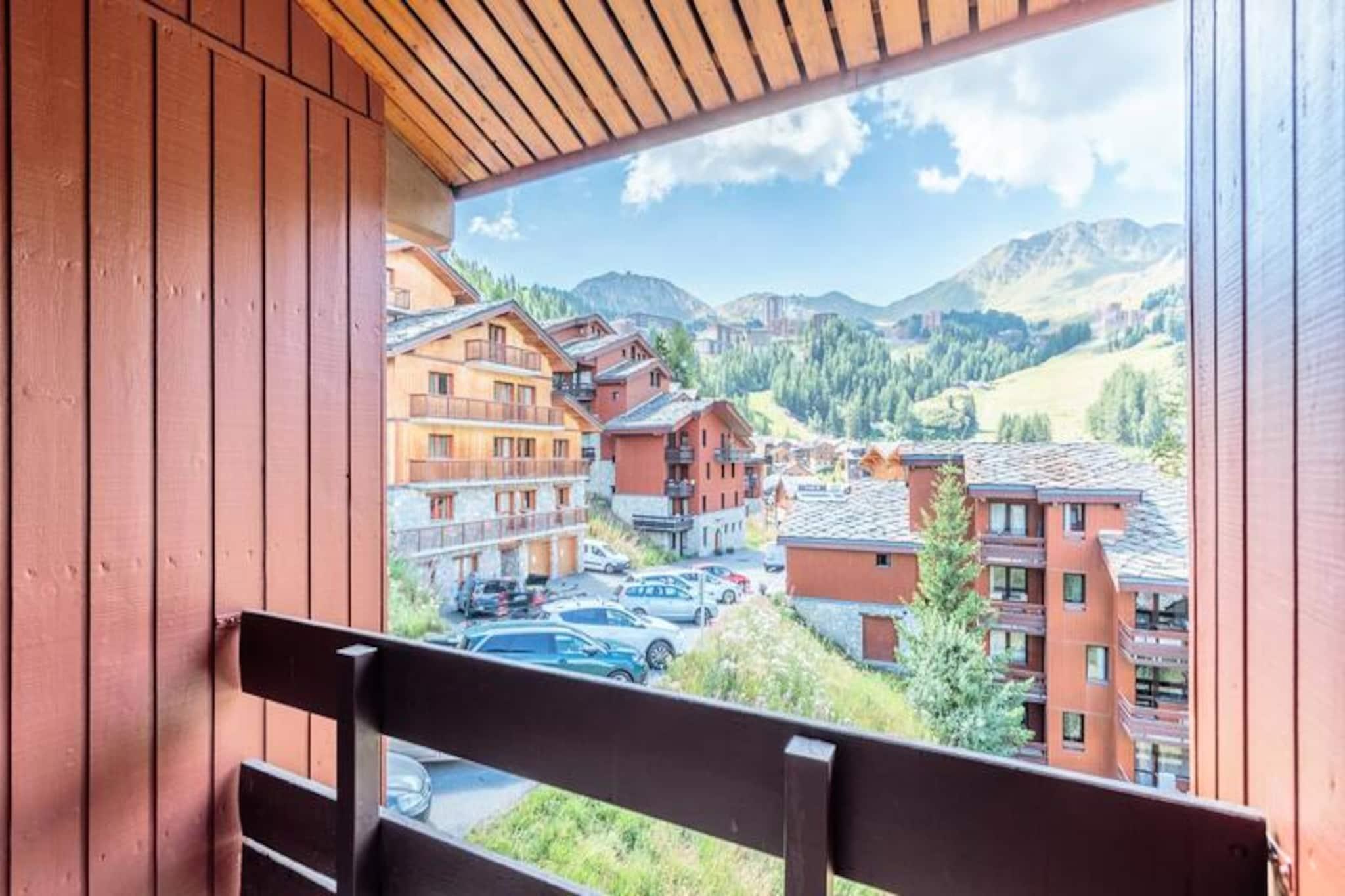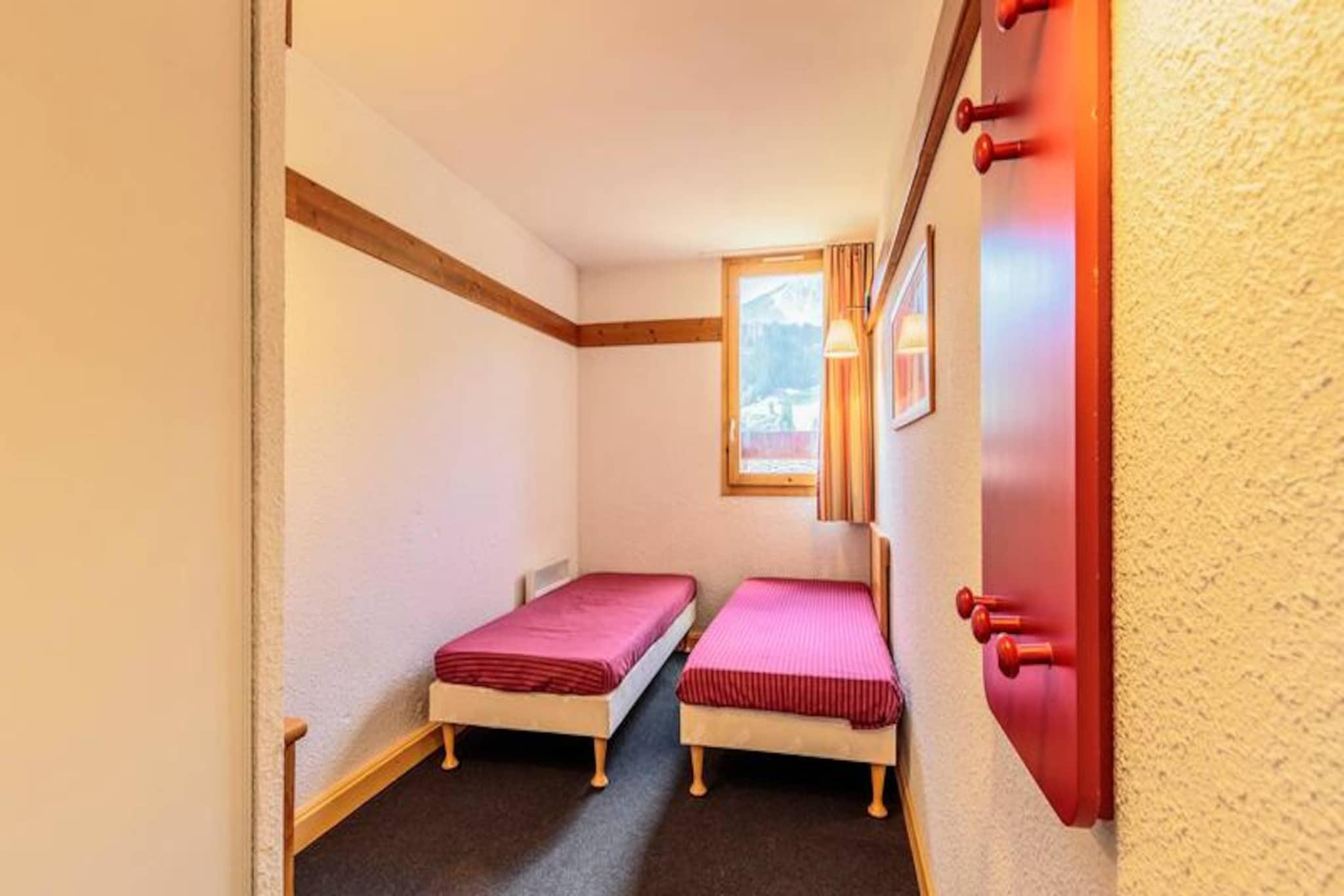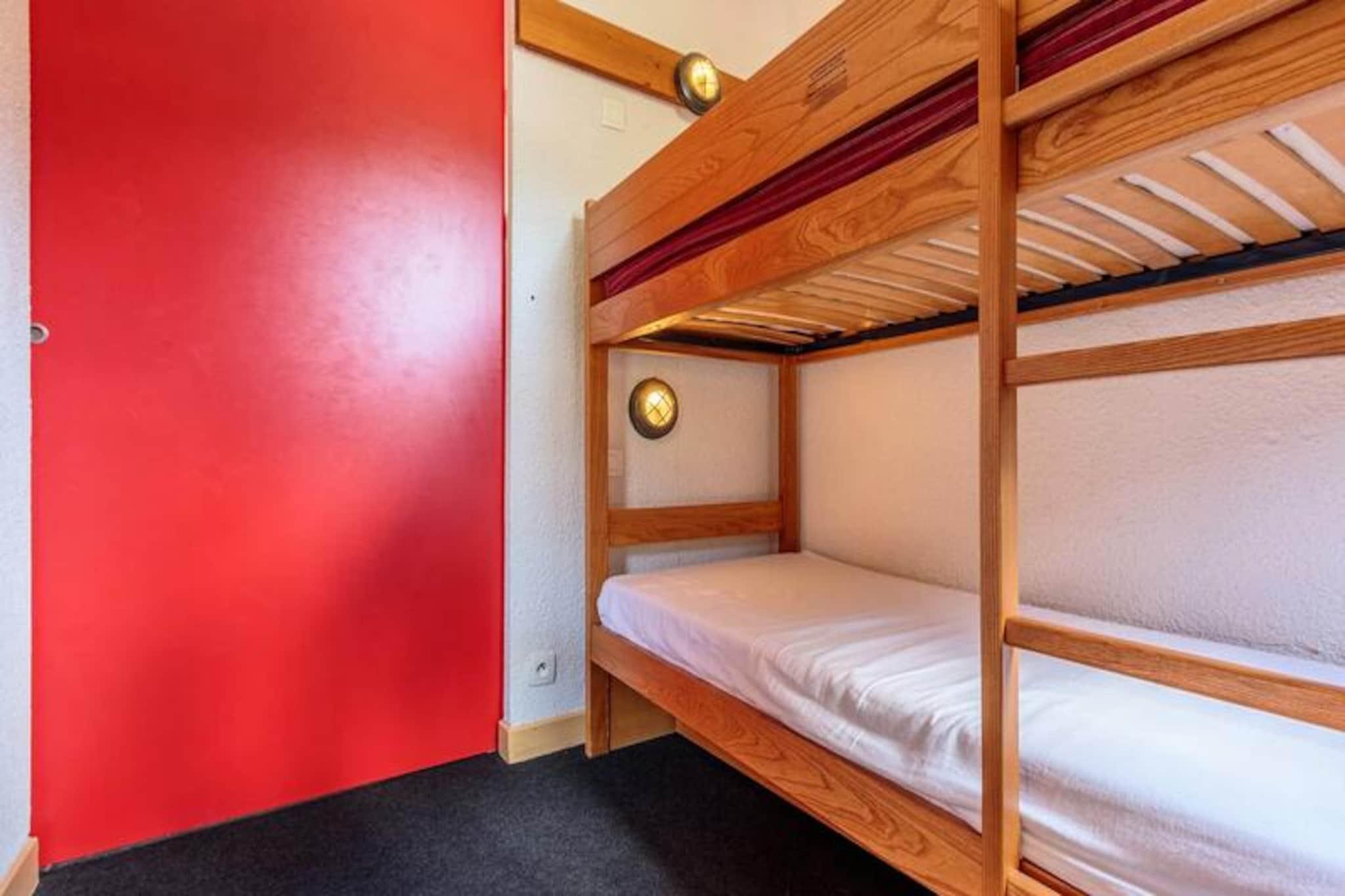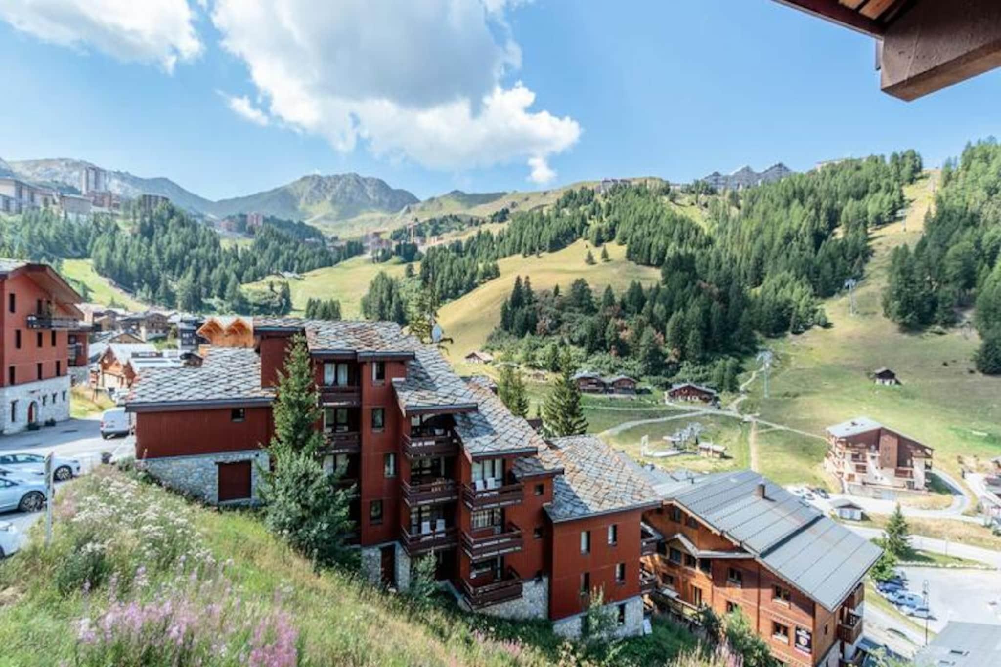 In the heart of the serene Plagne 1800, this charming apartment offers a perfect blend of alpine tradition and modern comfort. Surrounded by a picturesque forest setting, this residence invites you to immerse yourself in the tranquility of the mountains while being steps away from the vibrant ski slopes. Imagine sipping your morning coffee on the southwest-facing balcony, soaking in the unobstructed views of the majestic peaks, and breathing in the crisp mountain air. This is your gateway to an unforgettable alpine escape. The apartment is thoughtfully designed to provide both functionality and warmth. The spacious living room, complete with a cozy convertible sofa bed and television, creates a welcoming space to unwind after a day of adventure. A separate bedroom with two single beds, which can be joined, and a sleeping alcove with bunk beds ensure comfortable accommodations for up to six guests. The open kitchen, equipped with a ceramic hob, microwave, and dishwasher, seamlessly connects to the living area, making it easy to prepare meals and share stories of the day. A bathroom with a relaxing bathtub and a separate toilet add to the convenience and comfort of your stay. Beyond the apartment, the residence offers practical amenities such as a ski locker and a covered parking space, ensuring a hassle-free experience. Guests also have access to the La Plagne Lauzes wellness area, featuring a heated outdoor pool, perfect for unwinding after a day on the slopes. The family-friendly Plagne 1800 neighborhood is ideal for recharging, with nearby shops and free shuttles connecting you to Plagne Centre for effortless exploration of the ski area. Whether you’re here for the world-class skiing, the serene forest trails, or simply to relax and reconnect with nature, this apartment provides the perfect base for your alpine adventure. Let the charm of Plagne 1800 and the breathtaking mountain vistas create memories you’ll cherish forever.