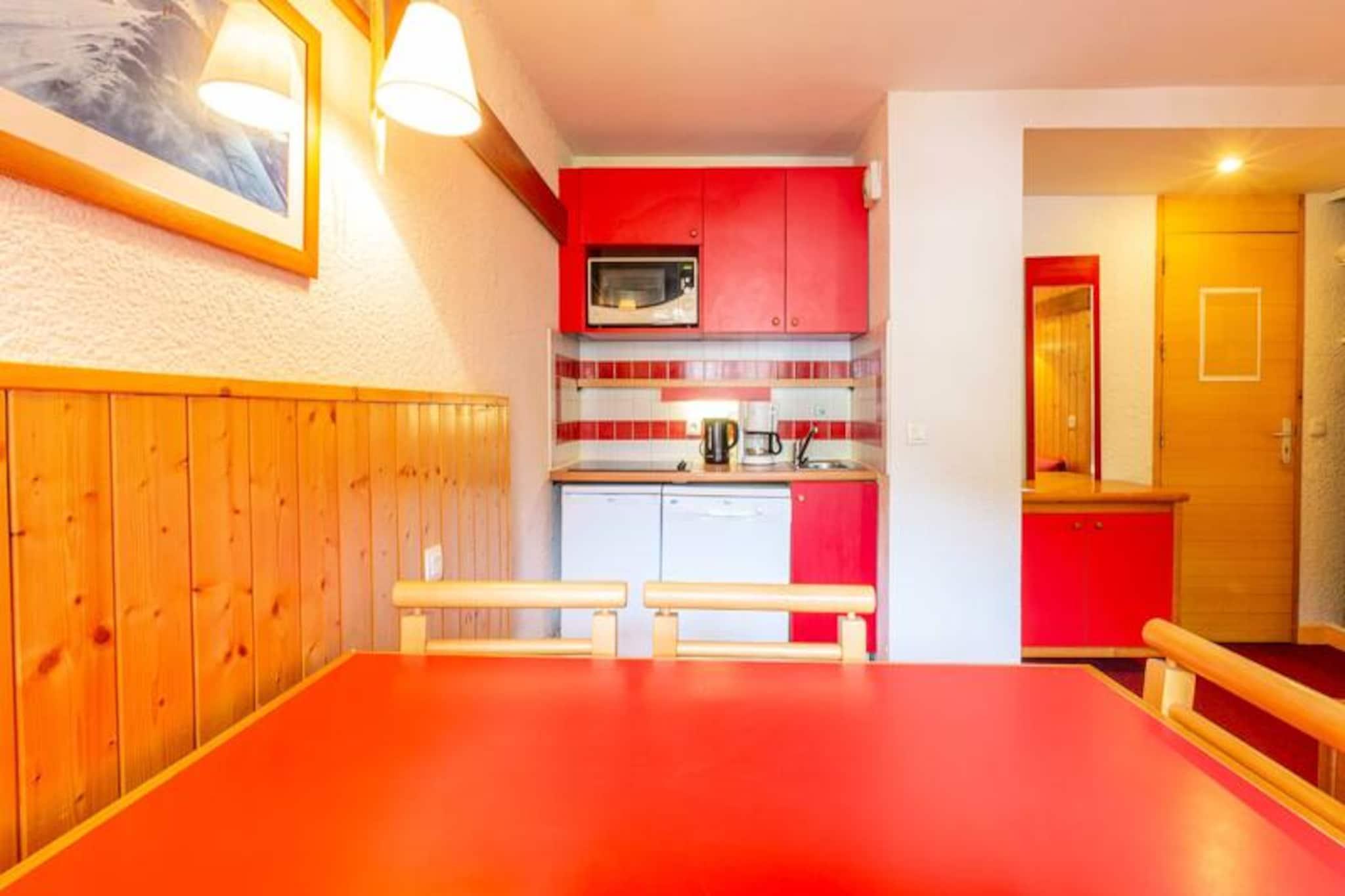 In the heart of the serene alpine village of Plagne 1800, this charming one-bedroom apartment offers a cozy retreat for up to five guests. Surrounded by lush forests and breathtaking mountain views, this property is perfect for families or small groups seeking a tranquil getaway in the French Alps. The west-facing balcony invites you to soak in the golden hues of the sunset after a day of adventure, creating an idyllic setting for relaxation and connection with nature. The apartment, located on the third floor of a chalet-style residence, boasts a thoughtful layout designed for comfort. The living room features a sofa bed and a daybed, while the separate bedroom is furnished with two single beds, ensuring restful nights for all. A fully equipped kitchen with a ceramic hob, microwave, and dishwasher makes meal preparation a breeze, and the modern bathroom with a separate toilet adds convenience. Additional amenities include a ski locker and a dedicated parking space in the covered lot, making your stay as seamless as possible. Guests also enjoy access to the Plagne Lauzes wellness area, complete with a heated outdoor pool (subject to seasonal availability). The family-friendly resort of Plagne 1800 offers a range of nearby shops and free shuttle services to Plagne Centre, ensuring everything you need is within easy reach. Whether you're here to ski, hike, or simply unwind, this apartment places you at the heart of alpine charm and adventure. With its prime location, cozy interiors, and access to both nature and amenities, this property promises an unforgettable escape in the French Alps. Let the crisp mountain air and serene surroundings rejuvenate your spirit as you create cherished memories with loved ones.
