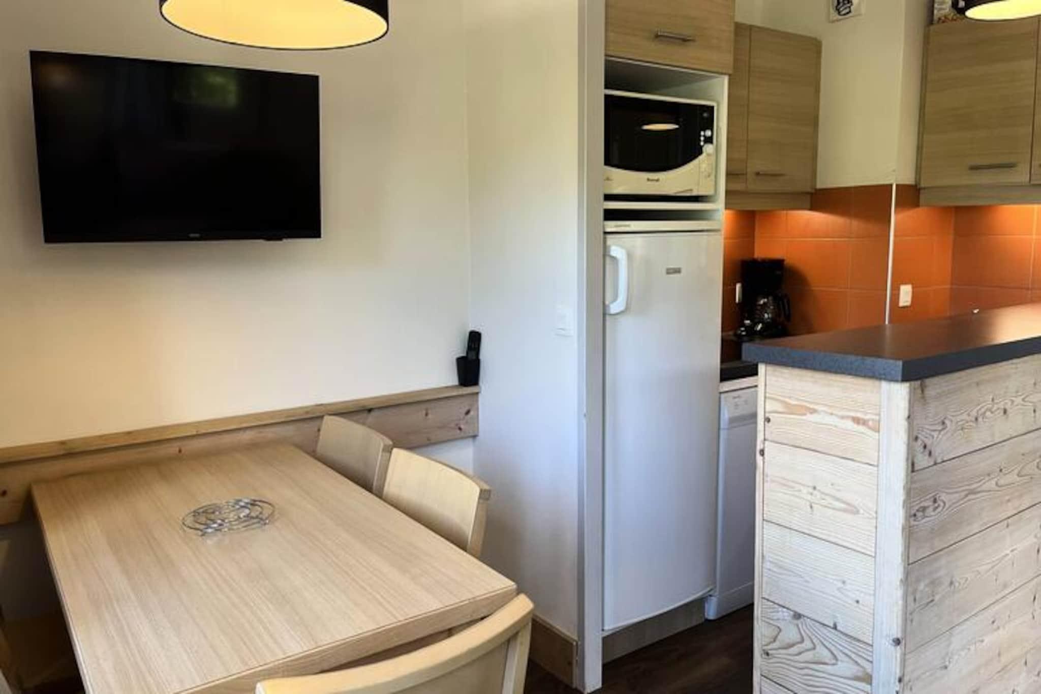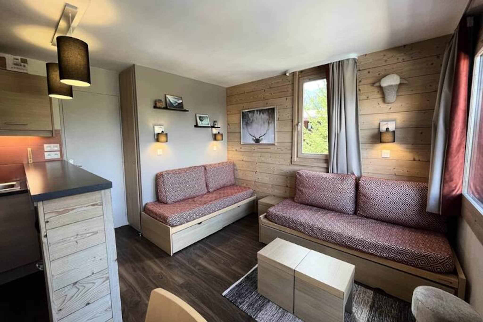 Basking in the golden glow of the French Alps, this charming 30m² apartment in Plagne 1800 offers a serene mountain retreat with breathtaking west-facing views. Imagine sipping your morning coffee on the sun-drenched balcony as the peaks glisten in the distance, or unwinding after a day of adventure with the tranquil forest as your backdrop. Perfectly situated in the heart of the resort, this cozy haven invites you to recharge amidst nature's splendor. Step inside to discover a bright and inviting living space, thoughtfully designed for comfort and functionality. The living room features a seating area with two trundle beds and a sofa bed, making it ideal for families or small groups. The fully equipped open kitchen, complete with a microwave, ceramic hob, coffee maker, and even a fondue and raclette set, ensures you can enjoy delightful meals together. A separate bedroom with a double bed offers a peaceful retreat, while the bathroom with a bathtub and separate toilet adds convenience. Modern amenities like Wi-Fi and a ski locker enhance your stay, and a reserved parking space in the covered lot ensures hassle-free access. Plagne 1800 is a family-friendly resort nestled in a picturesque forest, offering a perfect blend of relaxation and activity. With shops nearby and a convenient bus service to Plagne Centre, everything you need is within reach. After a day on the slopes or exploring the trails, take a dip in the heated outdoor pool, a luxurious perk of the SAINBOIS residence. Whether you're here to ski, hike, or simply soak in the alpine charm, this apartment promises an unforgettable escape in the heart of the mountains.