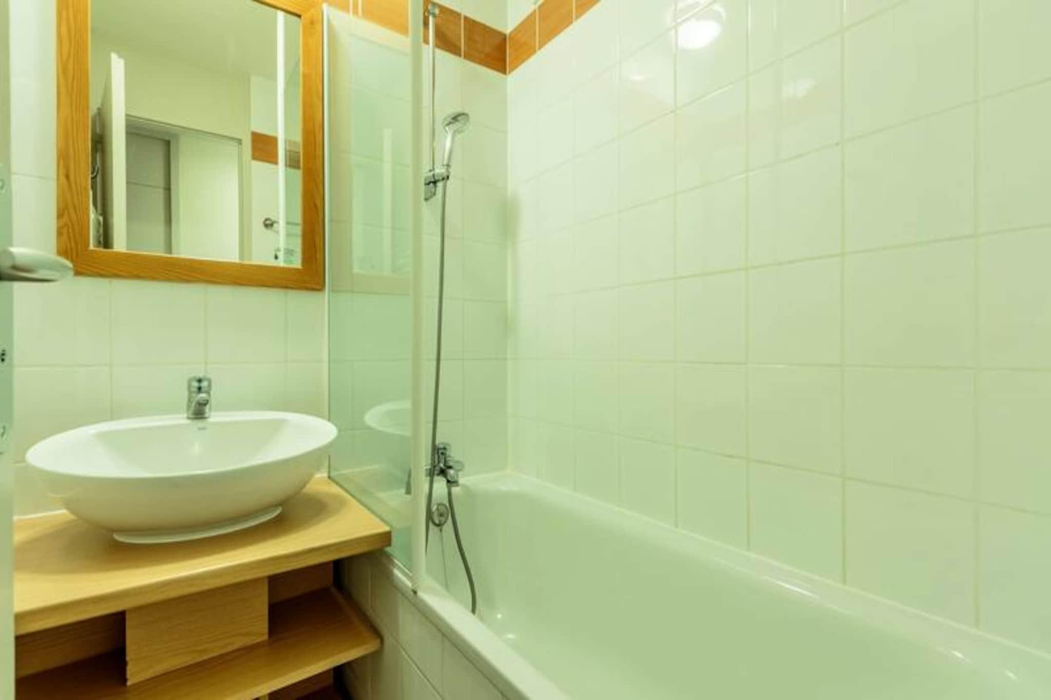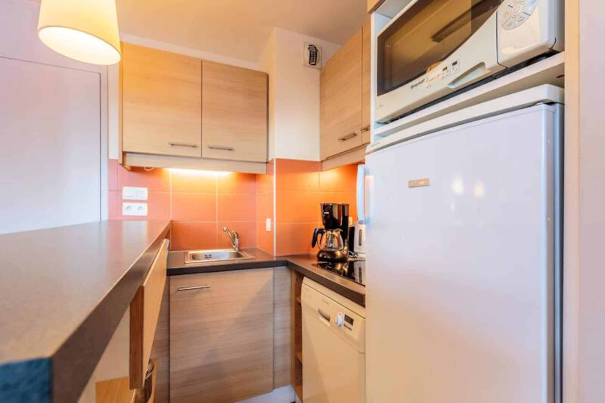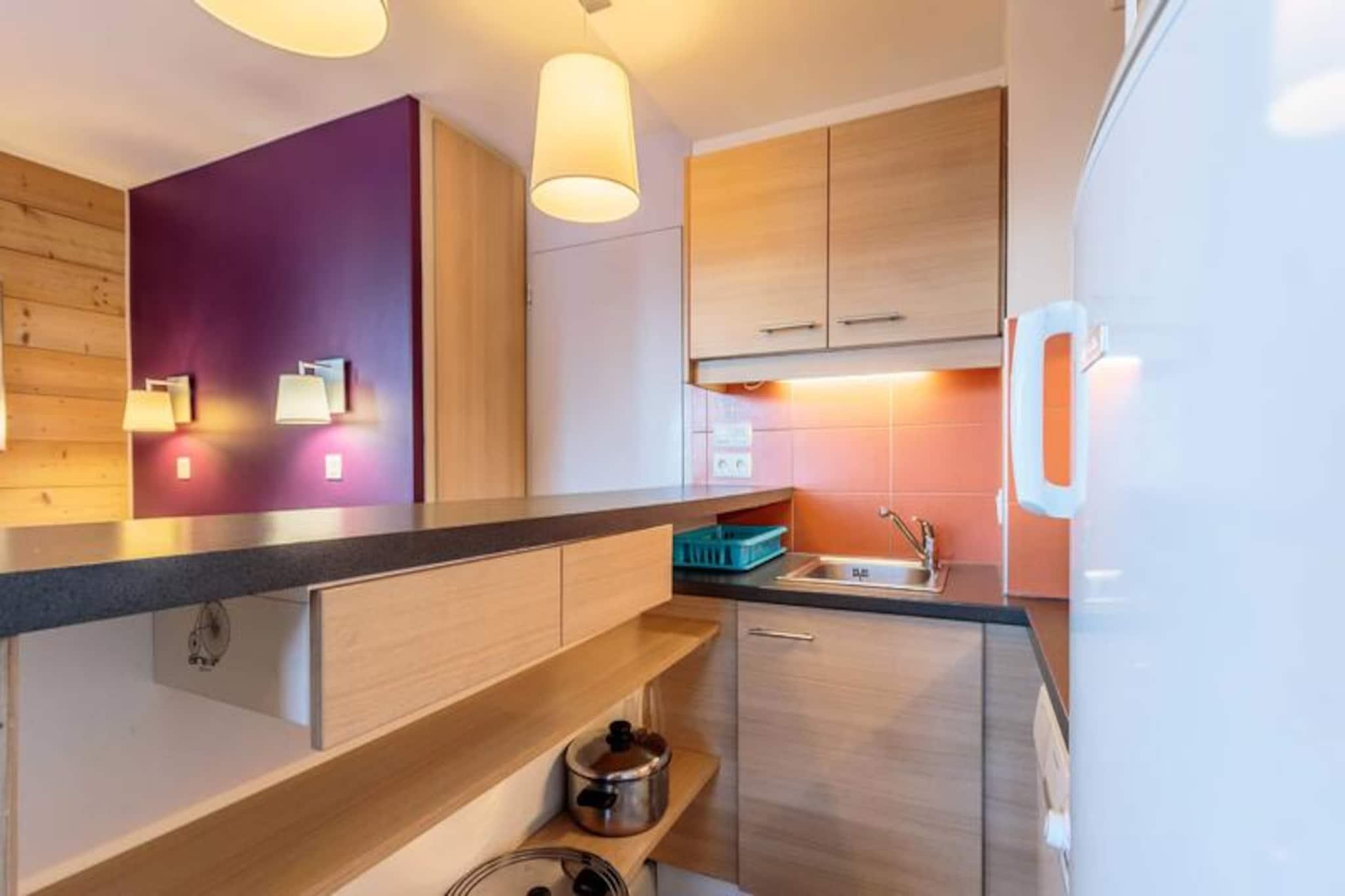 Bask in the golden glow of the French Alps from this charming 30m² apartment, perfectly situated on the first floor of a cozy residence in the heart of the forest. With a west-facing balcony, you’ll be treated to uninterrupted mountain views and abundant sunshine, creating the perfect backdrop for your alpine escape. Whether you're seeking adventure or tranquility, this property offers a warm and inviting retreat for couples or small families. Inside, the apartment is thoughtfully designed to maximize comfort and functionality. The bright living room features a seating area with two trundle beds and a sofa bed, ideal for relaxing after a day on the slopes. A fully equipped open kitchen invites you to prepare delicious meals with ease, complete with a microwave, ceramic hob, coffee maker, and more. The separate bedroom boasts a cozy double bed, while the bathroom includes a bathtub for a soothing soak. A separate toilet adds convenience. Additional amenities include a ski locker and a covered winter parking space, ensuring a hassle-free stay. The surrounding resort is a haven for families, offering a serene atmosphere nestled amidst lush forests. Shops are conveniently located nearby, and a shuttle service connects you to Plagne Centre until late at night, making it easy to explore the area. In winter, enjoy the thrill of skiing with easy access to the slopes, while summer brings opportunities for hiking and immersing yourself in nature. Whether you’re here to carve through fresh powder or unwind under the alpine sun, this apartment provides the perfect base for unforgettable memories in the French Alps. Don’t miss the chance to experience the charm and beauty of this idyllic mountain retreat.