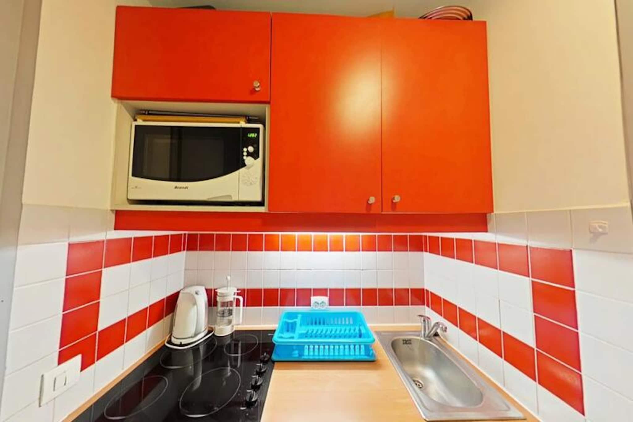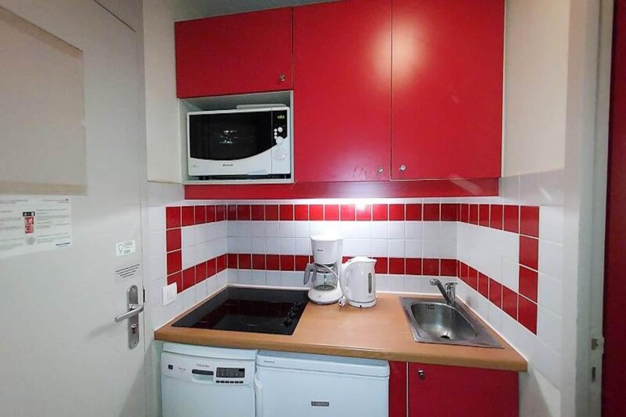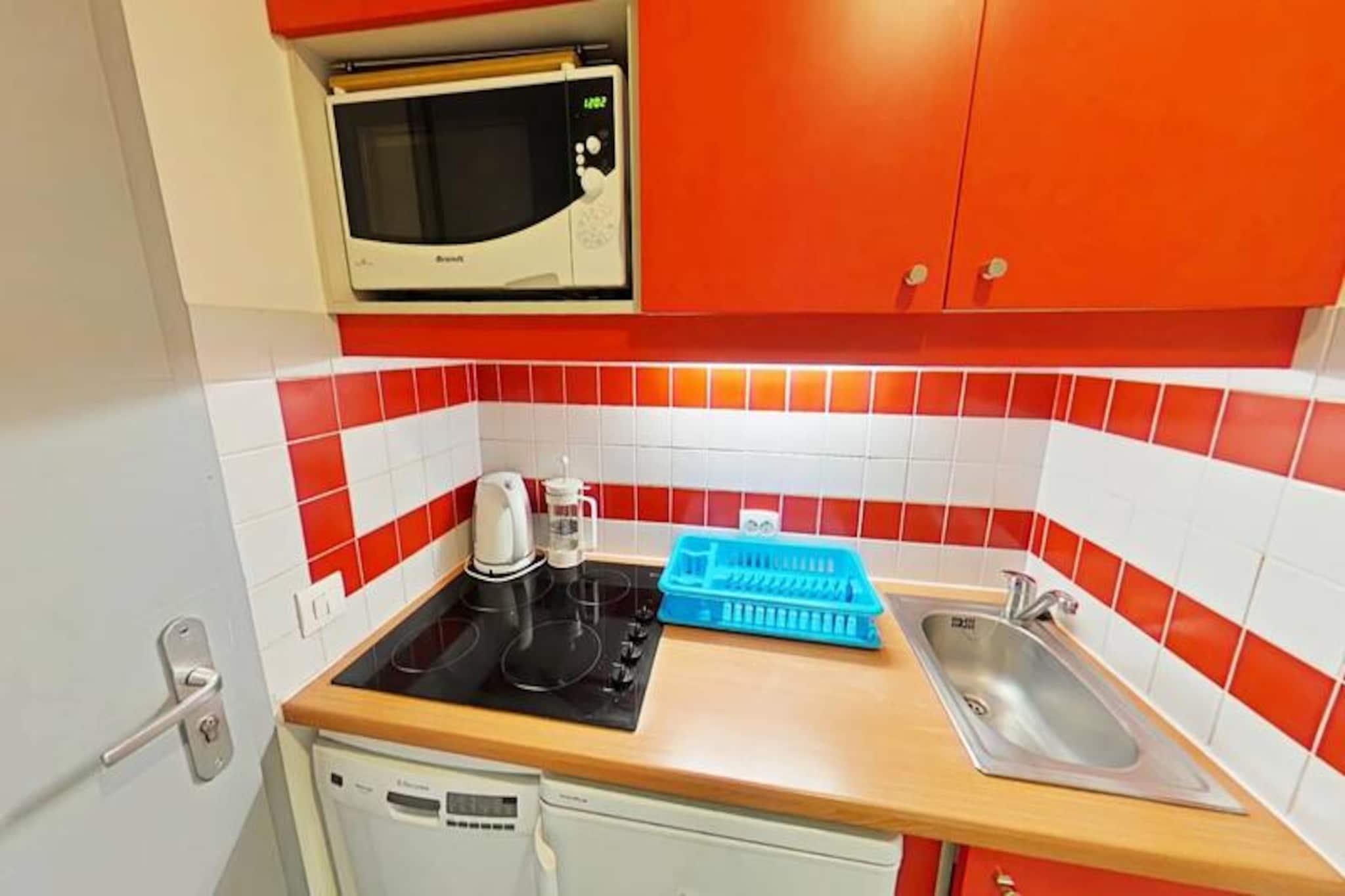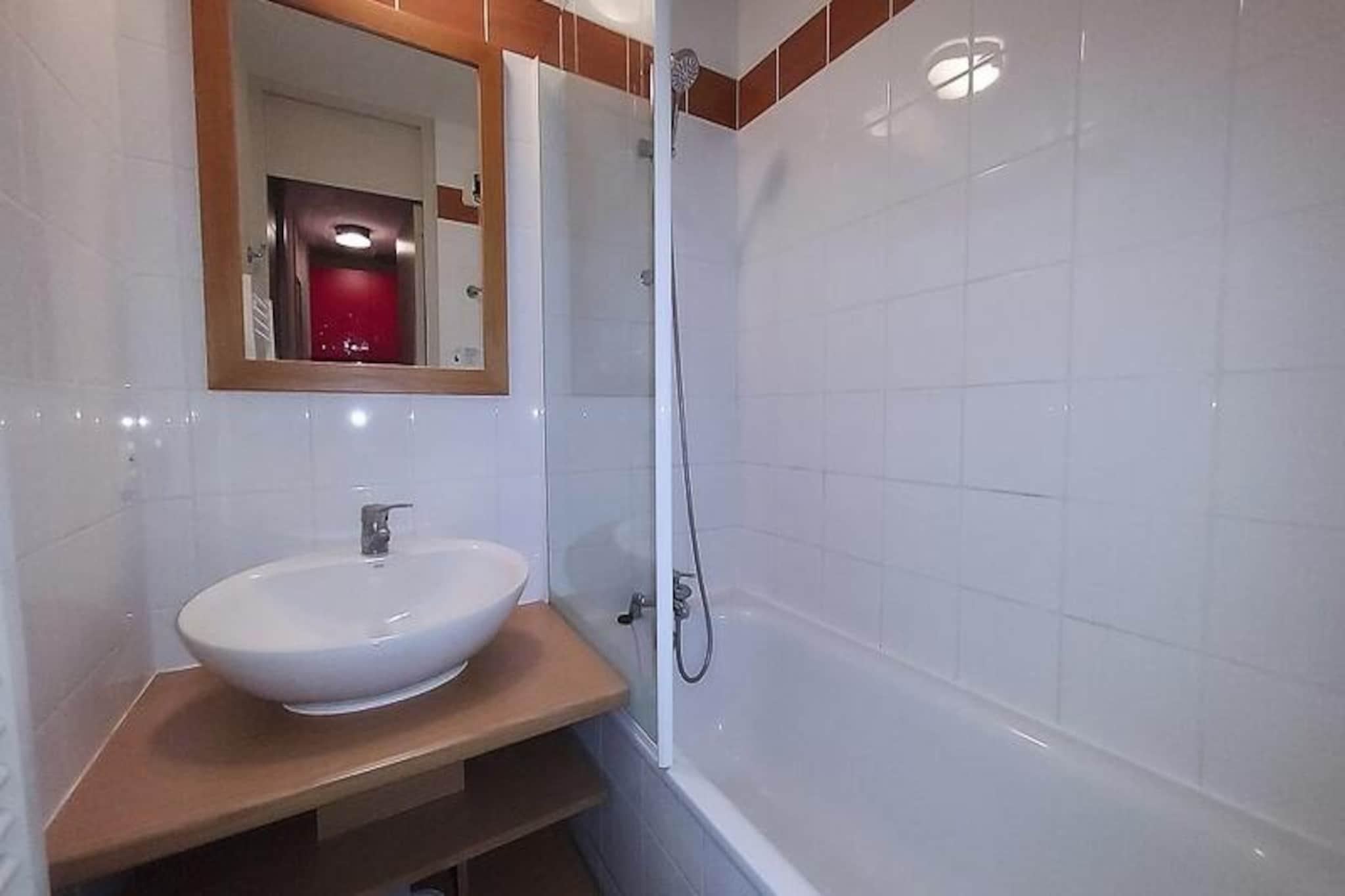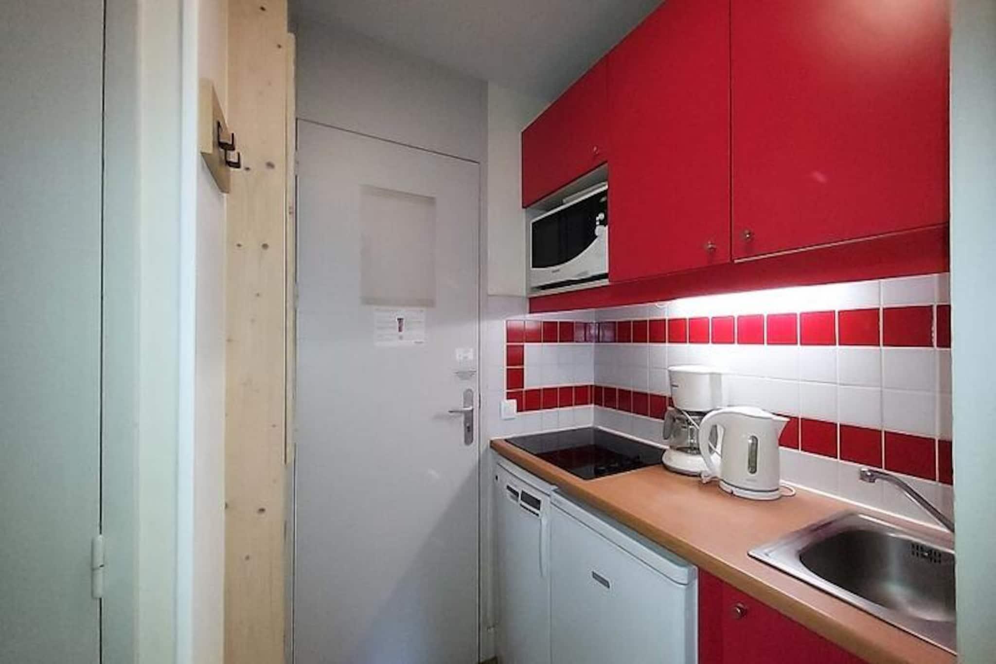 Imagine waking up to the golden rays of the sun streaming through your south-facing balcony, with panoramic views of the majestic French Alps stretching before you. This cozy 23m² apartment, located on the first floor of a charming residence in Plagne 1800, offers a serene alpine retreat perfect for couples or small families seeking both adventure and relaxation. With no elevator to distract from the peaceful ambiance, you'll feel truly immersed in the mountain atmosphere. Step inside to discover a bright and inviting living space cleverly divided by a sliding partition. The seating area features a comfortable sofa bed and television, while the sleeping nook is equipped with a bunk bed, making it ideal for up to four guests. The fully equipped kitchen includes everything you need for home-cooked meals, from a microwave to a coffee maker, while the bathroom offers a relaxing bathtub to unwind after a day on the slopes. Separate restrooms and included Wi-Fi add to the convenience. A ski locker at the entrance and a nearby covered parking space ensure hassle-free logistics for your stay. Plagne 1800 is a family-friendly resort nestled in the heart of a tranquil forest, offering a perfect blend of natural beauty and modern amenities. Shops and restaurants are just a short stroll away, and a convenient bus service connects you to Plagne Centre until late at night. Guests also enjoy access to the Plagne Lauzes wellness area, featuring a heated outdoor pool, sauna, and squash court—perfect for unwinding after a day of skiing or hiking. Whether you're here to carve through pristine slopes, explore scenic trails, or simply bask in the alpine serenity, this apartment is your gateway to unforgettable memories in the French Alps. Book your stay now and experience the magic of Plagne 1800.