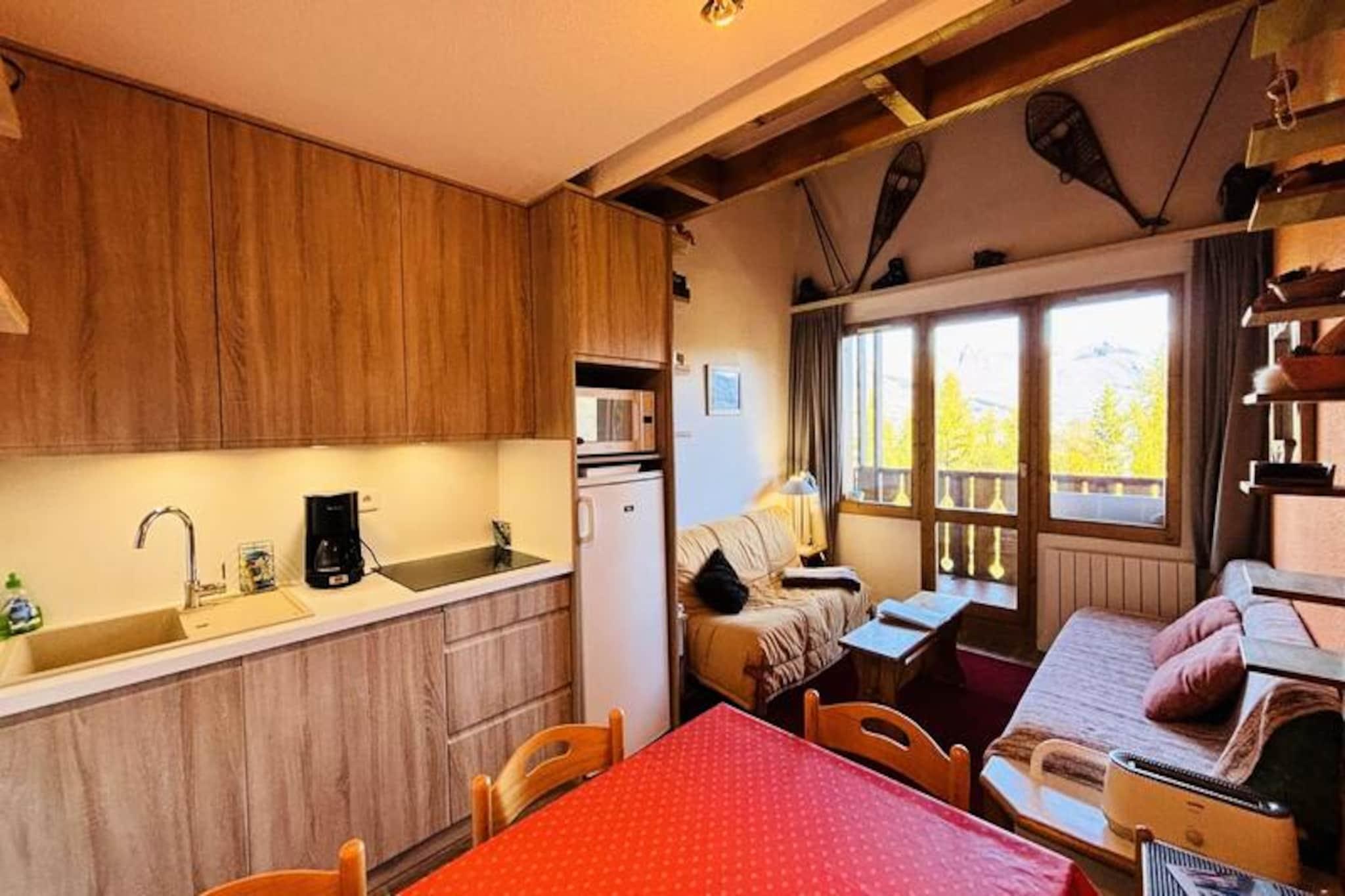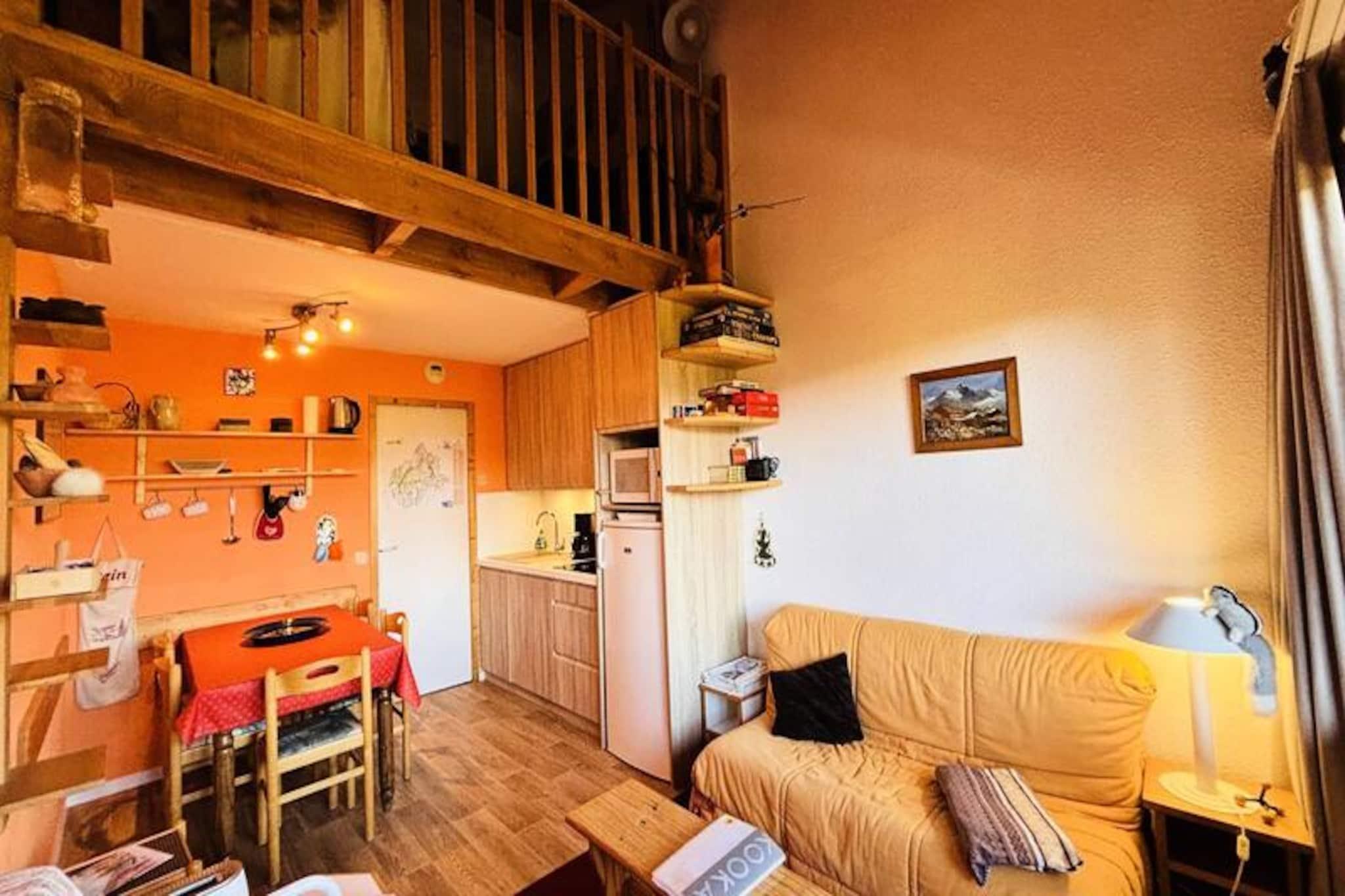 In the heart of the French Alps, where the forest meets the slopes, this charming duplex apartment offers a cozy retreat with breathtaking views of Mont Blanc. Located in the peaceful Le Bilboquet residence, just 200 meters from the ski slopes and a short walk to the resort center, this property provides the perfect balance of tranquility and convenience for your alpine getaway. Imagine waking up to the crisp mountain air and stepping out onto your private balcony to admire the majestic peaks. Spanning 42 m², this thoughtfully designed apartment comfortably accommodates up to seven guests. The upper floor features a serene bedroom with a double bed, a mezzanine with a sofa bed, and a bathroom with a toilet. On the ground floor, you’ll find a cozy sleeping alcove with bunk beds, a living room with a single bed and TV, and a well-equipped kitchen area complete with a combi oven, dishwasher, ceramic hob, refrigerator, electric kettle, coffee maker, and toaster. A second bathroom with a toilet adds to the convenience. The apartment is non-smoking, pet-free, and equipped with blankets for your comfort. Le Bilboquet’s traditional alpine architecture, blending wood, stone, and slate, creates a warm and inviting atmosphere. Situated on the edge of a tranquil forest, the residence offers easy access to outdoor public parking and ski lockers. The vibrant resort center, just 450 meters away, boasts shops, restaurants, and services to enhance your stay. Whether you’re skiing down the slopes in winter or exploring hiking trails in summer, this location is ideal for adventurers and nature lovers alike. With its stunning views, convenient amenities, and proximity to the slopes, this apartment is your gateway to unforgettable alpine memories. Book your stay today and experience the magic of the French Alps.
