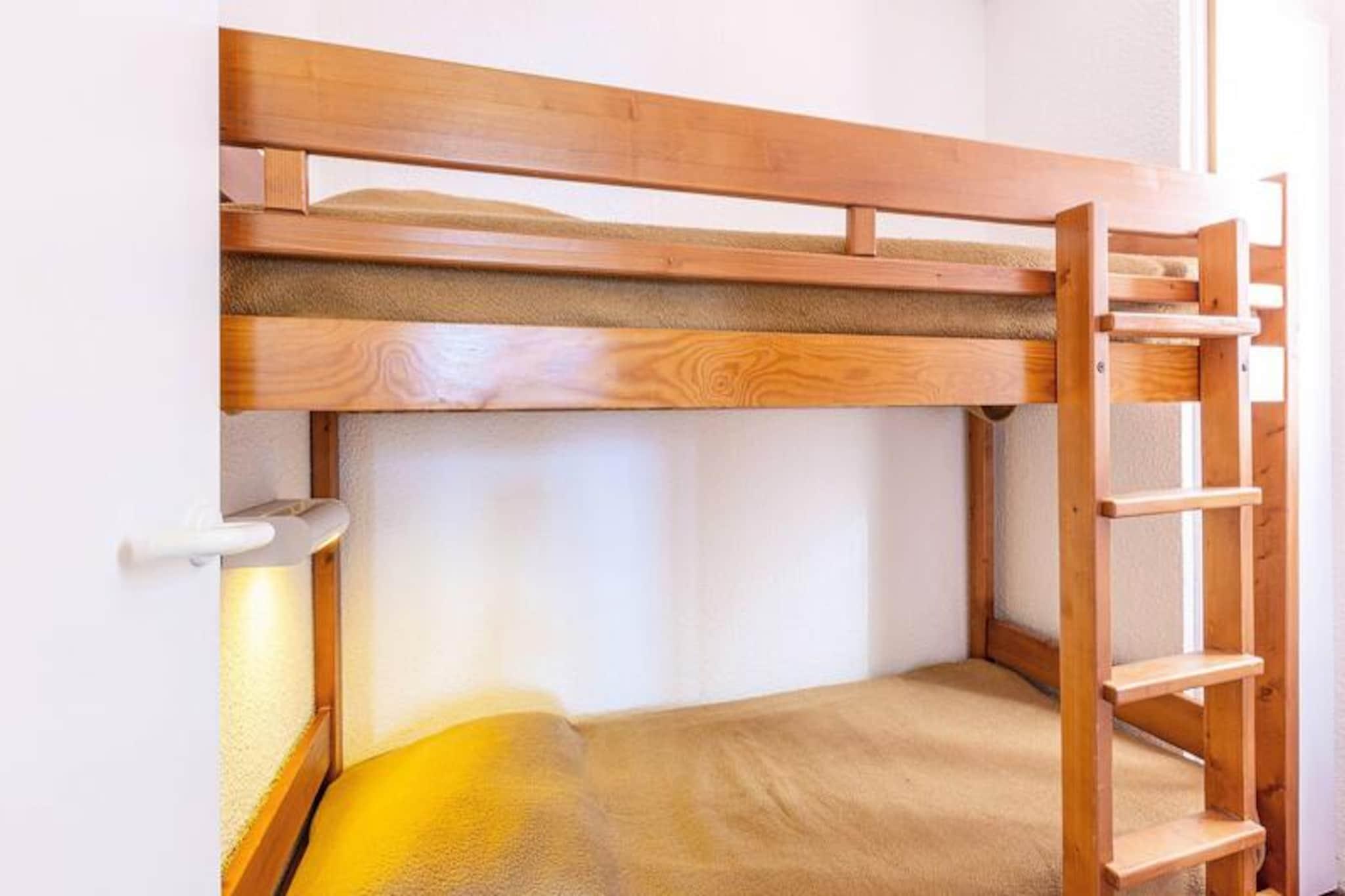 High above the valley, where the serene beauty of Mont Blanc dominates the horizon, this charming 38 m² apartment offers a cozy retreat for up to six guests. Located on the third floor of the Le Domino residence, it combines alpine charm with modern convenience, making it the perfect base for your mountain adventures. Imagine sipping your morning coffee on the north-facing balcony as you take in the breathtaking views of Mont Blanc and the surrounding valley. The tranquil setting, framed by the edge of a forest, invites you to unwind and reconnect with nature. Inside, the apartment is thoughtfully designed to maximize comfort and functionality. The bedroom features a plush double bed, while the sleeping alcove with bunk beds and the living room with two single beds provide flexible sleeping arrangements for families or groups of friends. The fully equipped kitchen includes a microwave, dishwasher, ceramic hobs, and even a raclette set for cozy evenings in. After a day on the slopes, relax in the living room with a TV and stereo system or enjoy a hearty meal around the dining table. The apartment is non-smoking, pet-friendly (with a small supplement), and comes with blankets and duvets for added comfort. Le Domino residence boasts an enviable location just 200 meters from the slopes and ski lifts, ensuring easy access to the world-class skiing of the region. The free cable car, located 100 meters behind the residence, connects you effortlessly to shops and the resort center, while the nearby ice rink, just 50 meters away, offers additional winter fun. In summer, the area transforms into a haven for hikers and nature lovers, with trails winding through the forest and beyond. Whether you're here for the thrill of skiing, the serenity of mountain vistas, or the charm of alpine living, this apartment promises an unforgettable stay. Let the majestic Mont Blanc inspire your next adventure.