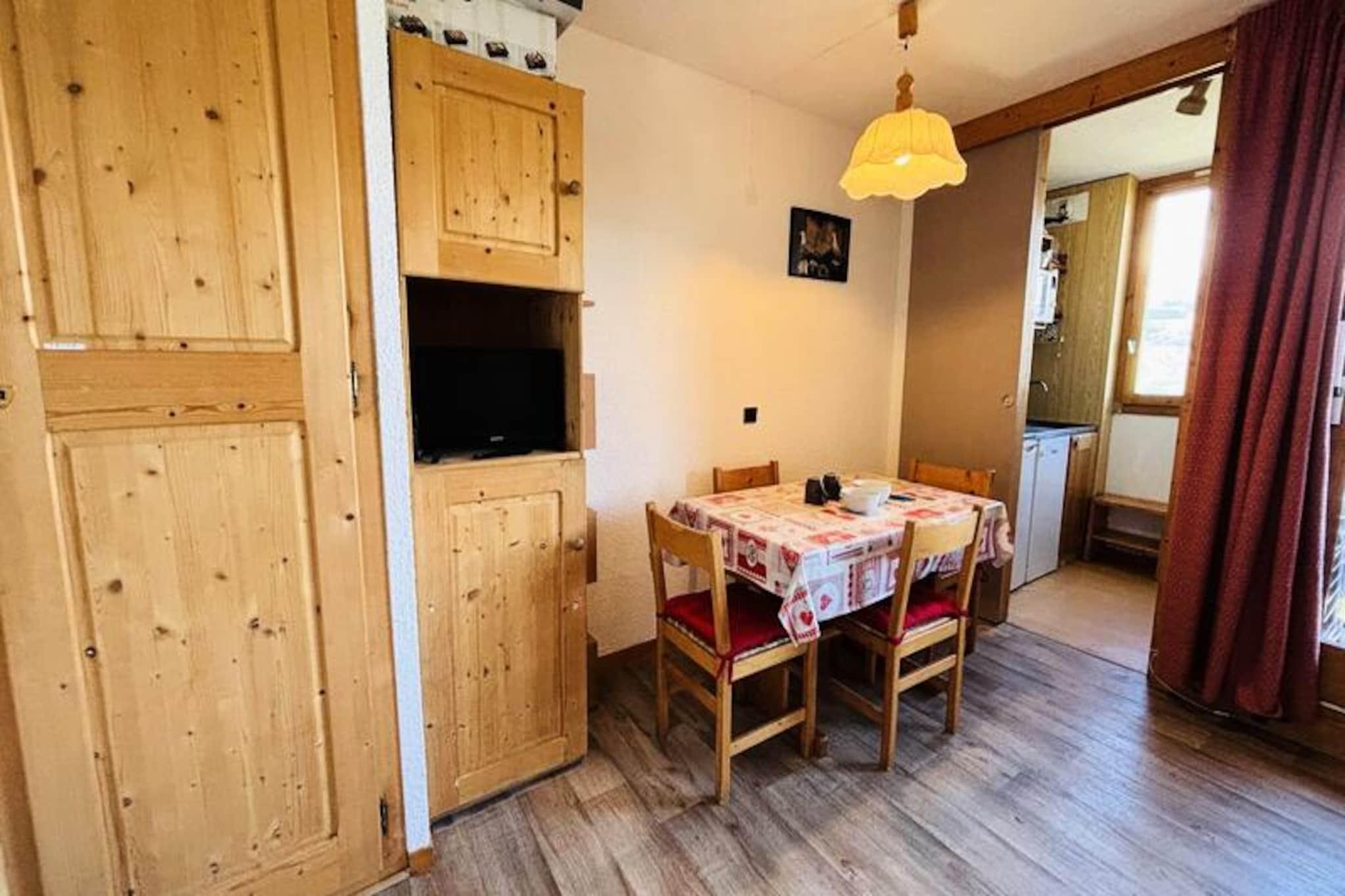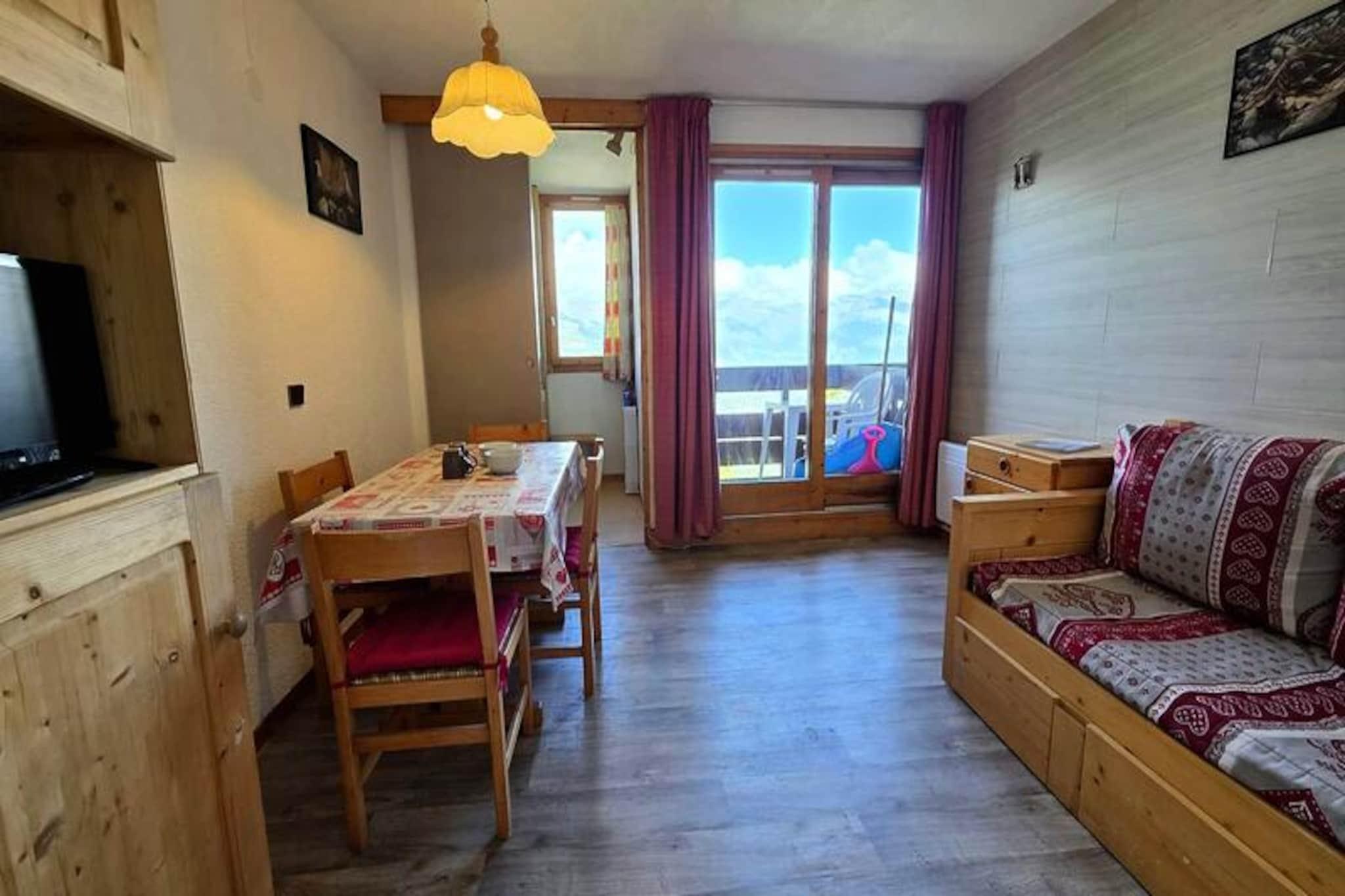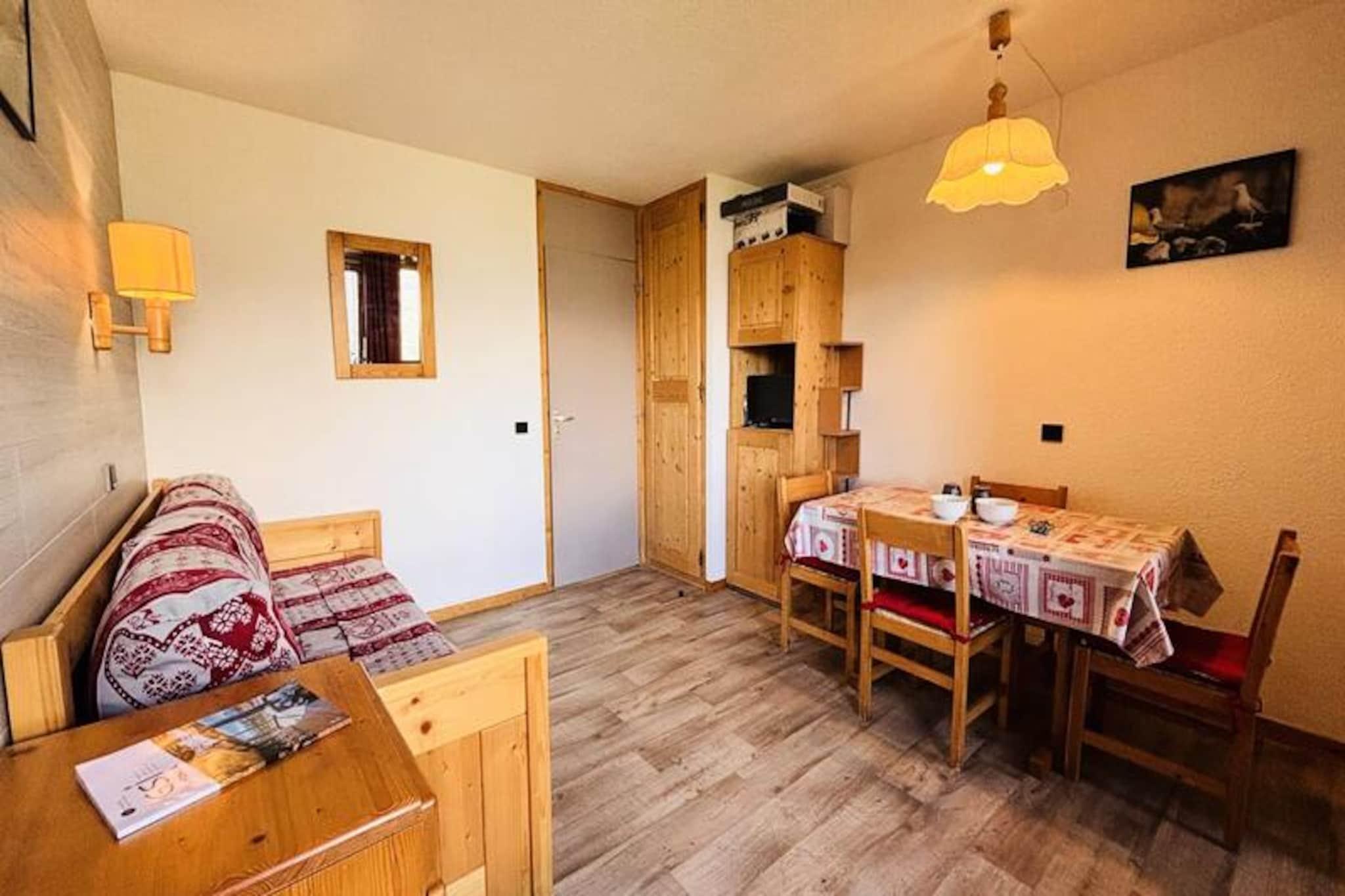 High above the Tarentaise Valley, this charming alpine apartment offers a cozy retreat with breathtaking views of Mont Blanc. Located on the fourth floor of the La Pendule residence, it’s the perfect spot for those seeking a tranquil mountain escape with easy access to the slopes and the vibrant heart of Les Coches. Imagine waking up to the serene beauty of the Alps, sipping your morning coffee on the north-facing balcony, and planning your day of adventures in the Paradiski ski area. The 27 m² apartment comfortably accommodates up to five guests, making it ideal for families or small groups. The living room features a single bed, a trundle bed, and a television, while the separate bedroom includes bunk beds and an additional trundle bed. The kitchenette is fully equipped with modern appliances, including a microwave, oven, ceramic hobs, and even a raclette grill for a true Savoyard dining experience. A bathroom, separate toilet, and ski locker add to the convenience, while the duvets and cozy furnishings ensure a warm and inviting atmosphere. Please note that the apartment is non-smoking, and pets are welcome for a small supplement. La Pendule residence is perfectly positioned just 100 meters from the ski slopes and 250 meters from the resort center’s shops and amenities. The Observatoire area, known for its peaceful ambiance, offers stunning panoramic views of Mont Blanc and the surrounding valley. A short pedestrian path connects you to the lively resort center in less than five minutes, where you’ll find everything from ski rentals to après-ski delights. Whether you’re here to carve through pristine snow in winter or explore scenic hiking trails in summer, this apartment provides the perfect base for your alpine adventures. With its unbeatable location, charming features, and awe-inspiring views, it’s a place where unforgettable memories are made.