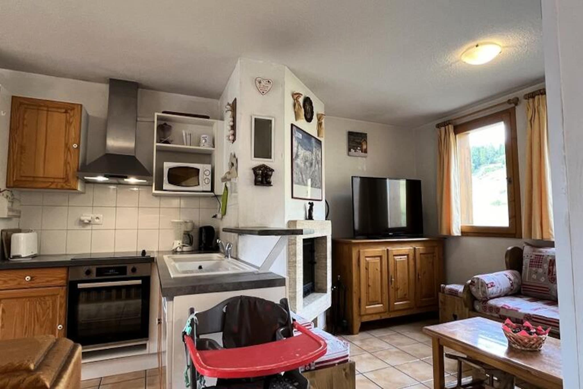 High above the picturesque valley of La Plagne, this charming 85m² chalet offers a warm and inviting retreat for up to 10 guests. With its prime location in Plagne Soleil, known for its exceptional sunshine and direct access to the slopes, this property is a haven for ski enthusiasts and nature lovers alike. Imagine waking up to the breathtaking views of the Dou du Praz mountain range, stepping out onto your balcony, and feeling the crisp alpine air as you plan your day's adventures. Spread across three levels, the chalet is thoughtfully designed to combine comfort and functionality. The ground floor features a cozy double bedroom, a children’s room with a bunk bed, and a convenient ski room to store your gear. The heart of the chalet lies on the first floor, where a spacious living area with a crackling fireplace invites you to unwind after a day on the slopes. The adjoining dining area, complete with a large table, is perfect for sharing hearty meals prepared in the fully equipped kitchen, which includes everything from a raclette grill to a fondue set for authentic alpine evenings. Upstairs, the master bedroom boasts its own private bathroom, while two additional twin bedrooms and a shared shower room ensure ample space for everyone. Plagne Soleil’s central location within the ski area makes it an ideal base for exploring the expansive Paradiski domain. Whether skiing, hiking, or simply enjoying the serene mountain atmosphere, you’ll find endless opportunities for adventure. A free shuttle connects you to Plagne Village, adding convenience to your stay. With its blend of traditional charm and modern amenities, this chalet promises an unforgettable alpine getaway for families and friends. Don’t miss the chance to create lasting memories in this idyllic mountain retreat.