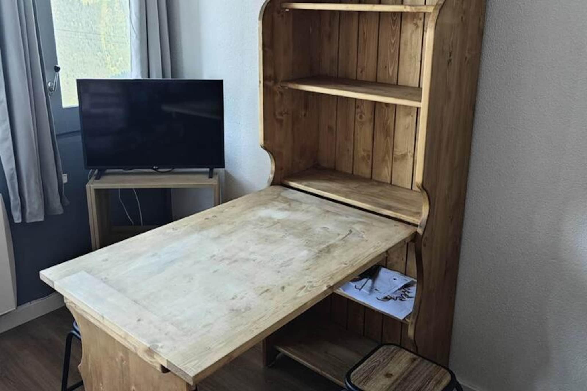 High above the Tarentaise Valley, where the majestic Mont Blanc dominates the horizon, this cozy studio apartment in La Plagne Aime 2000 offers a unique alpine escape. Imagine waking up to the golden hues of sunrise illuminating snow-capped peaks, with the convenience of ski-in/ski-out access right at your doorstep. The iconic 'Le Paquebot des Neiges' residence, with its distinctive architecture, combines the charm of mountain living with modern comforts, making it an ideal retreat for couples or small families seeking adventure and relaxation. Step into this thoughtfully designed 21 m² studio, where every detail has been crafted for comfort and practicality. The living area features a sofa bed and a bunk bed, accommodating up to four guests. Large windows flood the space with natural light and frame breathtaking views of Mont Blanc and the surrounding valley. The compact yet fully equipped kitchen includes everything you need, from a refrigerator and microwave to a dishwasher and coffee maker, ensuring a seamless self-catering experience. After a day on the slopes, unwind in the cozy dining area or enjoy a warm bath in the inviting bathroom. Convenience is key here. The residence boasts an indoor shopping arcade, providing easy access to shops and amenities without stepping outside. For those looking to explore, Plagne Centre is just minutes away via the free Télémétro cable car. Free above-ground parking and a ski locker add to the ease of your stay. Whether you're here to carve through pristine powder, admire the alpine scenery, or simply relax in a serene mountain setting, this studio apartment offers the perfect base for unforgettable memories in the heart of the French Alps.