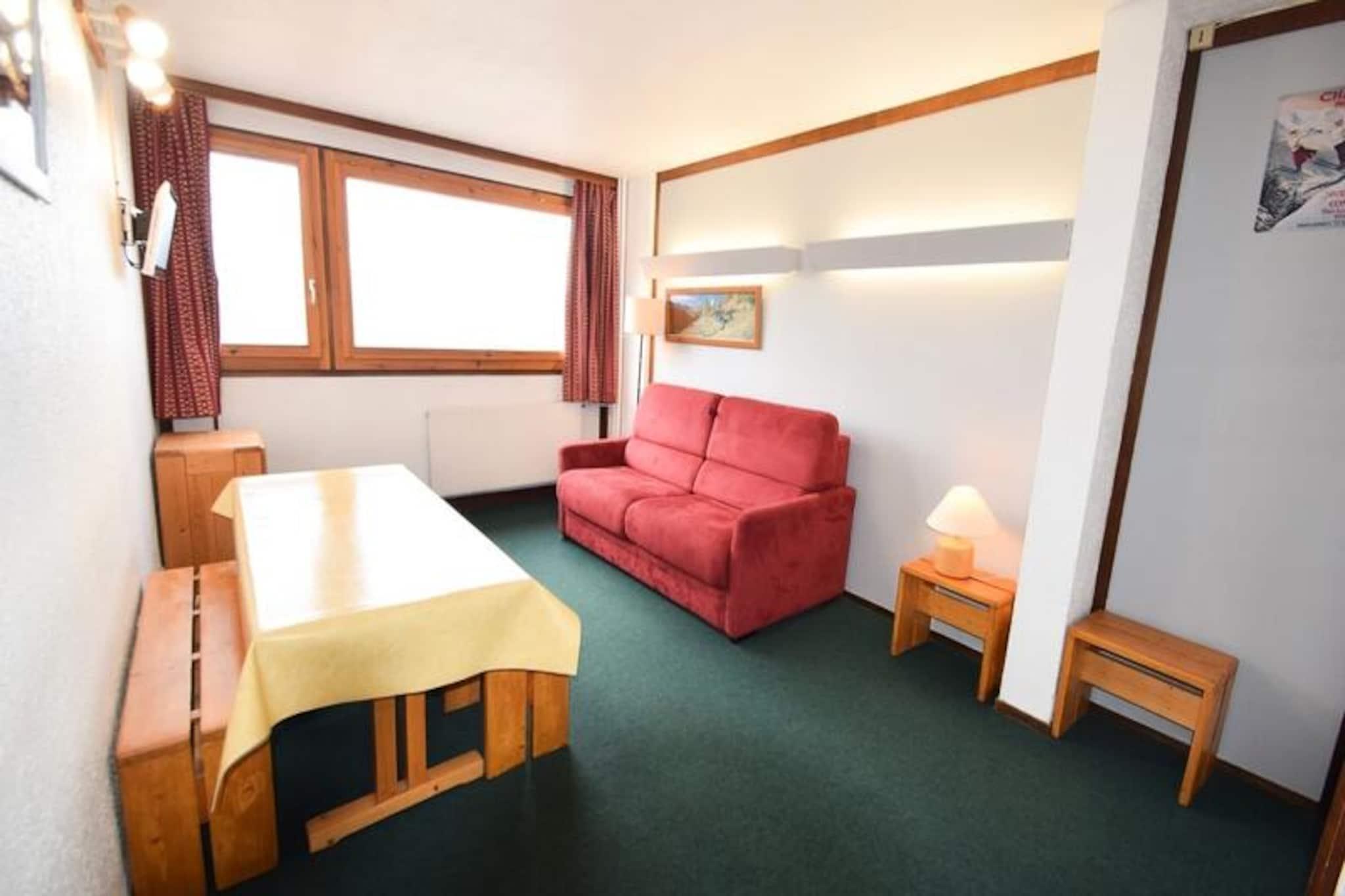 High above the Tarentaise Valley, this charming apartment in La Meije Residence offers an unforgettable alpine escape with breathtaking views of Mont Blanc. Perfectly situated in Plagne Centre, it combines the convenience of ski-in/ski-out access with proximity to the shopping arcade and free outdoor parking, making it an ideal base for your mountain adventures. Whether you're here for the snow-covered slopes or the lush summer trails, this residence invites you to immerse yourself in the beauty of the French Alps. \n\nInside, the apartment is thoughtfully designed to accommodate up to five guests across its 45m² layout. The separate kitchen is equipped with modern amenities, including electric hobs, a combination oven, refrigerator, dishwasher, and coffee maker, ensuring you can prepare meals with ease. The living room features a comfortable double sofa bed and a TV, while the bedroom offers a fold-down double bed and a single bed, providing flexible sleeping arrangements. The bathroom includes a bathtub for relaxing after a day of activities, and the separate WC adds convenience. With cozy bedding and a mix of carpet and vinyl flooring, the apartment guarantees a warm and welcoming atmosphere. \n\nStep outside and you'll find yourself at the foot of the slopes, ready to explore the world-class Paradiski domain. The nearby shopping arcade offers restaurants, ski rentals, and essential services, ensuring everything you need is within reach. In summer, the region transforms into a haven for hikers and cyclists, with trails leading to panoramic vistas and alpine meadows. The majestic Mont Blanc serves as a constant reminder of the natural wonders surrounding you. \n\nWhether you're seeking thrilling ski days, serene mountain walks, or simply a cozy retreat with stunning views, this apartment in La Meije Residence promises a memorable stay in the heart of the Alps.