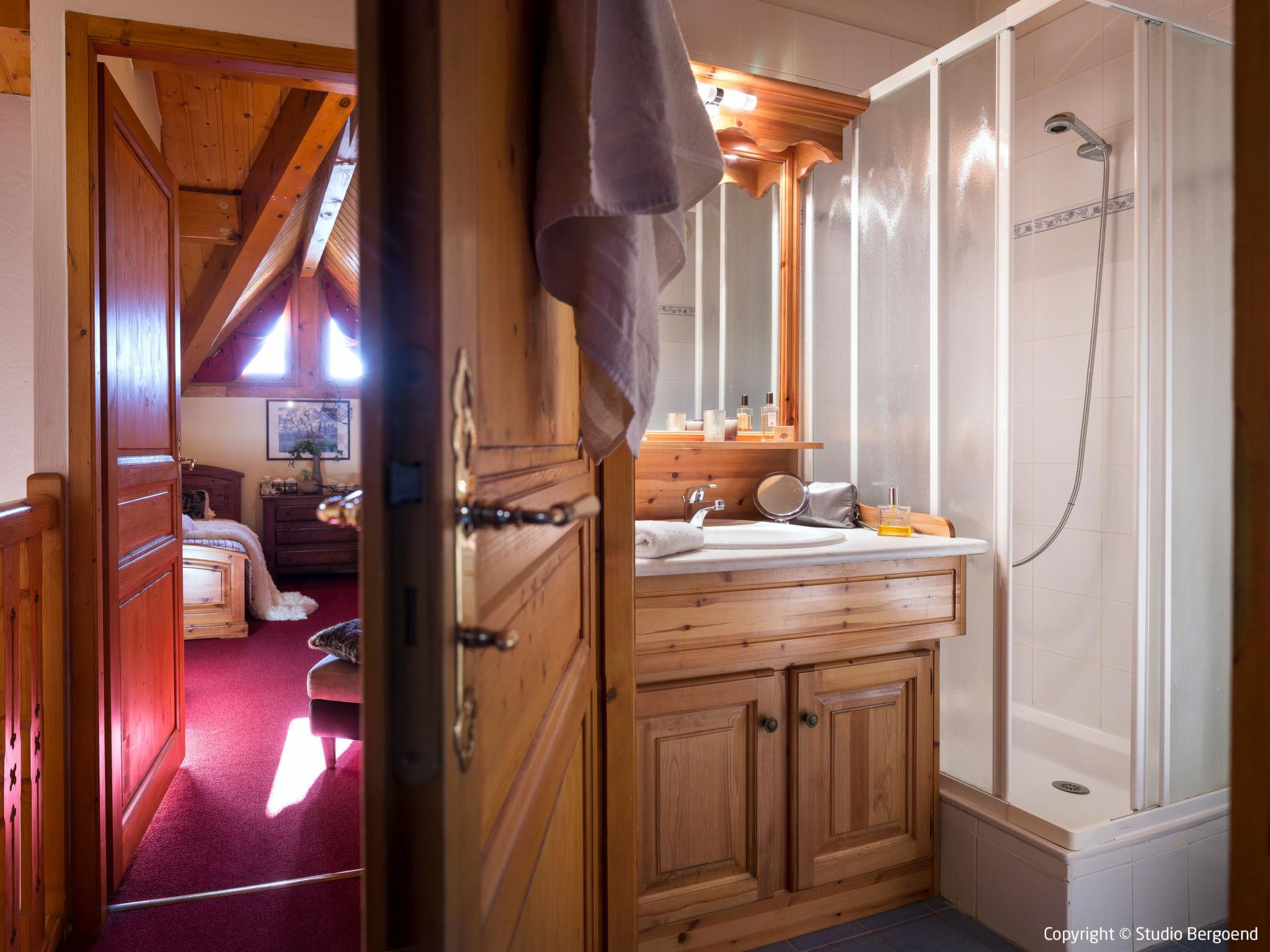 "Le Chalet des Cimes", 5-room apartment 95 m2 on 3 levels. Spacious, tasteful and cosy furnishings: 1 room with 1 french bed (160 cm). 1 room with 2 beds. Sep. WC, 2 baths or showers. Upper floor: living room with open-hearth fireplace, dining table and TV. Exit to the balcony. Kitchen (4 hot plates, oven, dishwasher, toaster, kettle, microwave, electric coffee machine). Top floor: 2 rooms with sloping ceilings, each room with 2 beds. Bath/WC or shower/WC. Heating. Balcony. Beautiful view of the mountains. Facilities: safe. Internet (WiFi, free). Please note: non-smokers only. Maximum 1 pet/ dog allowed. The property is one of a type of property or apartment.