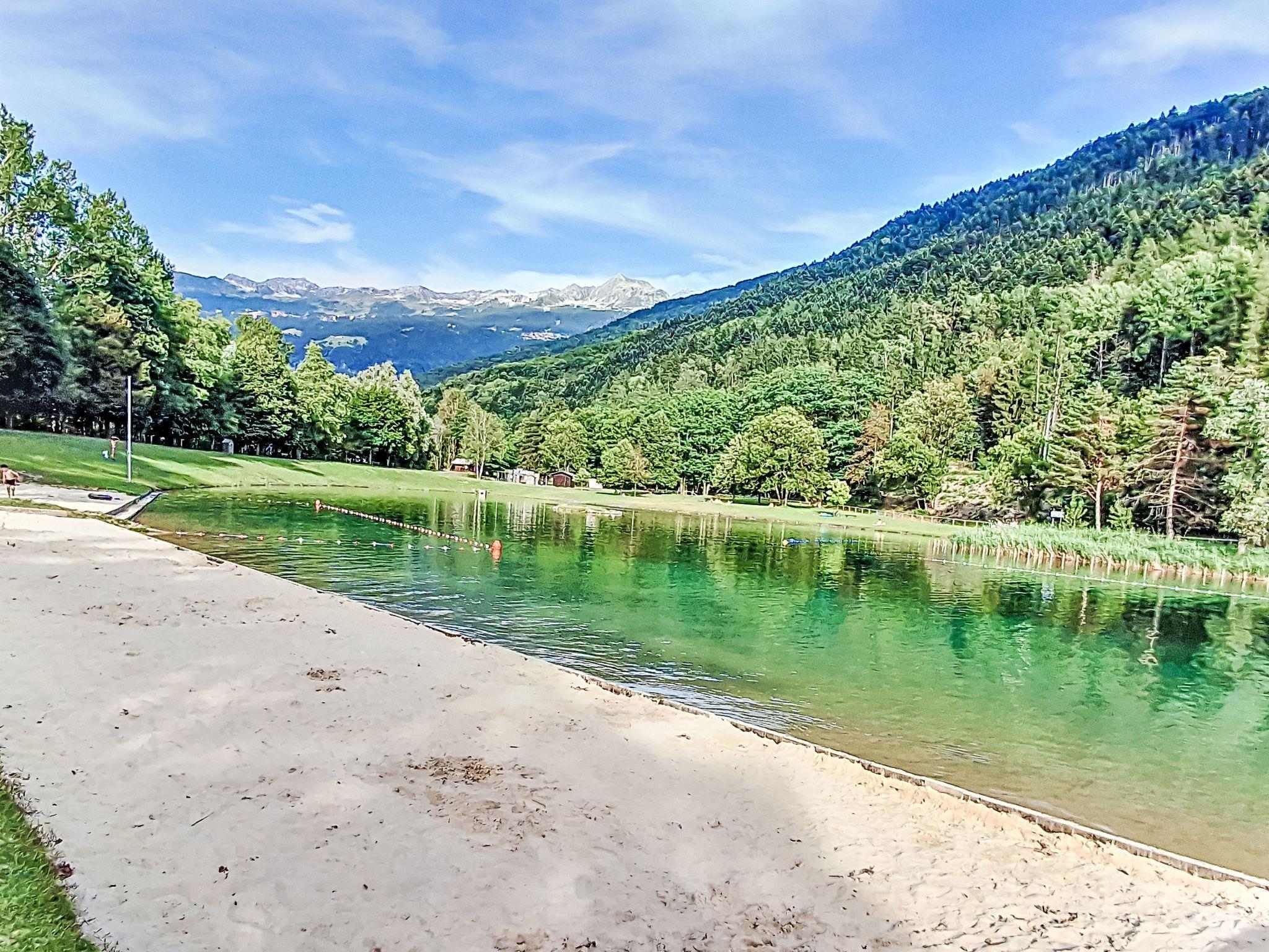 Bellentre: Chalet "les Pommiers", 3 storeys. In the district of Le Gothard, Bellentre, in a quiet position, 250 m from the lake, 8 km from the skiing area, 250 m from the river, south-west facing position. Parking (for 2 cars) at the house. Supermarket 4 km, restaurant 1 km, bakery 1 km, bus stop "NAVETTE ONLY IN A SUMMER TIME" 350 m, railway station "AIME" 4 km. Nearby attractions: Funiculaire Bourg Saint Maurice/Les Arcs 9.1 km. Well-known ski regions can easily be reached: Paradiski (LES ARCS - LA PLAGNE) 8 km, Tignes & Val d'Isère 40 km, La Rosière 28 km. Well-known lakes can easily be reached: Plan d'eau de Macot 250 m.