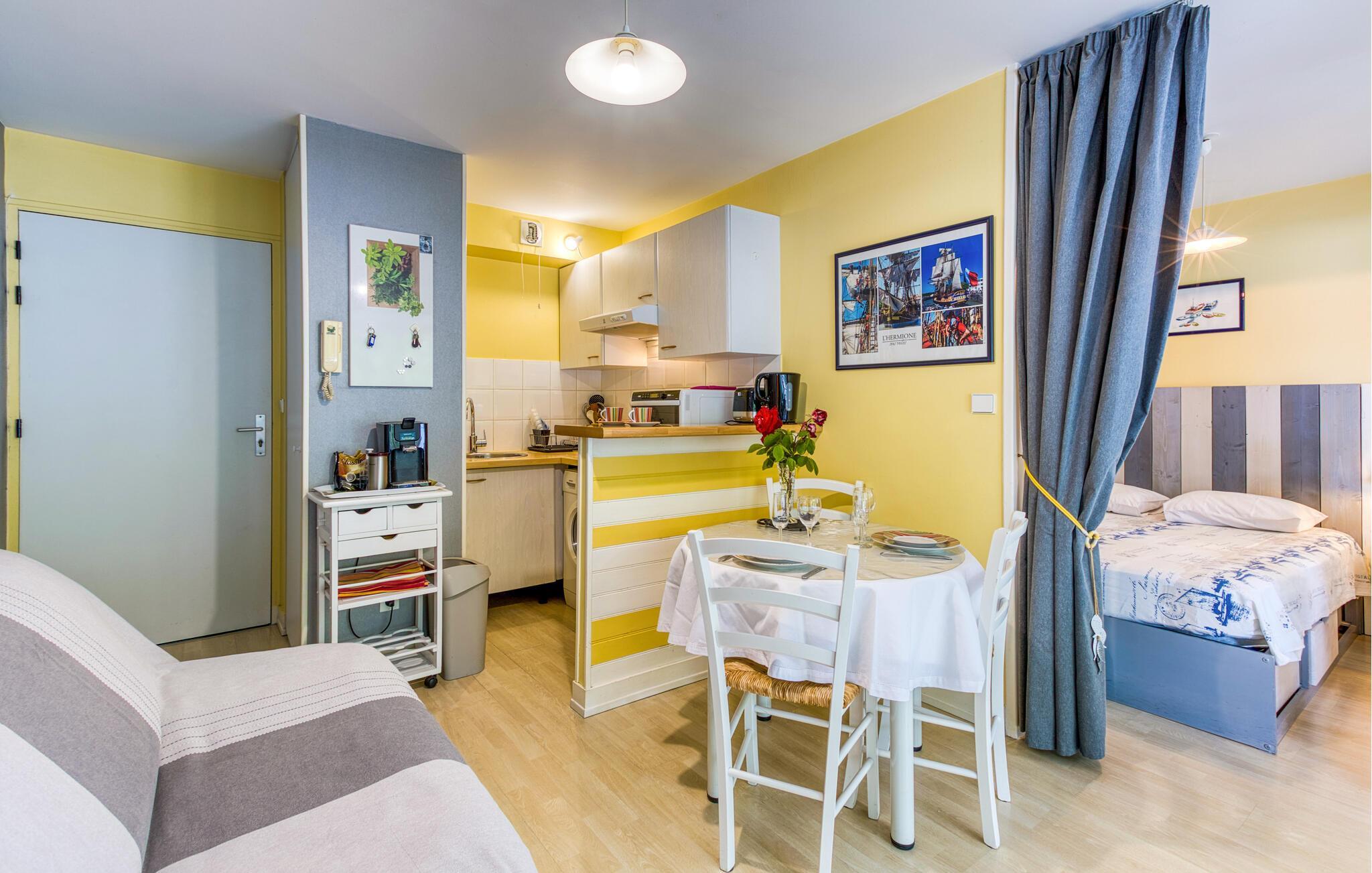 Erleben Sie entspannte Tage in diesem gemütlichen Studioapartment mit geräumigem Balkon. Die fröhliche, praktische Einrichtung sorgt für Wohlfühlatmosphäre, während Sie auf dem Balkon das Stadtfeeling genießen können. Die Nähe zum Alten Hafen und der historischen Altstadt macht diese Unterkunft zum perfekten Ausgangspunkt für Ihre Entdeckungstouren durch La Rochelle. Starten Sie den Tag mit einem Kaffee in der Morgensonne, bevor Sie zu Fuß oder mit dem Fahrrad die Küste erkunden.