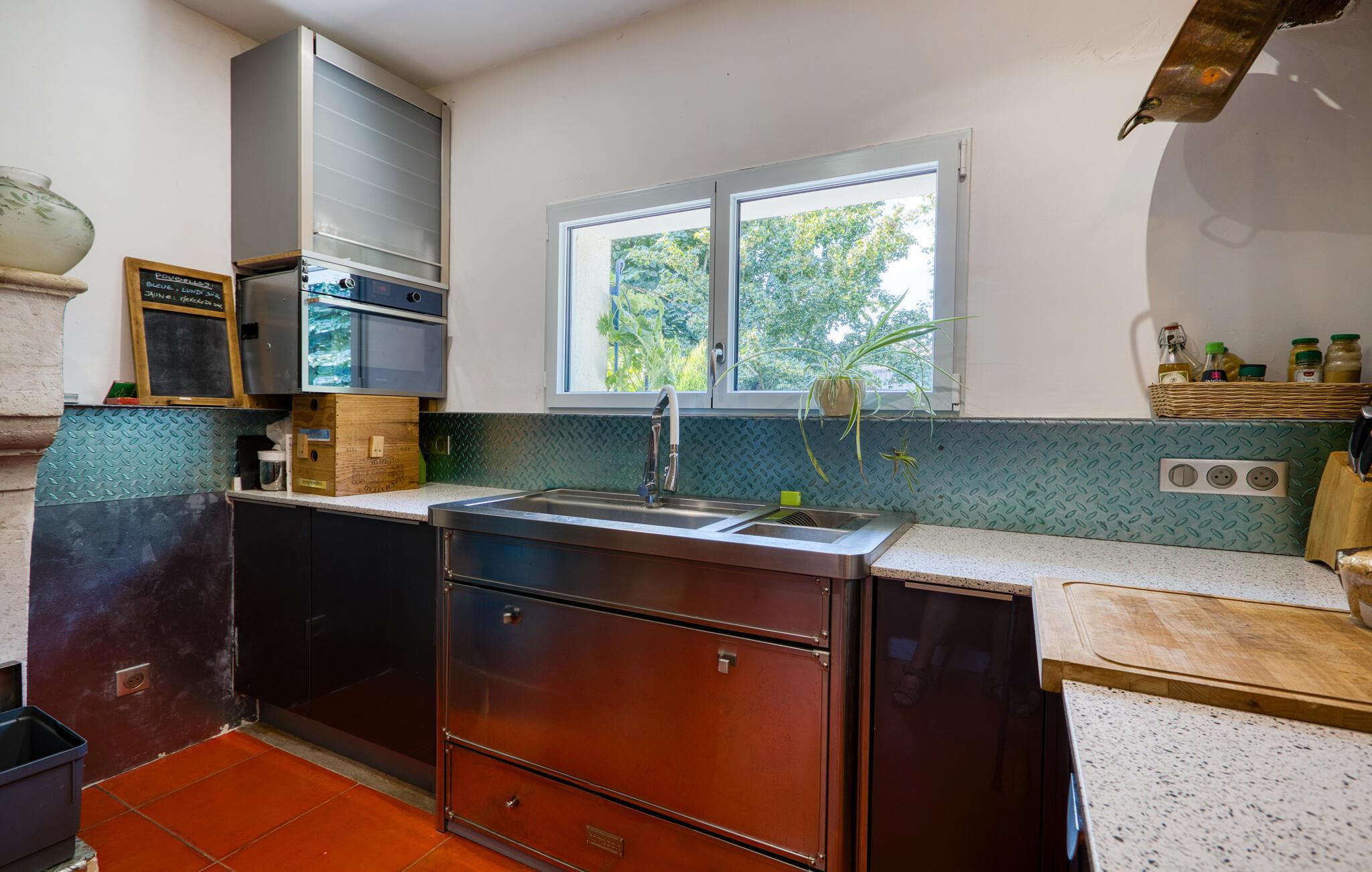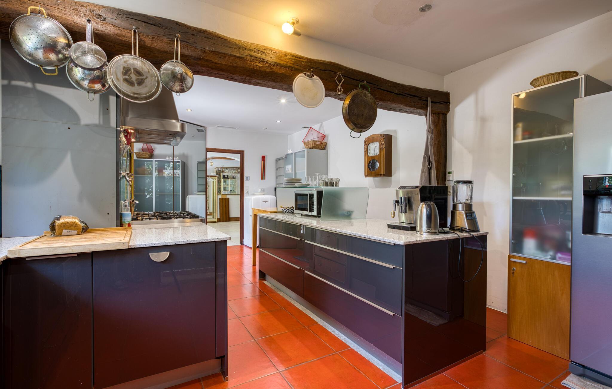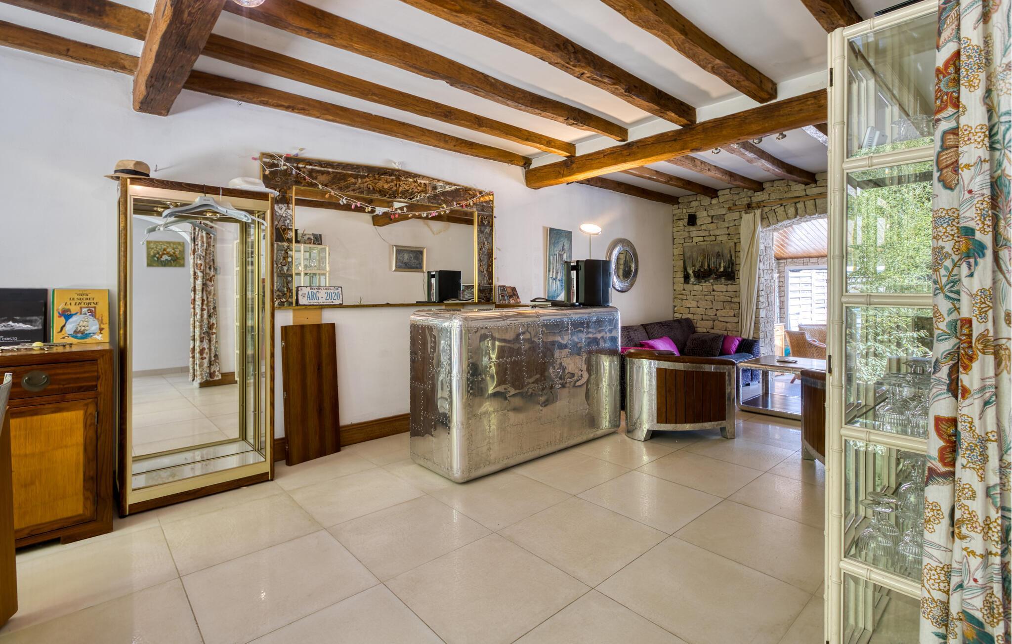 Treten Sie ein und lassen Sie sich von der originellen und stilvollen Einrichtung dieses geräumigen Ferienhauses begeistern. Zaubern Sie in der einladenden Küche gemeinsam französische Köstlichkeiten und zelebrieren Sie das Ergebnis im hellen Wintergarten. Kuscheln Sie sich nach einem langen Tag auf das gemütliche Sofa, spielen Sie ein Gesellschaftsspiel oder entspannen Sie bei einem guten Film.