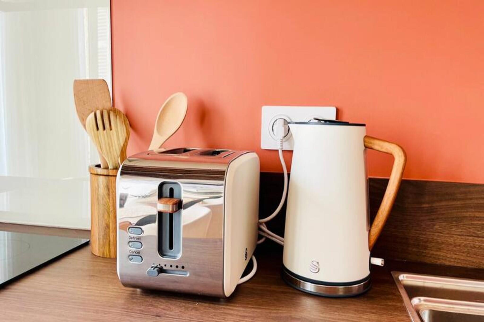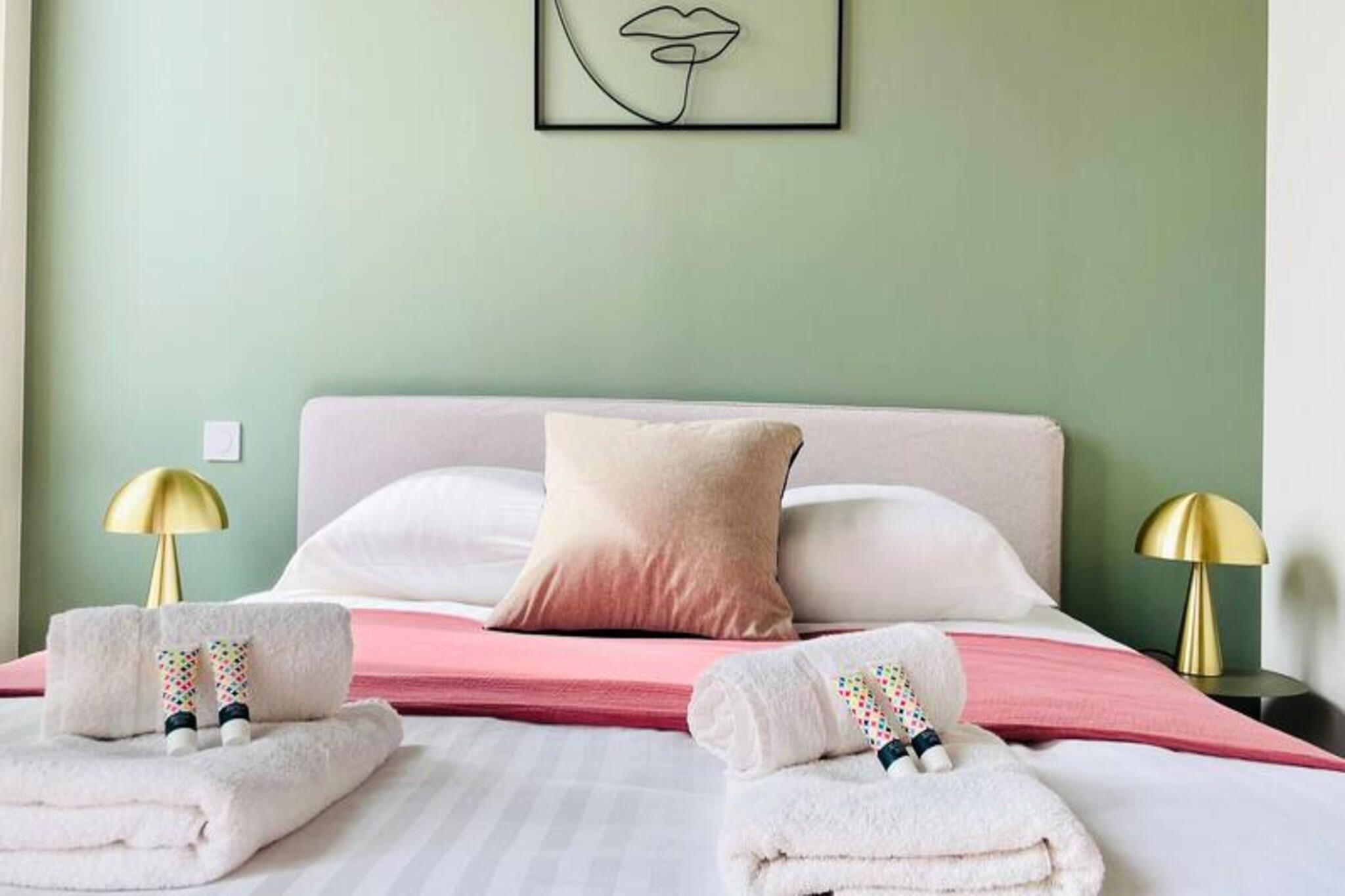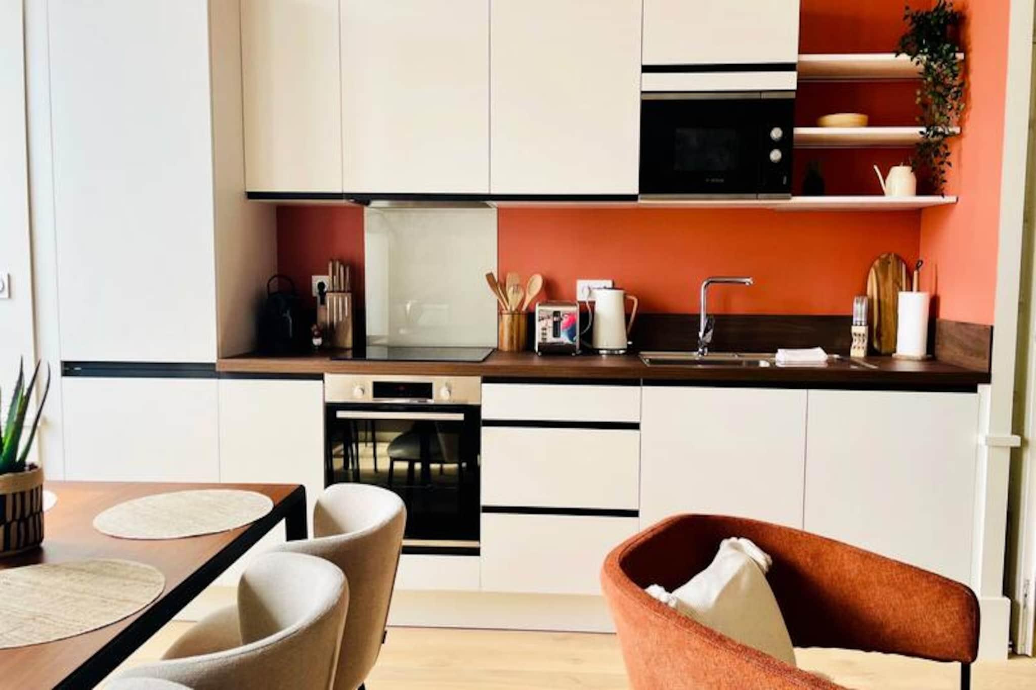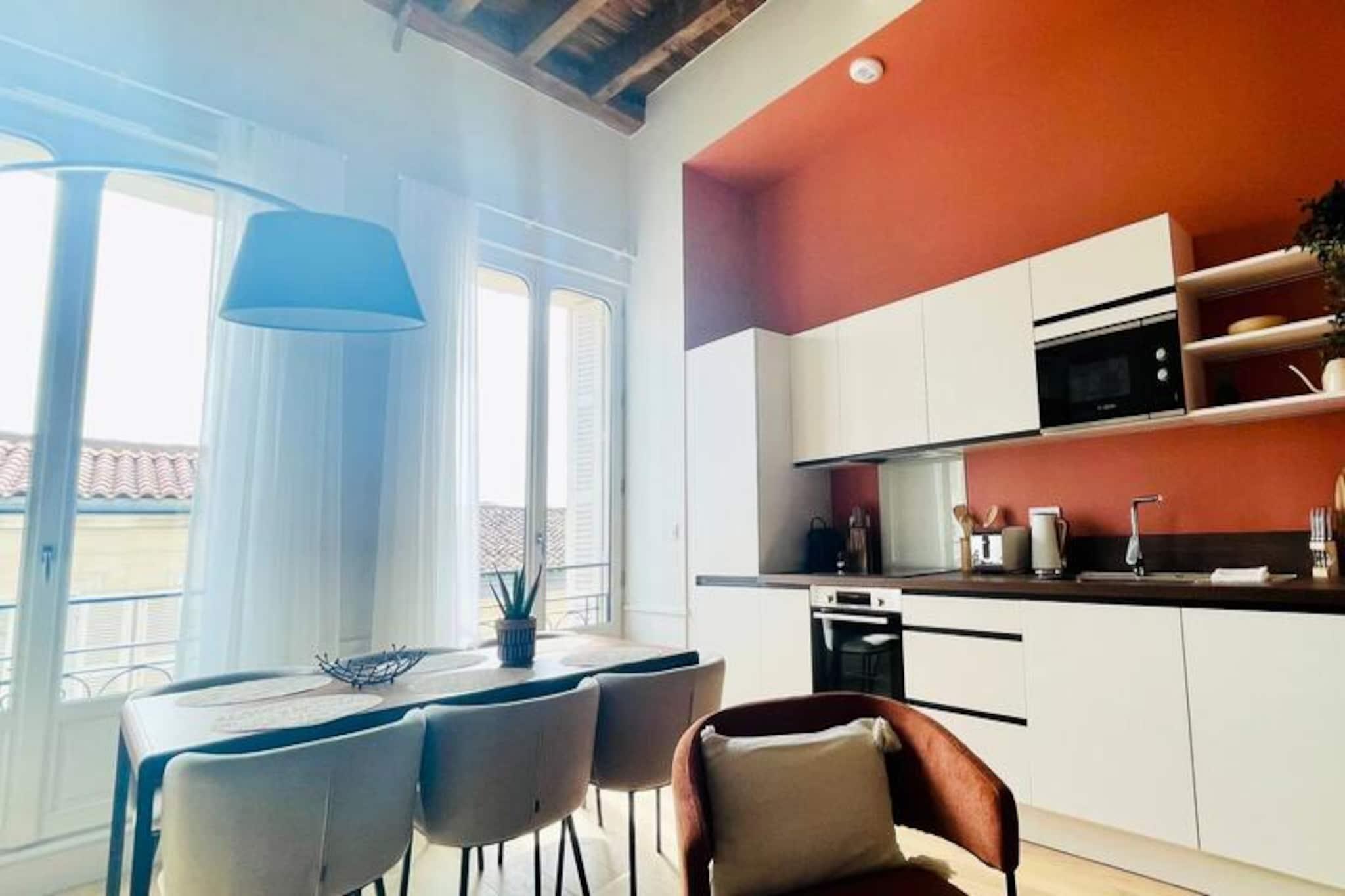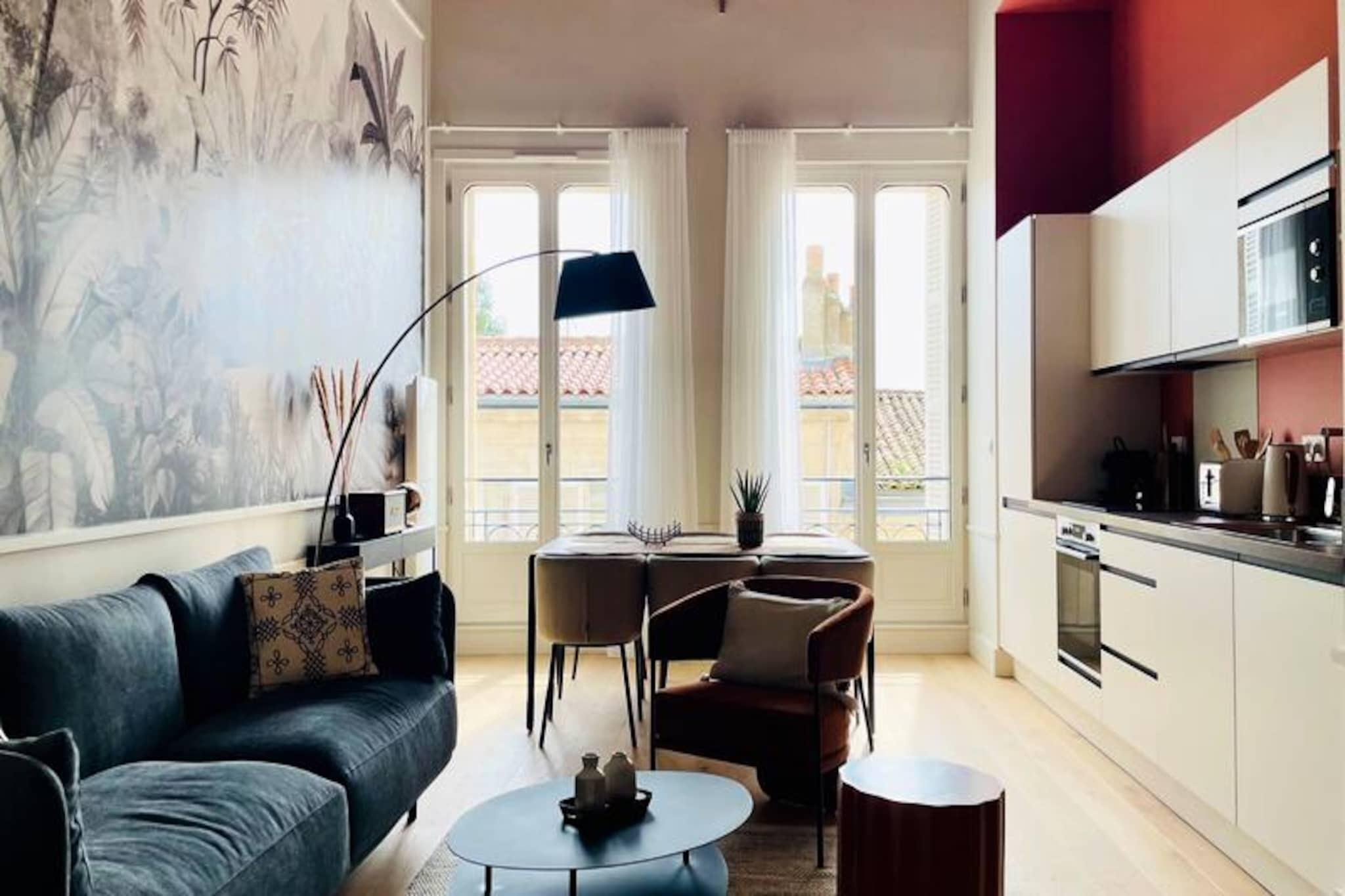 Step into the heart of La Rochelle and discover this stunning, newly renovated apartment nestled in a peaceful pedestrian street. Perfectly blending modern elegance with timeless charm, this exquisite retreat offers a serene escape just moments from the vibrant city center. Stroll to the bustling market, savor local delicacies at nearby restaurants, or explore charming boutiques, all within walking distance of your front door. The apartment’s prime location ensures you’re never far from the lively atmosphere of this historic coastal city. Inside, the apartment boasts two beautifully designed bedrooms with ample storage, a sleek bathroom, and a separate toilet. The open-plan living area is bathed in natural light, featuring a fully equipped kitchen that seamlessly flows into the dining and lounge spaces. Whether you’re preparing a gourmet meal with the oven and hob or enjoying a morning coffee from the Nespresso machine, every detail has been thoughtfully curated for your comfort. Additional amenities include a refrigerator with freezer, microwave, toaster, kettle, dishwasher, and even a washing machine, ensuring a convenient and stress-free stay. Located on the second floor of a luxury building with elevator access, this apartment is a true gem. For those arriving by car, parking is available at Place Verdun, just a short walk away. The Aloha Concierge Service is at your disposal throughout your stay, ready to assist with any questions or special requests. With linens, towels, and cleaning included, all you need to do is relax and immerse yourself in the beauty of La Rochelle. Whether you’re here for a romantic getaway, a family vacation, or a cultural escape, this apartment offers the perfect base to create unforgettable memories in one of France’s most enchanting cities.