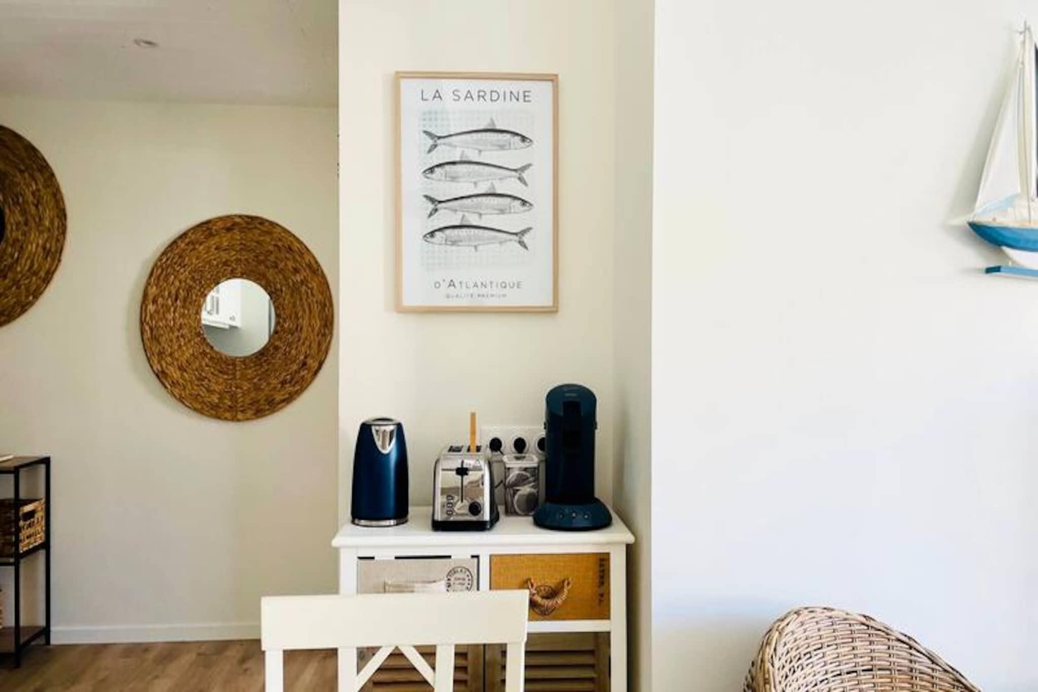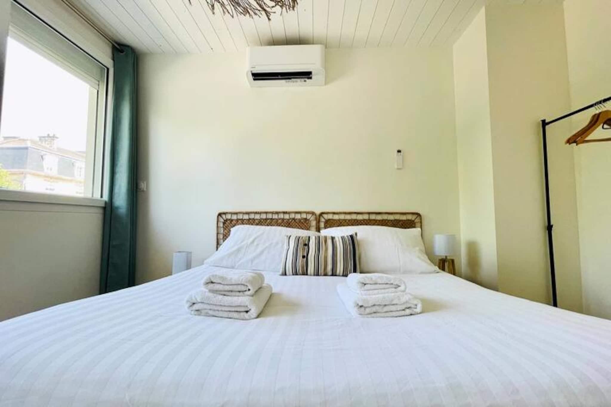 Step into a world of coastal charm and modern comfort with this beautifully renovated apartment, perfectly situated just moments from the vibrant heart of La Rochelle. Bathed in natural light, this first-floor retreat offers a serene escape with its seaside-inspired decor and spacious layout, ideal for families or groups of up to six. Whether you're strolling to the nearby parks or enjoying the lively atmosphere of the Vieux Port, this apartment places you at the center of everything while providing a peaceful haven to unwind. Inside, you'll find three generously sized bedrooms and a sleek bathroom with a walk-in shower, ensuring both style and functionality. The open-plan living area is a welcoming space, featuring a fully equipped kitchen with modern appliances such as an induction hob, Senseo coffee maker, and dishwasher. Relax in the cozy lounge with a flat-screen TV and Wi-Fi, or prepare a delicious meal to share around the dining table. A washing machine is also available, making it a convenient choice for longer stays. The location is unbeatable. A short 10-minute walk takes you to the bustling Marché Central, the sandy shores of Concurrence Beach, or the historic Vieux Port. For nature lovers, the tranquil La Rochelle Parks are just two minutes away, while free parking at L'Esplanade des Parcs and paid parking at Place de Verdun ensure easy access. The iconic Ile de Ré is only a 20-minute drive, offering endless opportunities for exploration. With the Aloha Concierge Service at your disposal, your stay will be seamless and memorable. From insider tips on the best local restaurants to hidden gems around La Rochelle, you'll have all the guidance you need for an unforgettable getaway. Experience the perfect blend of coastal living and urban convenience in this exceptional apartment.