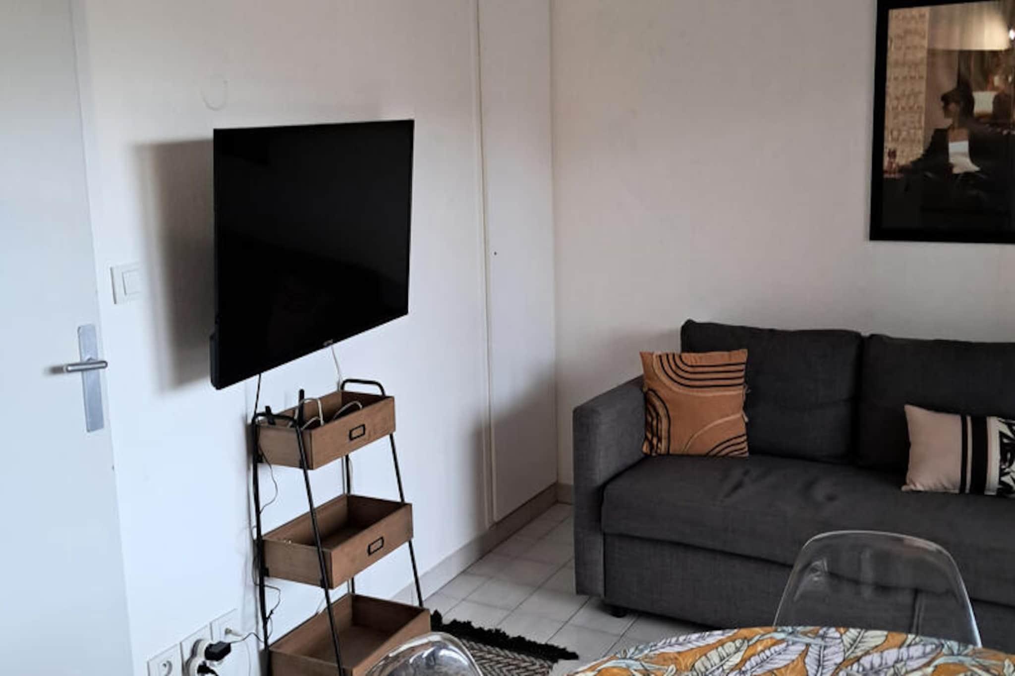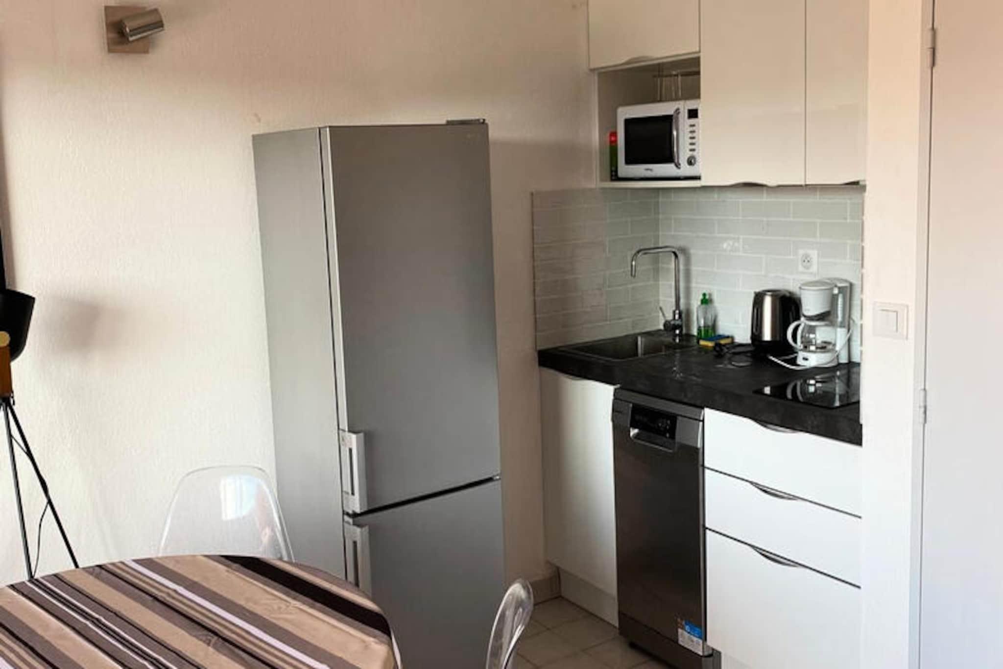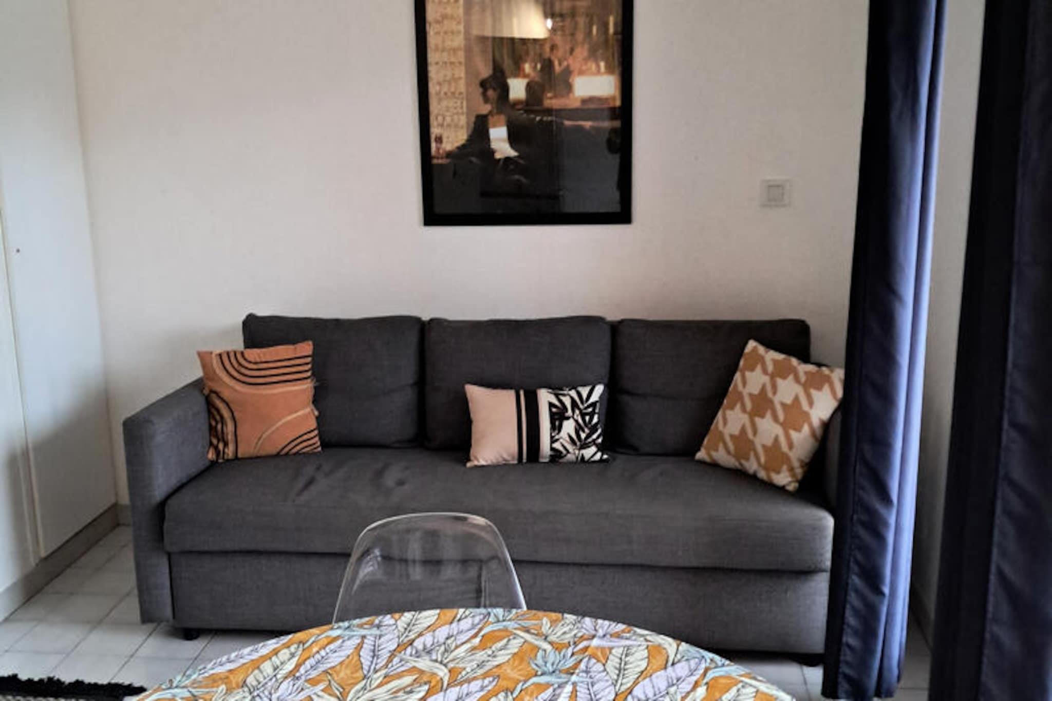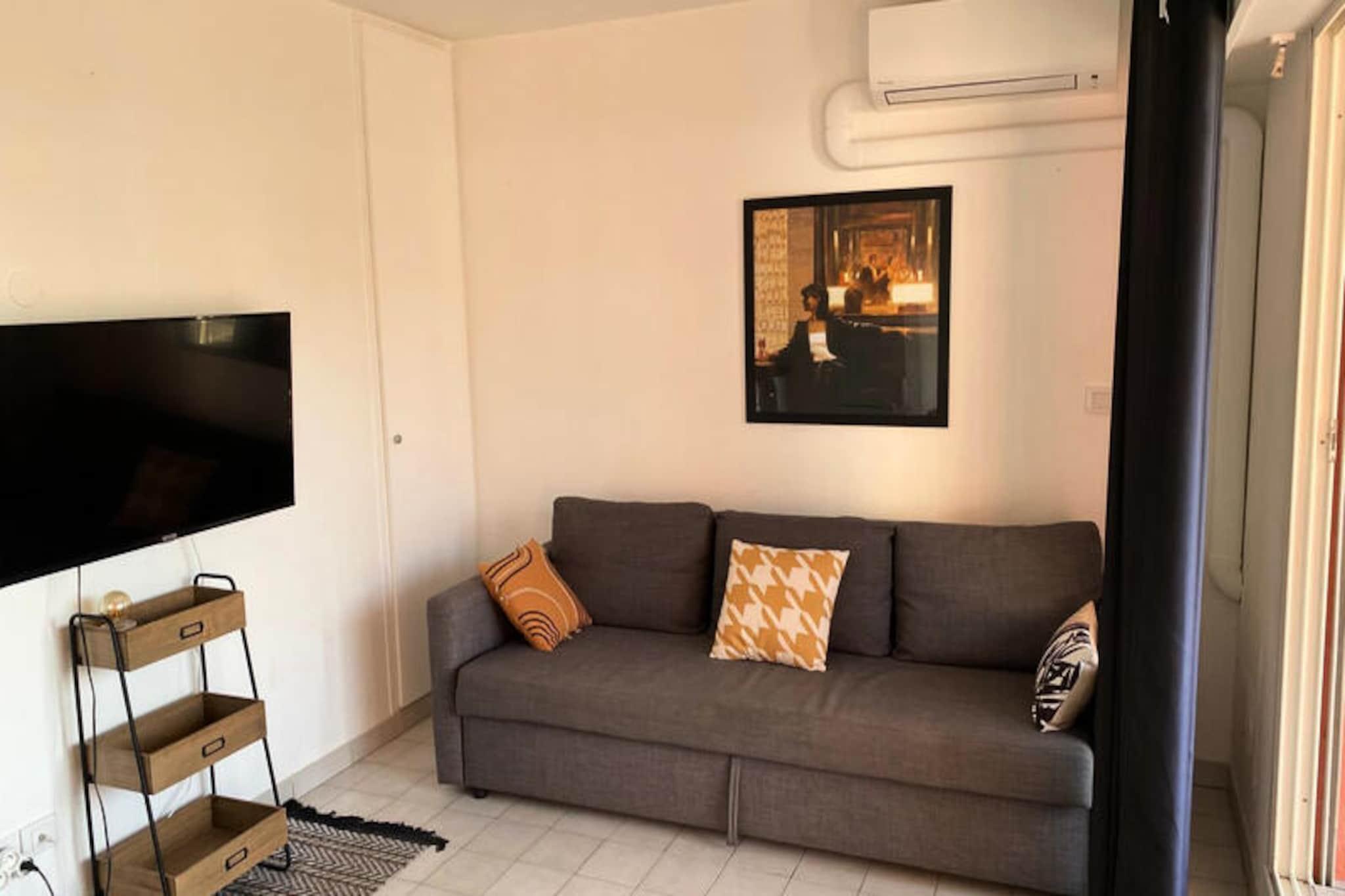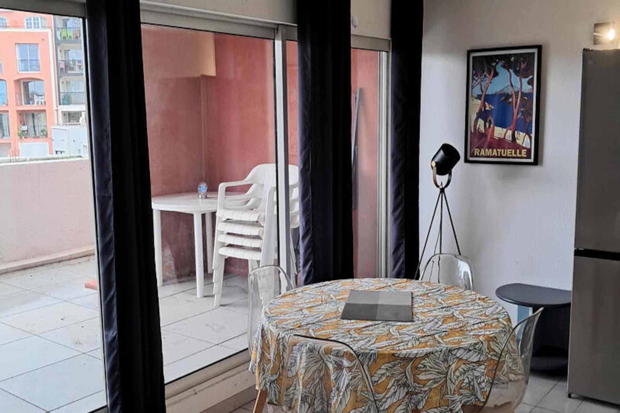 Just steps away from the golden sands of the French Riviera, this charming apartment offers a tranquil escape in a prime location near Saint Tropez. Imagine waking up to the gentle sound of waves and enjoying your morning coffee on the spacious covered terrace, surrounded by lush greenery and the Mediterranean breeze. Whether you're seeking relaxation or adventure, this property places you at the heart of it all, with easy access to the vibrant coastal lifestyle of southern France. \n\nInside, the air-conditioned apartment is thoughtfully designed for comfort and convenience. The bedroom features two cozy single beds, while the living room provides additional sleeping arrangements with a comfortable sofa bed. A fully equipped kitchen, complete with a dishwasher, stovetop, refrigerator, freezer, and microwave, makes meal preparation a breeze. The bathroom includes a bathtub, vanity unit, and toilet, ensuring a pleasant stay for couples or small families. The living area is perfect for unwinding after a day of exploration, with a television, dining table, and seating for four. \n\nThe residence boasts a shared pool, ideal for cooling off under the Mediterranean sun or enjoying a leisurely swim. Nearby, you'll find shops and local amenities within walking distance, making it easy to immerse yourself in the charming Provençal lifestyle. The iconic Saint Tropez is just a 10-minute drive away, offering world-class dining, shopping, and nightlife. \n\nWhether you're here to bask in the sun, explore the picturesque coastline, or indulge in the vibrant culture of the Côte d'Azur, this apartment provides the perfect base for an unforgettable holiday. Let the beauty of the French Riviera captivate your senses and create memories to last a lifetime.