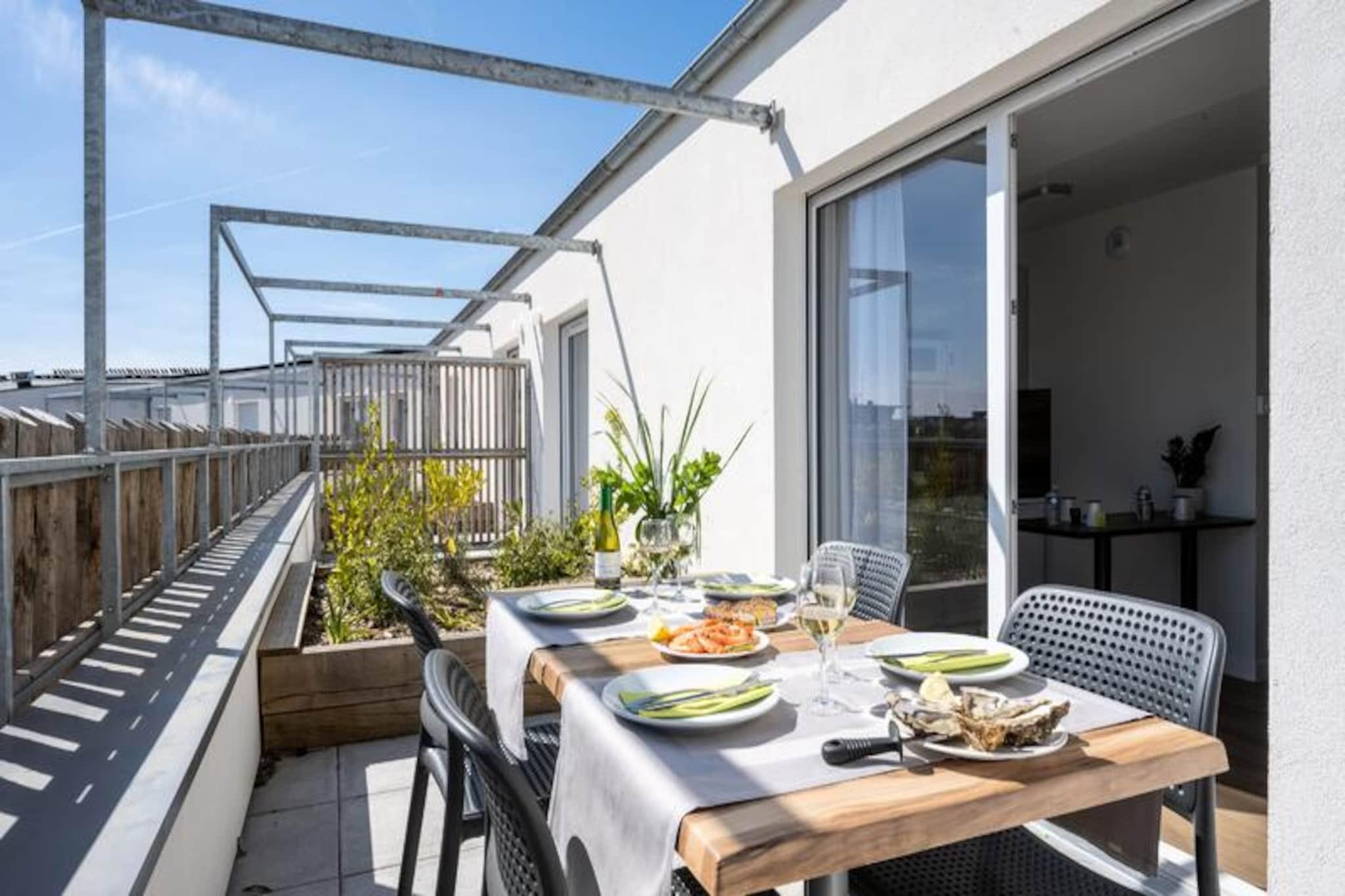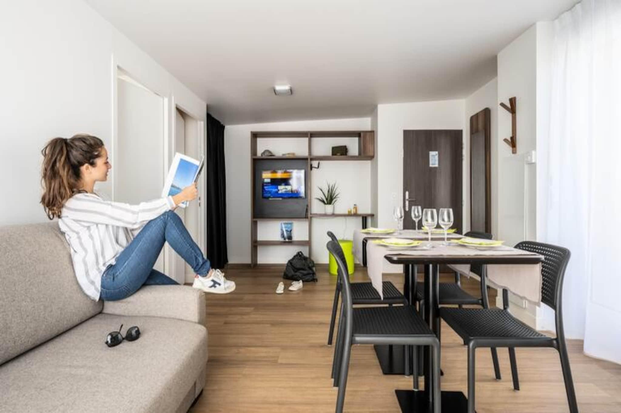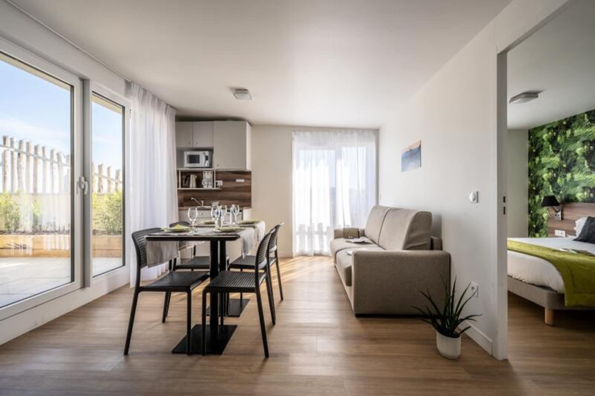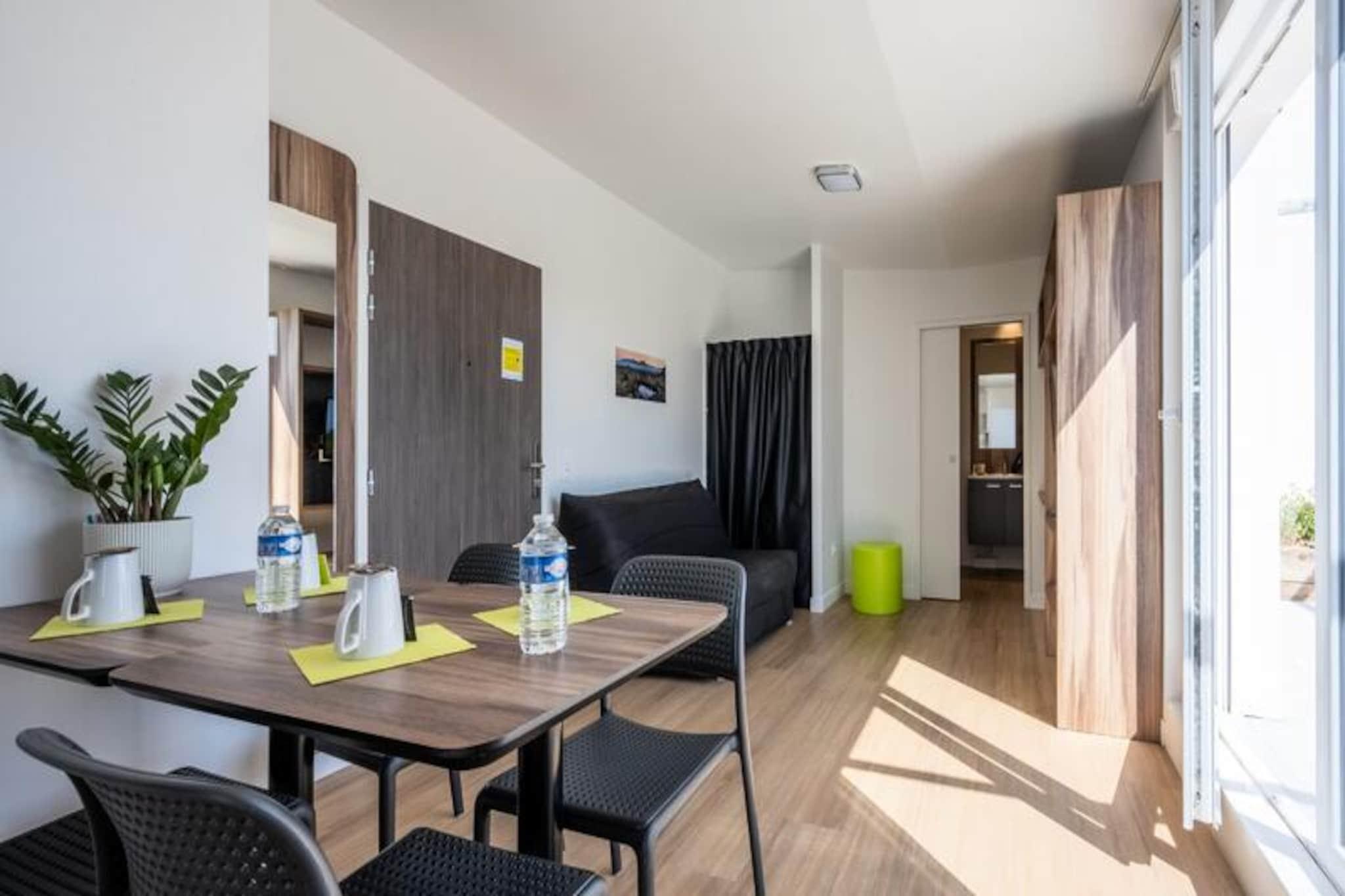Just a short distance from the historic port of La Rochelle, the Athome Residence & Spa invites you to immerse yourself in the serene charm of France's Atlantic coast. Whether you're seeking a tranquil retreat or an active getaway, this residence offers the perfect balance of relaxation and exploration. Picture yourself starting the day with a hearty buffet breakfast before heading out to discover the region's stunning beaches, scenic cycling paths, or the renowned La Rochelle Aquarium. The residence's proximity to the islands of Ré and Oléron also makes it an excellent base for day trips filled with adventure and discovery. The property is designed with your comfort in mind. The living area features a cozy double sofa bed, while the bedroom offers a restful double bed for a peaceful night's sleep. The kitchen area is equipped for preparing meals, and the shower room with WC ensures convenience. Step out onto your private terrace or balcony overlooking the garden, where you can unwind with a book or simply soak in the tranquil surroundings. For those traveling with pets, the residence welcomes your furry companions for a small fee, ensuring the whole family can enjoy the stay. Indulge in the wellness area, complete with a sauna, hammam, and jacuzzi, available by reservation. Whether you're relaxing after a day of sightseeing or rejuvenating during a quiet afternoon, this space is designed to help you unwind. Private outdoor parking is available for added convenience, and baby cots can be provided upon request. With end-of-stay cleaning included and towels provided, your stay is as hassle-free as it is enjoyable. Discover the magic of La Rochelle and its surroundings, from the vibrant city life to the natural beauty of the Atlantic coast. The Athome Residence & Spa is your gateway to unforgettable memories, blending comfort, wellness, and the allure of the French seaside.