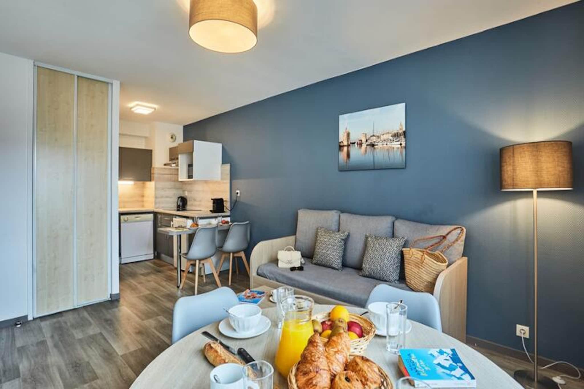 In the heart of the charming coastal city of La Rochelle, the Odalys Archipel**** Residence offers a perfect blend of relaxation and exploration. Just a short stroll from the historic old port, the vibrant city center, and the sandy beaches, this residence is an ideal base for discovering the rich maritime history and cultural treasures of the region. Imagine waking up to the salty breeze of the Atlantic, enjoying a leisurely breakfast on your private balcony or terrace, and setting out for a day filled with adventure. The residence boasts a range of modern amenities to ensure a comfortable stay. Take a refreshing dip in the heated outdoor swimming pool, open from April to September, or maintain your fitness routine in the well-equipped gym. The accommodations are thoughtfully designed, featuring a cozy living room with two single pull-out sofa beds, a fully equipped kitchen, and spacious bedrooms with double and single beds. Free Wi-Fi throughout the residence keeps you connected, while the pet-friendly policy ensures that no family member is left behind. La Rochelle’s attractions are just steps away. Wander through the picturesque arcaded streets, marvel at the Lantern Tower, or visit the impressive aquarium, a favorite among children and adults alike. History enthusiasts will enjoy exploring landmarks such as the House of Henry II, the Cathedral, and the Grosse Horloge. For a more tranquil experience, take a leisurely walk along the coastline or enjoy a sunset by the port. Whether you’re seeking a cultural escape, a family adventure, or a peaceful retreat by the sea, the Odalys Archipel**** Residence promises an unforgettable stay in one of France’s most enchanting destinations.