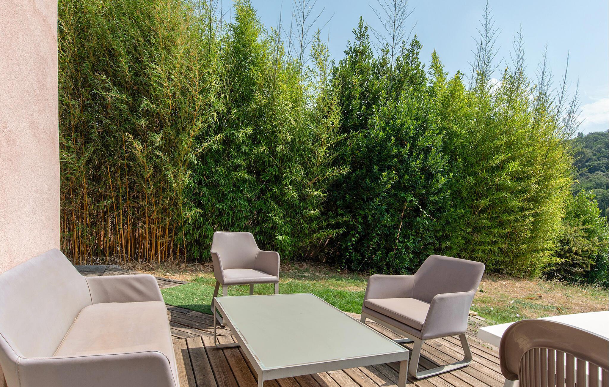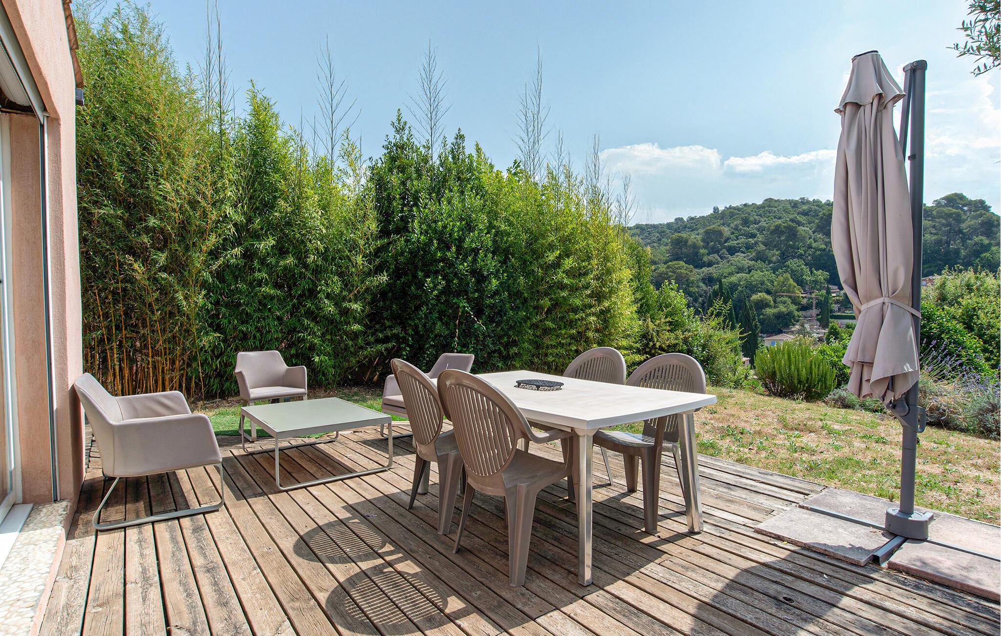 Dieses charmante Studio ist der ideale Ort, um in vertrauter Zweisamkeit dem Alltag zu entfliehen und erholsame Tage an der Côte d’Azur zu genießen. Genießen Sie Ihre Mahlzeiten im hellen und liebevoll eingerichteten Wohnbereich, zaubern Sie köstliche Gerichte aus frischen Produkten vom Markt und plaudern Sie bei einem Glas Wein, während Sie den Blick über die malerische Landschaft schweifen lassen.