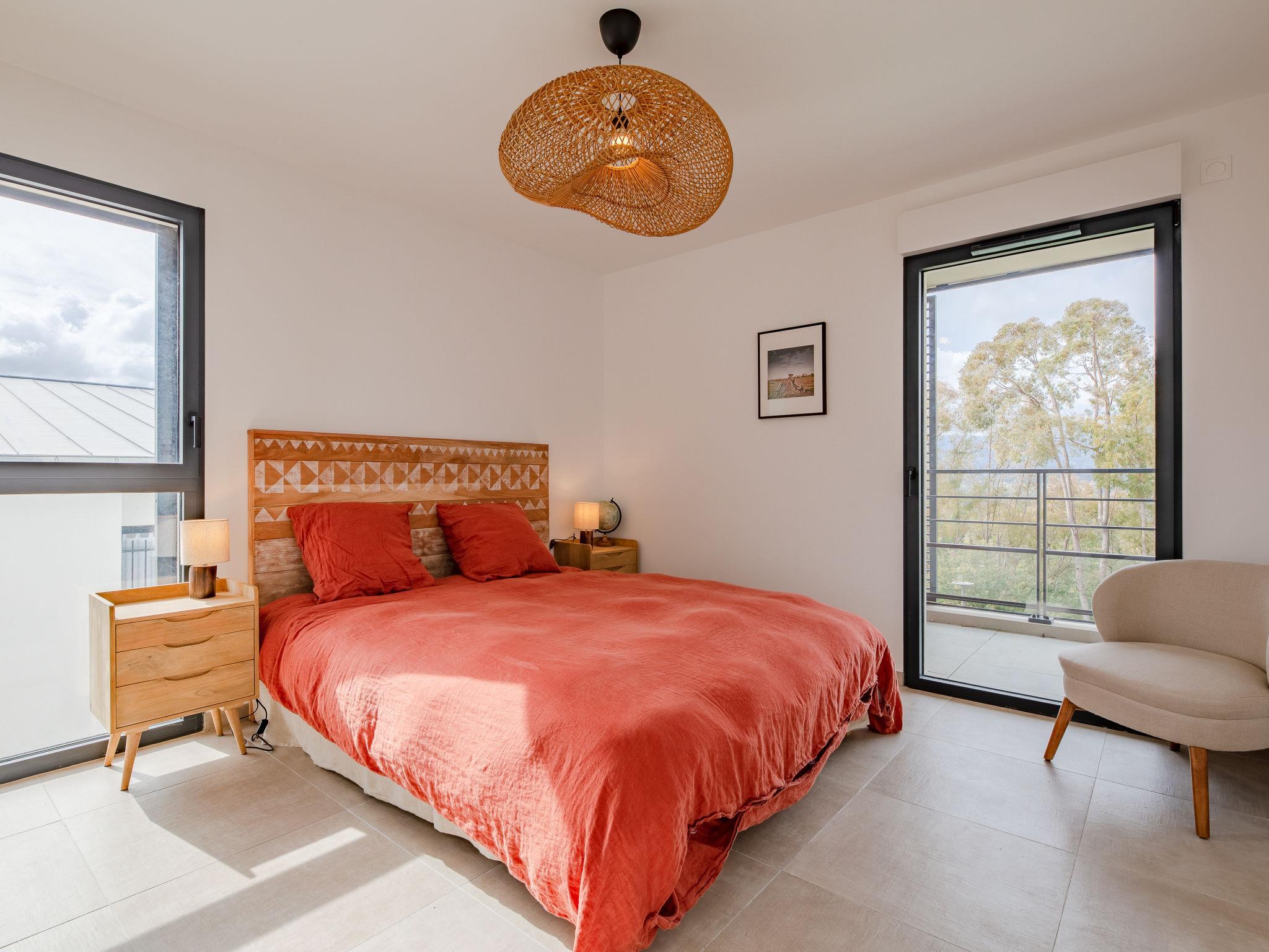 La Roquette sur Siagne 10 km from Cannes: Very modern, beautiful villa "Villa La Roquette sur Siagne", 2 storeys, detached, built in 2023. Residential area (villas). Private: well-kept garden 400 m2 (fenced), swimming pool heated (8 x 4 m, depth 120 - 150 cm, seasonal availability: 01.May. - 30.Sep.) with shutter cover. In the house: burglar alarm system. Parking (for 3 cars). Shop, restaurant 500 m, bus stop 600 m, sandy beach "Plage du Midi" 7 km. Sports harbour 10 km, golf course (18 hole) 5 km. Nearby attractions: Cannes 10 km, Grasse 10 km, Nice 35 km. Hiking paths: Tanneron 6 km. The owner does not accept any youth groups. Part of the house is closed and unoccupied. Residence with electric gates. Neighbourhood highly sensitive to noise. Quietness and good behaviour expected.
