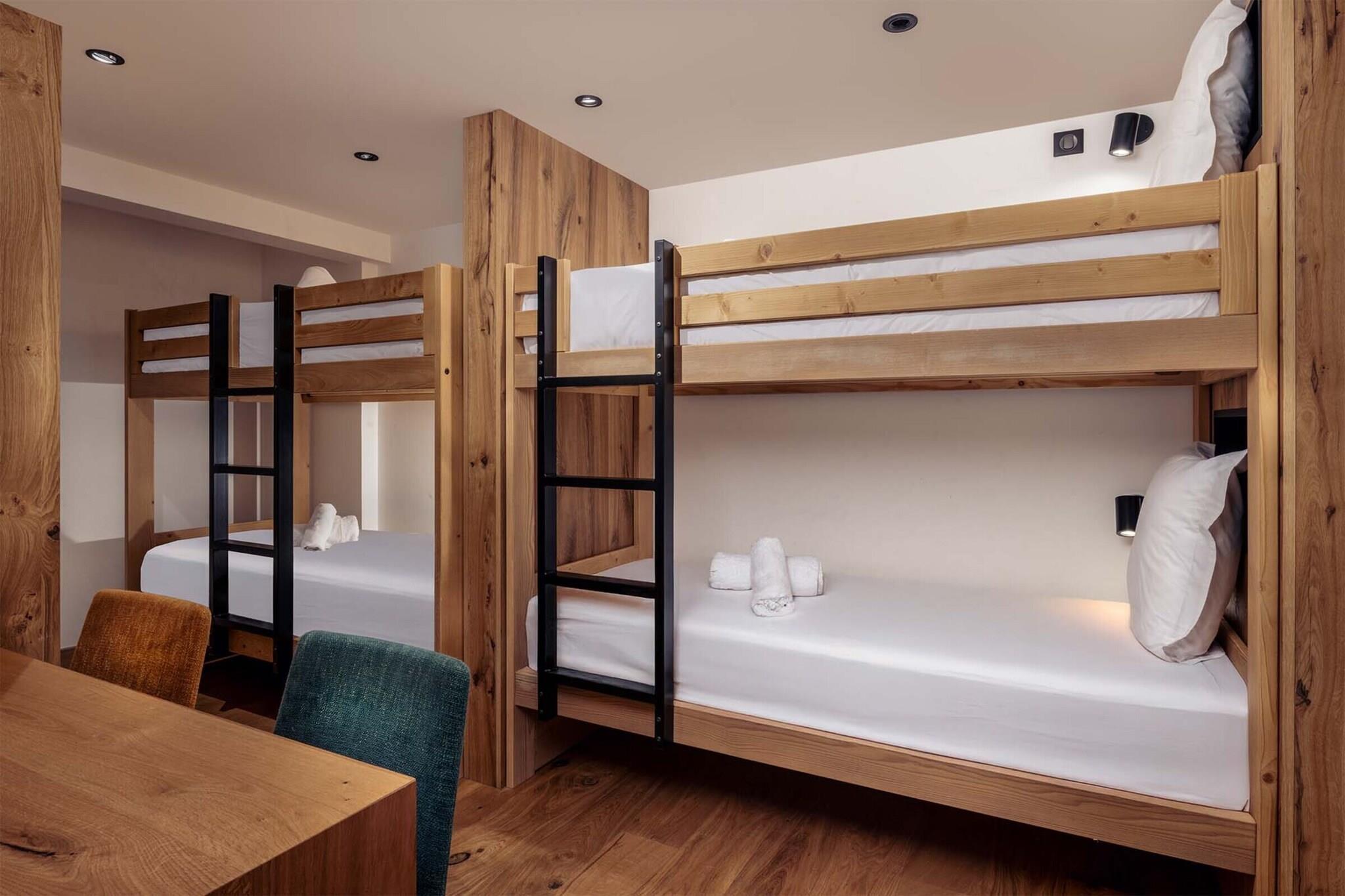 Welcome to Apartment No. 4 – a spacious, detached alpine chalet in the heart of La Rosière, perfect for large families or groups of up to 14 guests. Whether you're here for winter skiing or summer hiking, this cozy mountain retreat offers the perfect blend of comfort, convenience, and adventure. The chalet features six bedrooms, including four with private bathrooms, plus two cozy bunk-bed cabins ideal for kids or teens. A fully equipped kitchen, a warm living area with a flat-screen TV, and multiple bathrooms ensure a comfortable stay for everyone. After a day on the slopes, unwind with ski boot heaters, relax on the 40 m² terrace, or take a dip in the heatable outdoor pool—a rare luxury in the Alps. Located just minutes from the ski lifts, hiking trails, and the charming village center of La Rosière, this chalet is your gateway to year-round alpine fun. Enjoy skiing, snowboarding, snow parks, and après-ski in winter, or explore scenic trails, mountain biking, and local markets in summer. With internet access, on-site parking, and a peaceful forest-edge setting, this is your ideal base for unforgettable mountain memories.