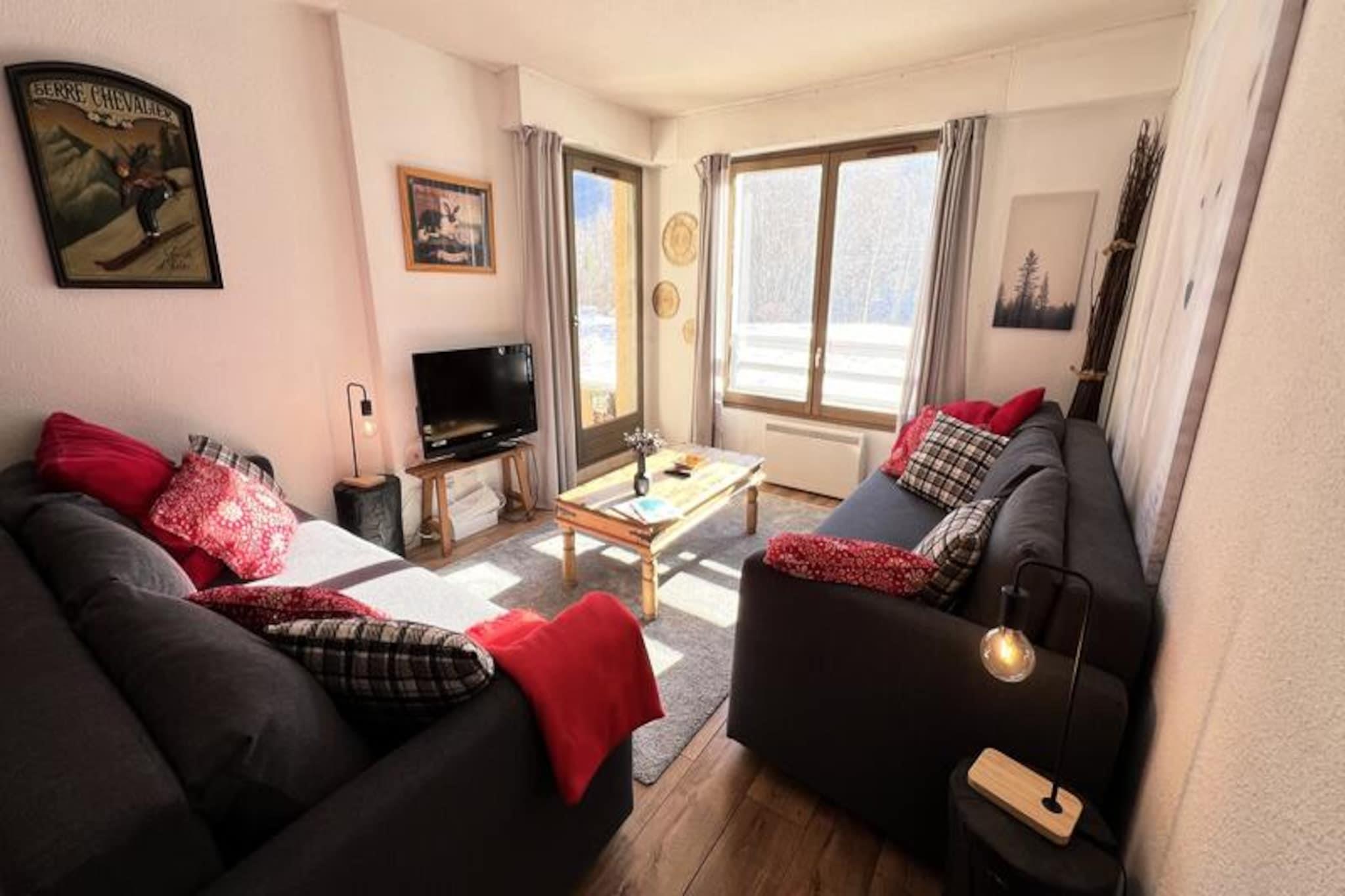 In the serene embrace of the French Alps, this charming apartment in the Jardin Alpin Anémone residence offers a tranquil retreat surrounded by lush greenery and breathtaking mountain views. Perfectly positioned for both relaxation and adventure, the residence is just 300 meters from the Pontillas gondola lift, making it an ideal base for exploring the slopes in winter or the scenic trails in summer. The peaceful riverside setting and proximity to the Biotope nature reserve create a haven for nature lovers seeking a rejuvenating escape. This 58 m² apartment is thoughtfully designed to accommodate up to six guests, featuring two cozy bedrooms with double beds and a comfortable sofa bed in the living room. The fully equipped kitchen, complete with a Krups coffee machine, induction cooktop, and dishwasher, invites you to prepare delightful meals to enjoy on the south-facing terrace. With a shower room, a bathroom, and a separate WC, the layout ensures convenience and privacy for all guests. Additional amenities include a private ski locker and parking right in front of the residence, making your stay as seamless as possible. Beyond the comforts of the apartment, you’ll find a wealth of activities at your doorstep. Whether it’s skiing, snowshoeing, or cross-country trails in the winter, or mountain biking and lakeside strolls in the summer, the area offers endless opportunities for outdoor enthusiasts. The nearby village shuttle ensures easy access to shops, restaurants, and local attractions, while the Biotope lake and nature reserve provide a tranquil escape into the heart of alpine beauty. Whether you’re seeking thrilling adventures or peaceful moments amidst nature, this apartment is the perfect choice for an unforgettable holiday in the Alps. Let the crisp mountain air and stunning landscapes inspire your next getaway.