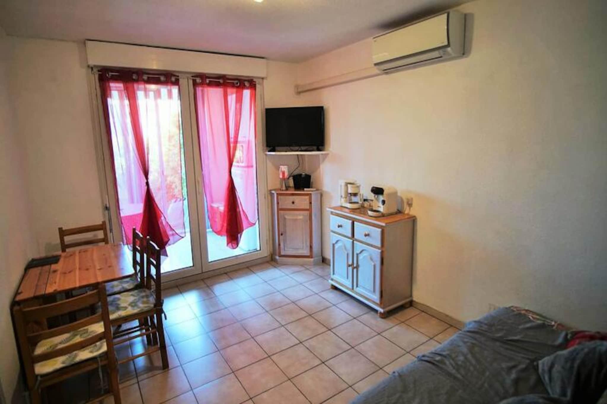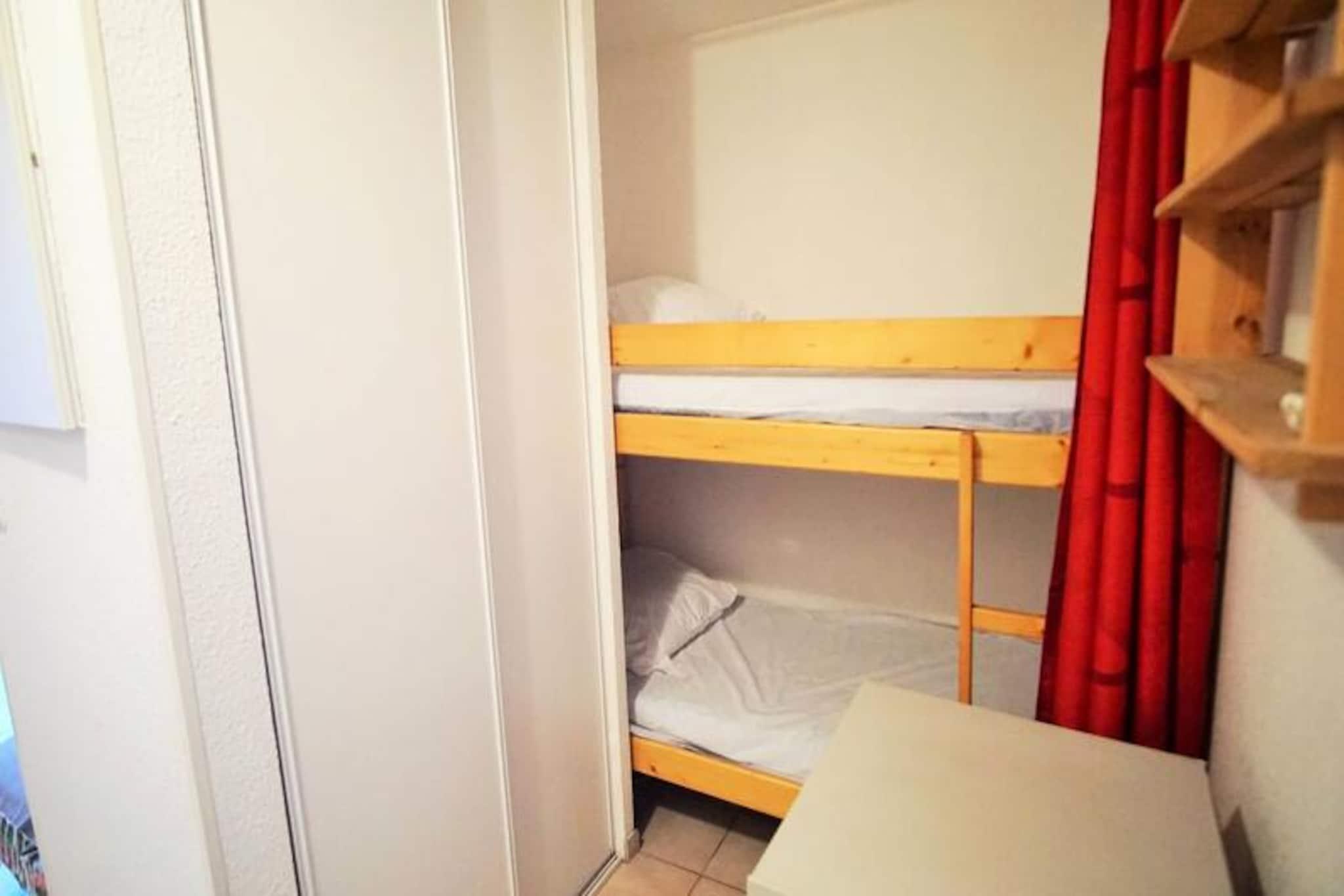This charming T2 apartment, situated in a residence with access to a garden swimming pool, is perfect for families or small groups. It features a bedroom with a double bed (140 cm) and a separate sleeping area with 2 bunk beds (90 cm), designed for children over 6 years old. The apartment is non-smoking and does not accommodate pets, ensuring a peaceful stay. Private parking is available for guests. Ideally located, the property offers easy access to local attractions and amenities. The nearby swimming pool is perfect for relaxation, and the surrounding area offers beautiful views and tranquil walks. Guests can enjoy nearby cafes, restaurants, and markets, with the area offering a perfect blend of relaxation and exploration. The apartment is equipped with all essential amenities for a comfortable stay. The kitchen includes hobs, an extractor hood, a multifunction oven, a fridge, freezer, coffee maker, and kettle, as well as an electric barbecue and plancha for outdoor cooking. The living room is air-conditioned and features a TV and washing machine. The bathroom is well-appointed with a separate shower room and WC. Enjoy the garden furniture and deckchairs, perfect for outdoor relaxation.