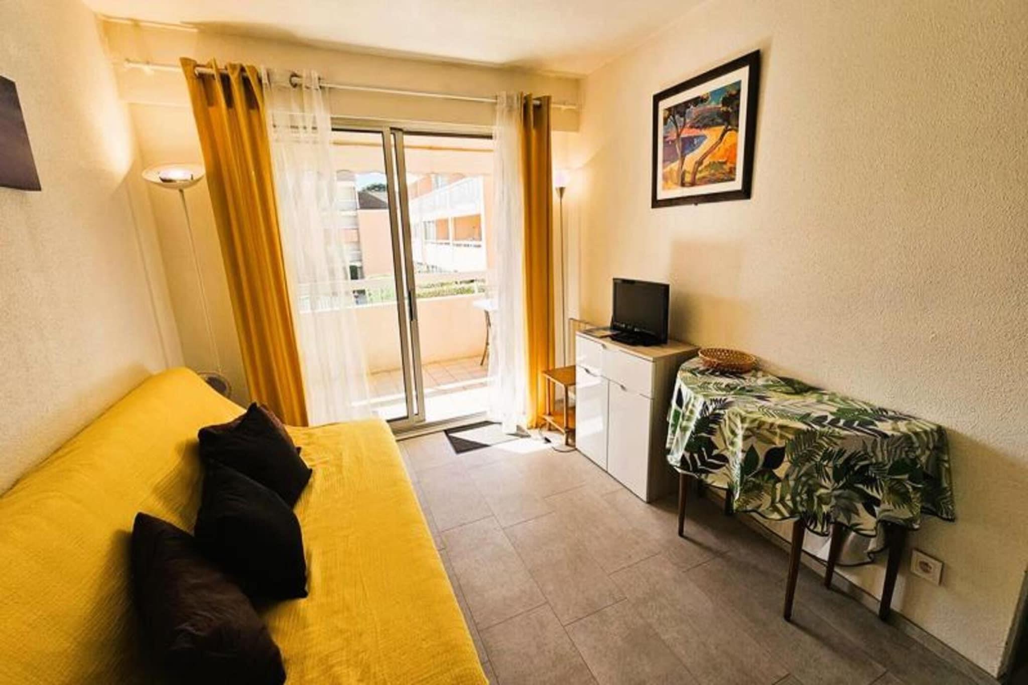 This lovely holiday apartment is located in a private residence just 100 meters from the sea, offering a peaceful and relaxing retreat. The apartment includes a bright living room with a kitchen area open to the living space, and a separate bedroom. For a comfortable stay, the apartment is fully equipped with modern amenities, including a TV, internet, mini oven, electric hob, refrigerator with top freezer, microwave, electric coffee maker, toaster, washing machine, iron, and ironing board. The bedroom features a cozy 140 cm bed, and the living room has a 2-seater convertible sofa for additional sleeping space. The apartment also comes with a private parking space. The residence is ideally situated just 1100 meters from Sablettes Beach, one of the region's most beautiful sandy beaches, and offers free access to a swimming pool. Shops, restaurants, and entertainment are within walking distance, with a short 15-minute walk to the beach. This location provides an excellent opportunity to enjoy the coastal lifestyle, with the convenience of nearby amenities and the tranquility of being close to the sea. The apartment also features a private balcony overlooking the swimming pool, complete with garden furniture, perfect for relaxing outdoors. While bed linen, towels, and end-of-stay cleaning are not included, guests have the option to add these services for a more convenient stay. Pets are welcome for an additional charge, and the accommodation is non-smoking.