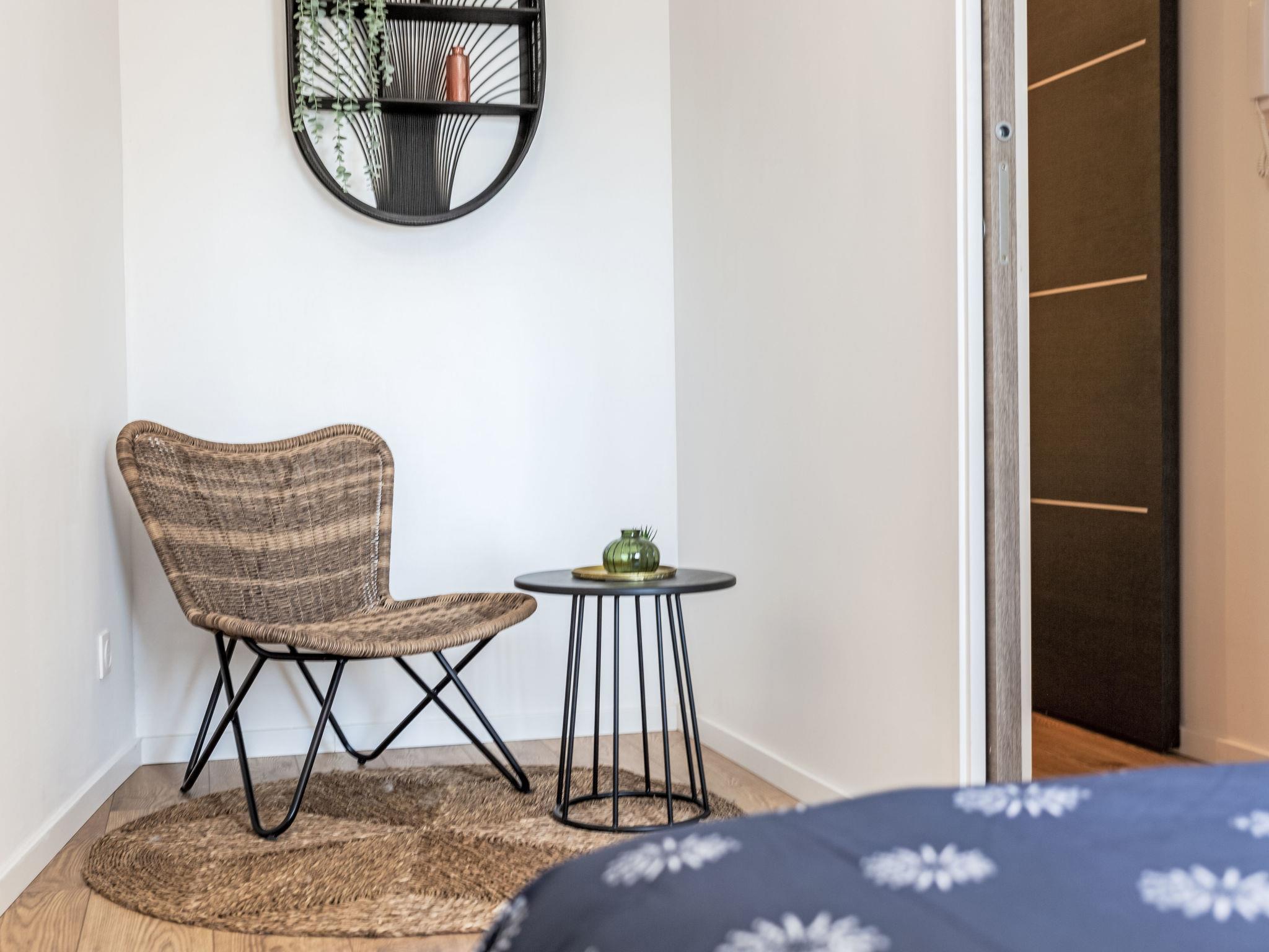2-room apartment 35 m2 on 1st floor. Beautiful furnishings: living/dining room with 1 double sofabed (140 cm, length 190 cm), TV (flat screen). Exit to the balcony. 1 room with 1 french bed (140 cm, length 190 cm). Kitchenette (dishwasher, 1 induction hot plates, 2 gas rings, toaster, kettle, microwave, electric coffee machine, Capsules for coffee machine (Dolce gusto) extra). Shower/WC. Electric heating, air-conditioning. Terrace 5 m2, roofed, south facing position and west facing position. Partial view of the sea. Facilities: washing machine, hair dryer. Internet (WiFi, free). Parking space n 10 (1 car) at 100 m. Please note: non-smokers only, parking space for small car only. TV only FR. Smoke alarm, no lift. Offer by a private individual according to Art. 155, IV of CGI.