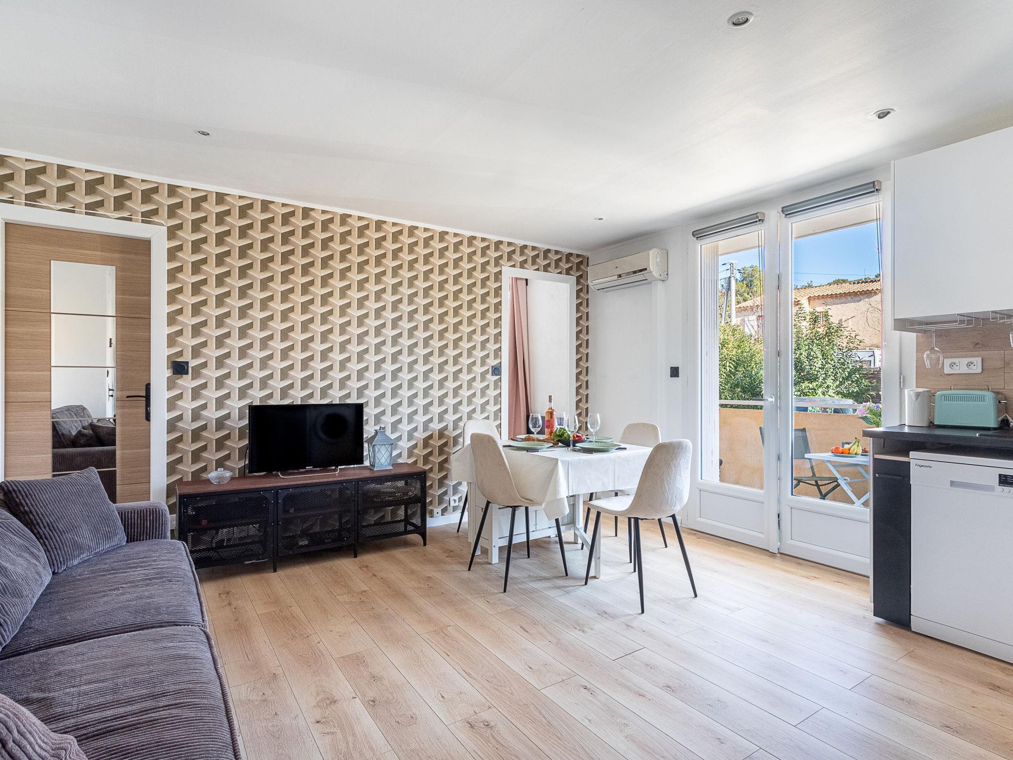 2-room apartment 33 m2, on the upper ground floor. Fully renovated in 2024, beautiful furnishings: living/dining room with 1 double sofabed (160 cm, length 200 cm), TV (flat screen). Exit to the balcony. 1 room with 1 french bed (160 cm, length 200 cm). Kitchenette (dishwasher, 1 induction hot plates, 4 gas rings, toaster, kettle, microwave, electric coffee machine, Capsules for coffee machine (Tassimo) extra). Shower/WC. Electric heating, air-conditioning. Balcony 5 m2, south facing position and west facing position. Balcony furniture. Facilities: washing machine. Internet (WiFi, free). Parking space n 3 (1 car). Please note: TV only FR. Smoke alarm, no lift. Offer by a private individual according to Art. 155, IV of CGI.