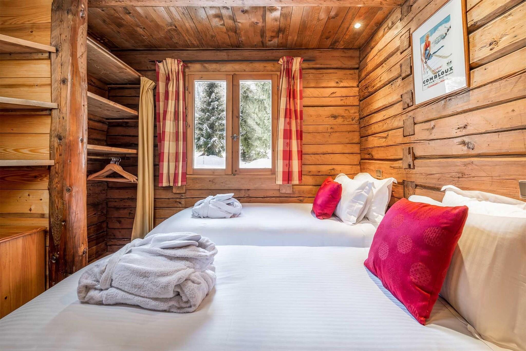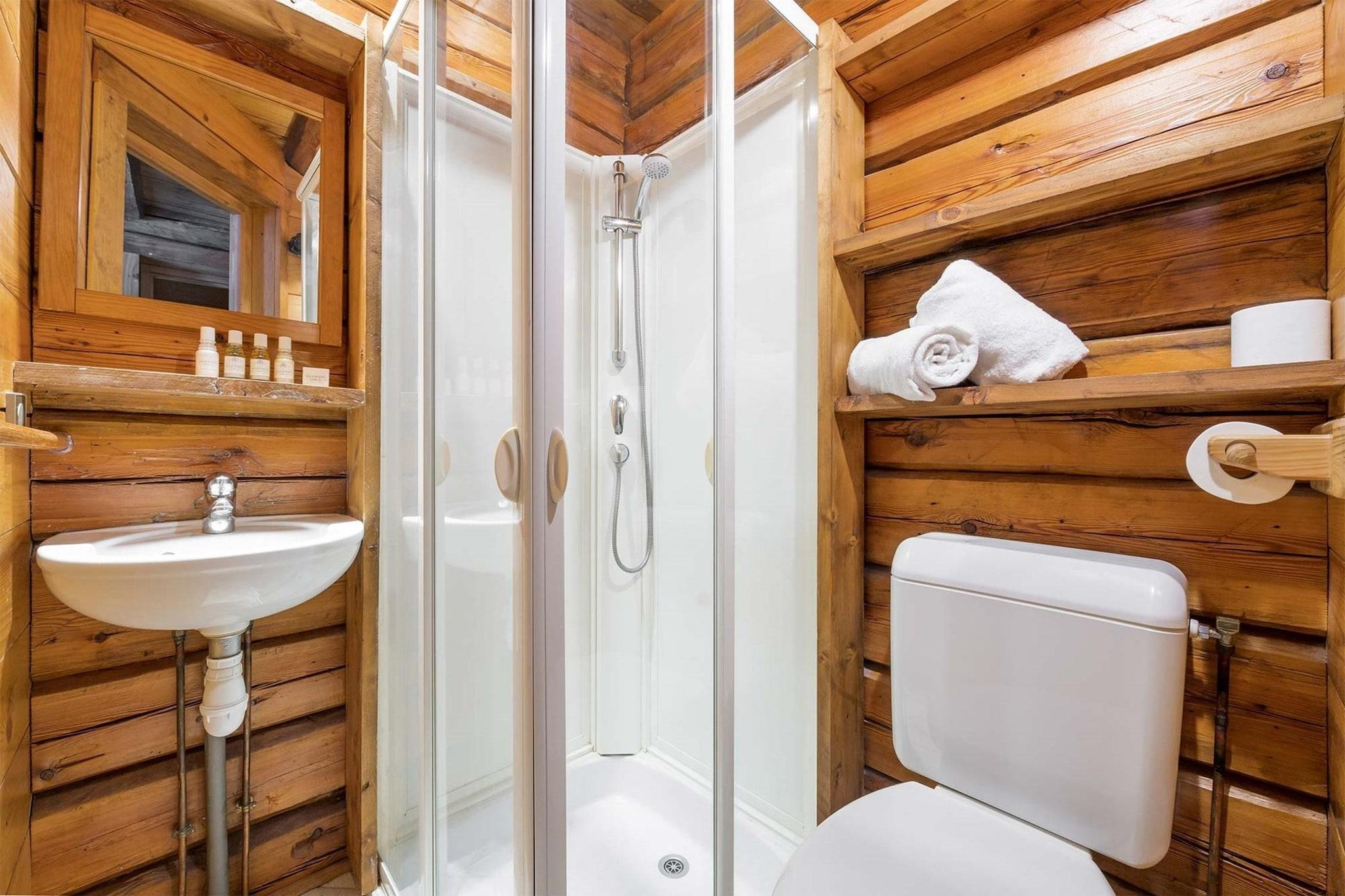 The chalet is located in the charming village of La Tania, between Meribel and Courchevel in the heart of the Les Trois Vallées ski area. The village is set on the edge of a forest, the snow-capped pines make it a great postcard picture, and its small size means everything is close by, so you're never far from the slopes or the shops, bars and restaurants in the village centre. For more experienced skiers, it's possible to ski off-piste through the trees directly from the chalet. Chalet Elliot Est was built using wood from an old Russian farm and offers the feel of a traditional log cabin. Set in the picturesque surroundings of the La Tania forest, with exposed wooden beams, pine panelling as well as a wood burning stove, this chalet will make a wonderful home for a ski holiday with family or friends. It is set over two floors with four comfortable bedrooms sleeping up to 8 people, each with its own shower room and toilet.