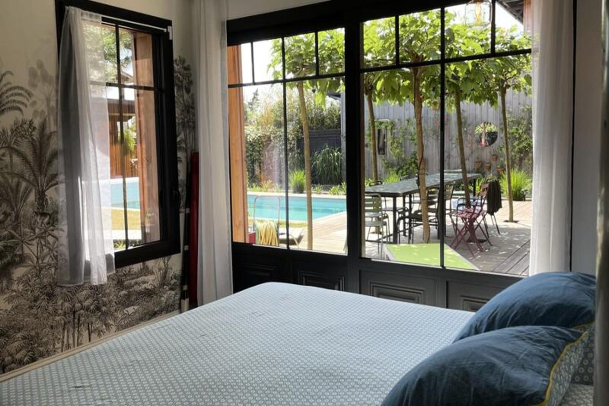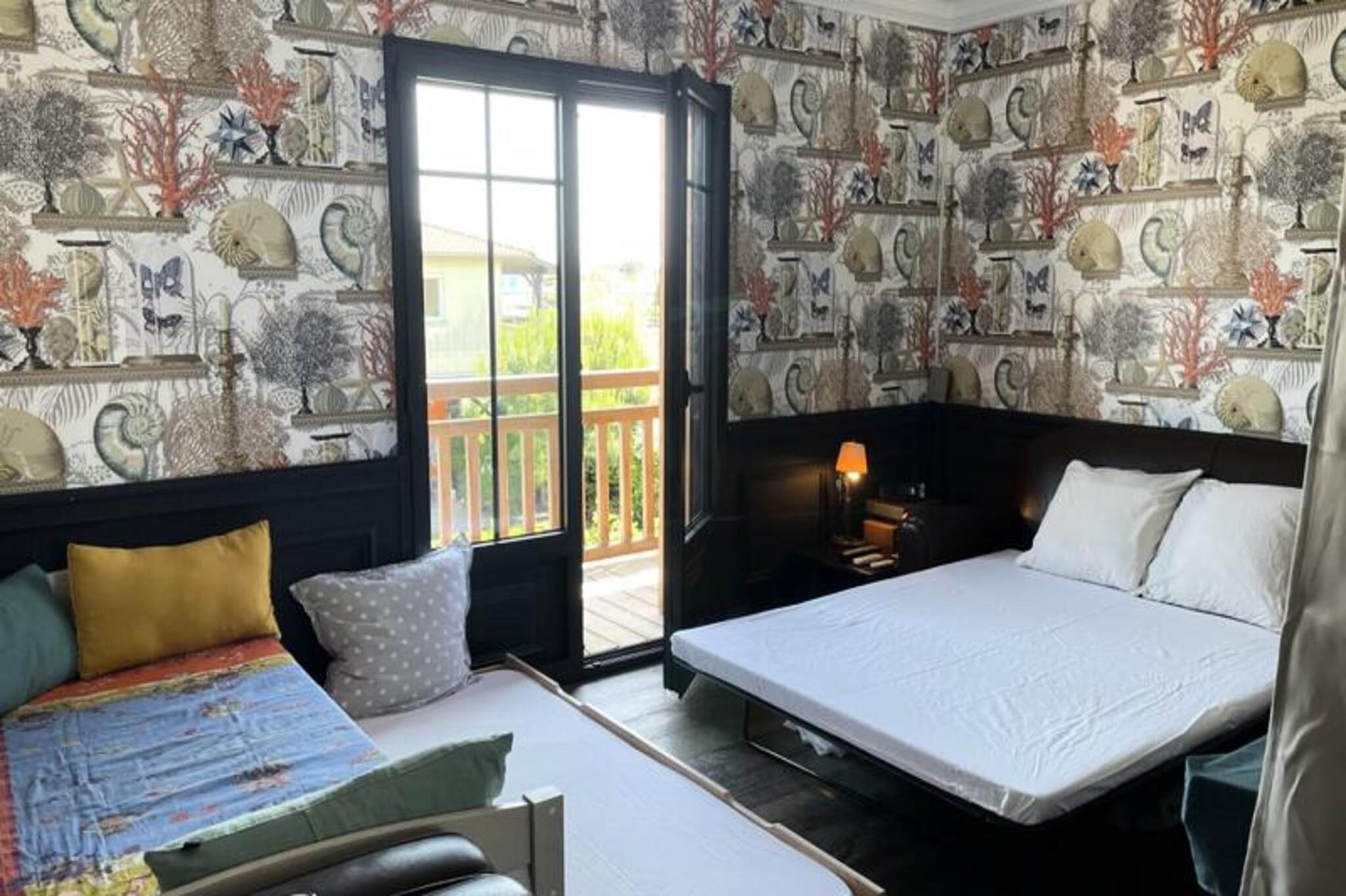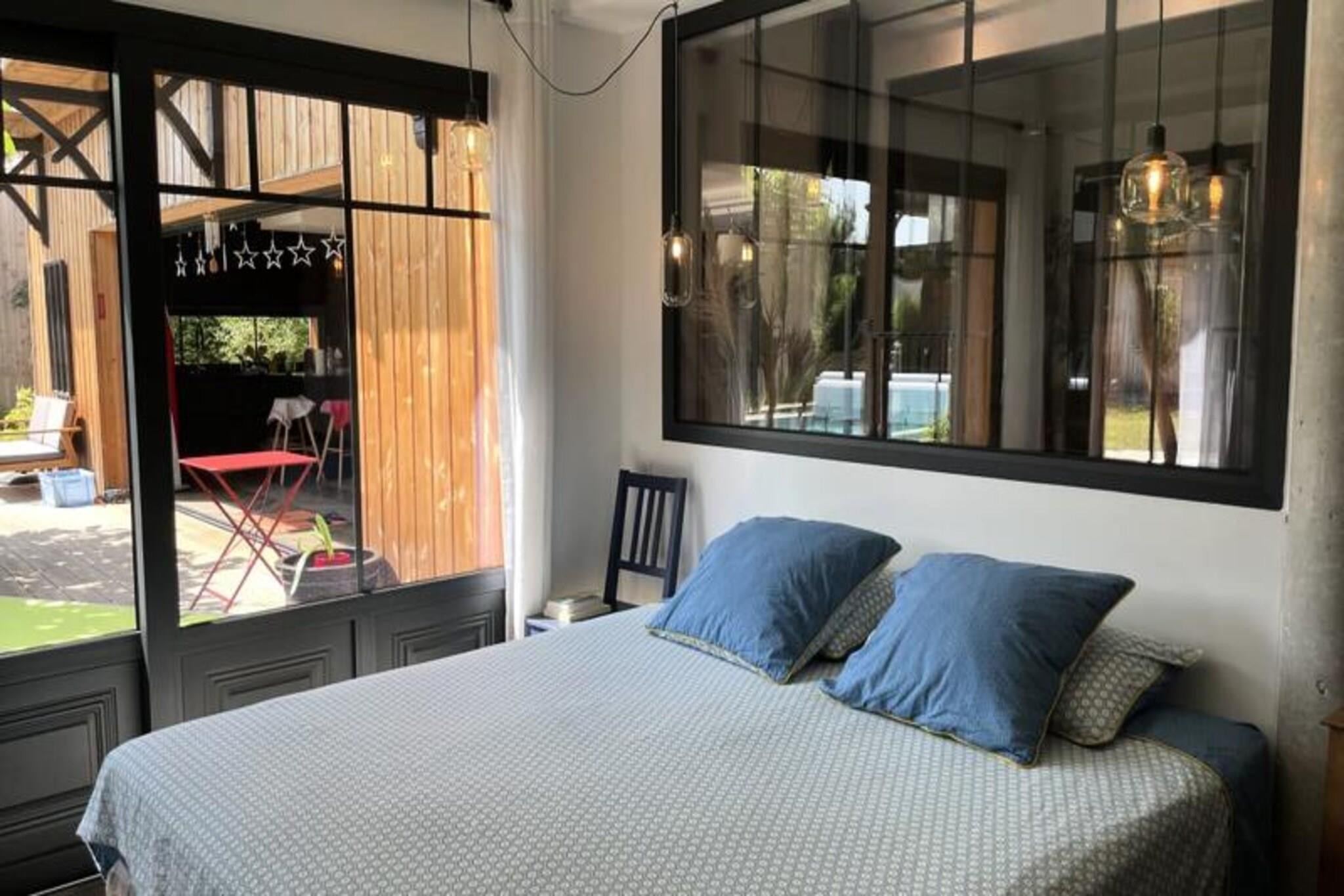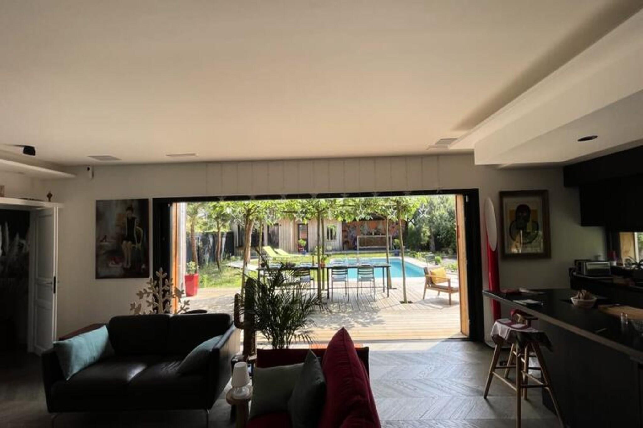 Magnificent recent villa of 200m2, fully equipped and ideally located for holidays with family or friends. Our haven of peace offers a privileged central location. : àgrav; only 5 minutes drive from the market de la Teste, at 10 minutes from Arcachon with its famous promenade, its calm beaches and its shops, as well as the coastal path, and 10 minutes from Arcachon. 15 minutes from the majestic Dune du Pilat, with an additional short journey to access the ocean beaches. The villa stands out for its 4 beautiful bedrooms (plus a dormitory that can accommodate 4 people, ideal for children or teenagers, which can also be used as a cinema room), its salt-heated swimming pool with roller shutter, its equipped pétanque court, its summer kitchen and its air conditioning. On two levels, on the ground floor, you will find an entrance, a large living room/dining room. open plan dining/kitchen opening onto the terrace, garden and swimming pool. A master suite with a king-size bed (180 cm) and a large private bathroom, as well as a laundry room with washing machine, dryer and guest WC are also available. A second bedroom with a queen-size bed (160 cm) and private bathroom is located in the garden, next to the garden. proximity of the summer kitchen fully equipped (with refrigerator, sink and bar). À Upstairs, two bedrooms with private bathrooms are available, one with a double bed (140 cm) and the other with either two single beds (90 cm each) or a double bed (180 cm). cm), depending on your preferences. Please specify when booking. The dormitory/cinema room has a sofa bed (140 cm) and a trundle bed (2x90 cm), providing 4 additional beds. All rooms the floor as well as the dormitory give access to the terrace. a balcony terrace offering a breathtaking view of the swimming pool and the garden. The 4 bathrooms are equipped with large showers and WC. The kitchen is fully equipped with modern appliances (induction hobs, two ovens including one mixed with microwave, dishwasher, refrigerator, freezer) and Wi-Fi. Fiber Fi available throughout the house and garden. Parking for two cars is available on the property. Sheets, towels and concierge service are included in the price. Summary of rooms: Master suite on the ground floor: 1 king-size bed (180 cm) Bedroom in the garden: 1 queen-size bed (160 cm) Bedroom on the 1st floor: 1 double bed (140 cm) Bedroom on the 2nd floor: 2 single beds (90 cm each) or 1 double bed (180 cm), each Please specify when booking. DEPOSIT A bank footprint of 3000€ You will be asked as part of the rental. Managed by the online and secure service. Swikly, it is obligatory and must be carried out before arrival in the accommodation. The amount is neither blocked nor withdrawn. and does not impact the usage limits of your bank card. Within 7 days following your departure, and subject to compliance with the general conditions of sale, as well as restitution of the property. in perfect condition, this operation is automatically canceled. EXCHANGES WITH TRAVELERS Solène, a native of the region, will welcome you to her home. welcome your arrival and will be able to respond to your needs. all your expectations during your stay! Deposit (in euros) - 3000