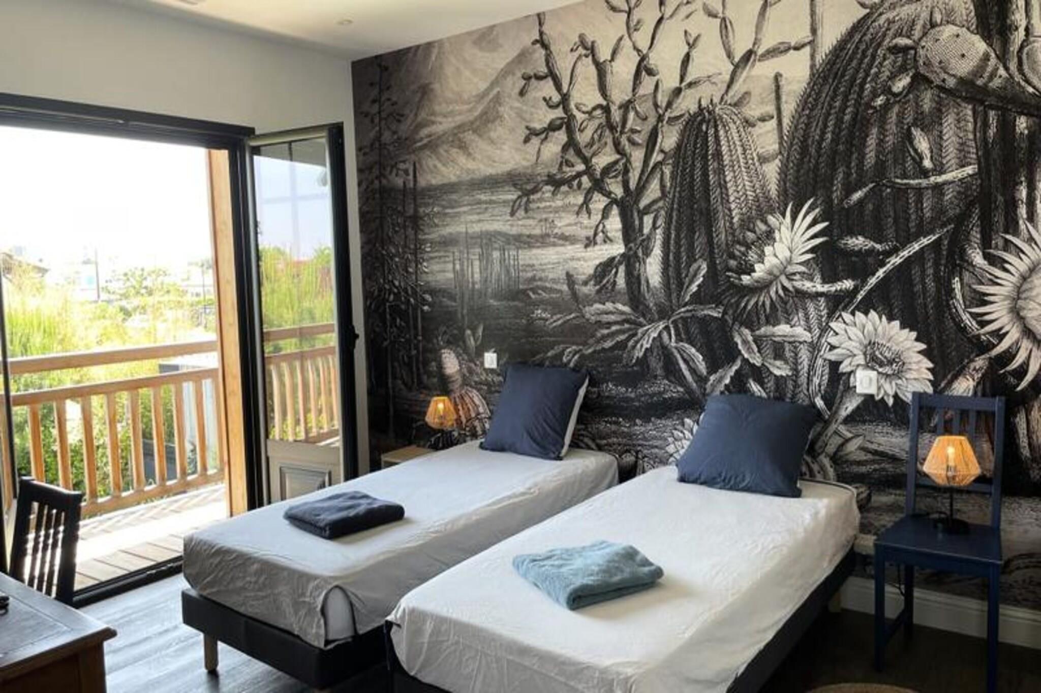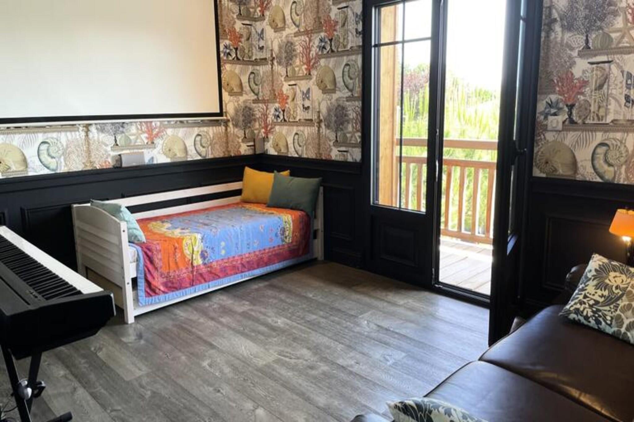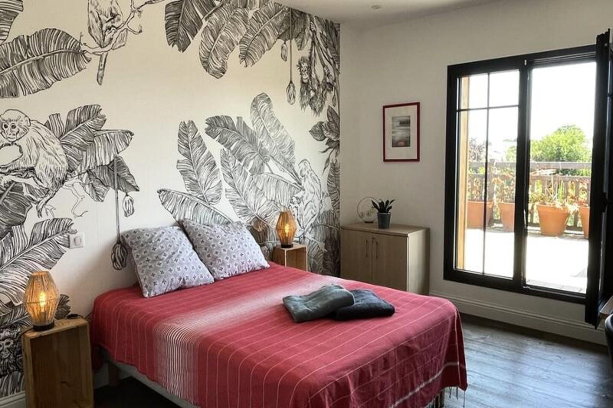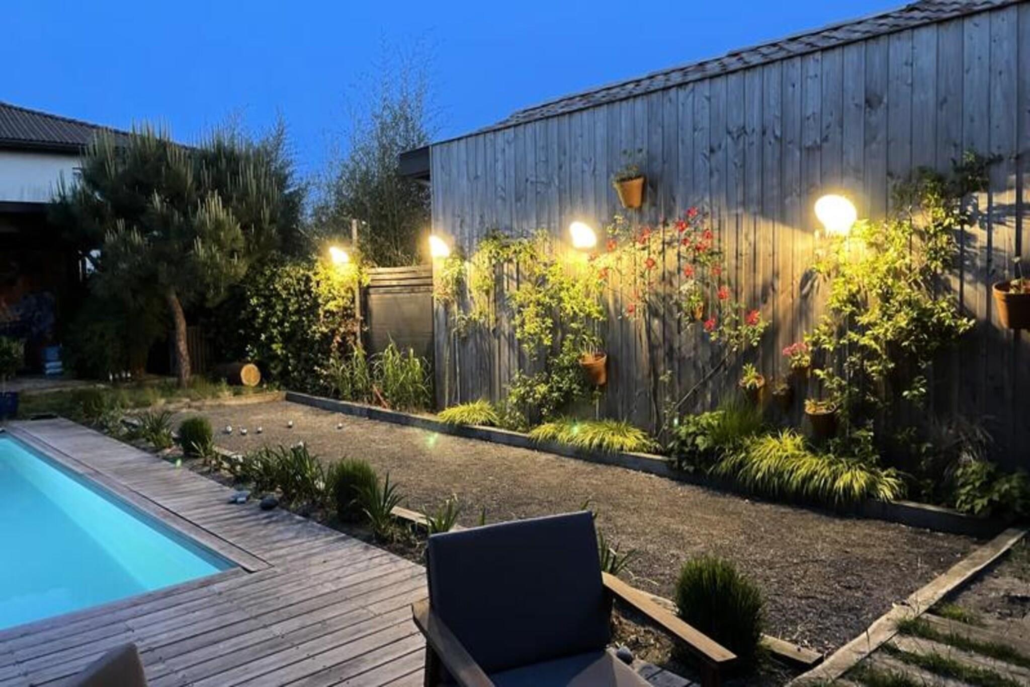 Magnificent recent villa of 200m2, fully equipped and ideally located for holidays with family or friends. Our haven of peace offers a privileged central location. : àgrav; only 5 minutes drive from the market de la Teste, at 10 minutes from Arcachon with its famous promenade, its calm beaches and its shops, as well as the coastal path, and 10 minutes from Arcachon. 15 minutes from the majestic Dune du Pilat, with an additional short journey to access the ocean beaches. The villa stands out for its 4 beautiful bedrooms (plus a dormitory that can accommodate 4 people, ideal for children or teenagers, which can also be used as a cinema room), its salt-heated swimming pool with roller shutter, its equipped pétanque court, its summer kitchen and its air conditioning. On two levels, on the ground floor, you will find an entrance, a large living room/dining room. open plan dining/kitchen opening onto the terrace, garden and swimming pool. A master suite with a king-size bed (180 cm) and a large private bathroom, as well as a laundry room with washing machine, dryer and guest WC are also available. A second bedroom with a queen-size bed (160 cm) and private bathroom is located in the garden, next to the garden. proximity of the summer kitchen fully equipped (with refrigerator, sink and bar). À Upstairs, two bedrooms with private bathrooms are available, one with a double bed (140 cm) and the other with either two single beds (90 cm each) or a double bed (180 cm). cm), depending on your preferences. Please specify when booking. The dormitory/cinema room has a sofa bed (140 cm) and a trundle bed (2x90 cm), providing 4 additional beds. All rooms the floor as well as the dormitory give access to the terrace. a balcony terrace offering a breathtaking view of the swimming pool and the garden. The 4 bathrooms are equipped with large showers and WC. The kitchen is fully equipped with modern appliances (induction hobs, two ovens including one mixed with microwave, dishwasher, refrigerator, freezer) and Wi-Fi. Fiber Fi available throughout the house and garden. Parking for two cars is available on the property. Sheets, towels and concierge service are included in the price. Summary of rooms: Master suite on the ground floor: 1 king-size bed (180 cm) Bedroom in the garden: 1 queen-size bed (160 cm) Bedroom on the 1st floor: 1 double bed (140 cm) Bedroom on the 2nd floor: 2 single beds (90 cm each) or 1 double bed (180 cm), each Please specify when booking. DEPOSIT A bank footprint of 3000€ You will be asked as part of the rental. Managed by the online and secure service. Swikly, it is obligatory and must be carried out before arrival in the accommodation. The amount is neither blocked nor withdrawn. and does not impact the usage limits of your bank card. Within 7 days following your departure, and subject to compliance with the general conditions of sale, as well as restitution of the property. in perfect condition, this operation is automatically canceled. EXCHANGES WITH TRAVELERS Solène, a native of the region, will welcome you to her home. welcome your arrival and will be able to respond to your needs. all your expectations during your stay! Deposit (in euros) - 3000
