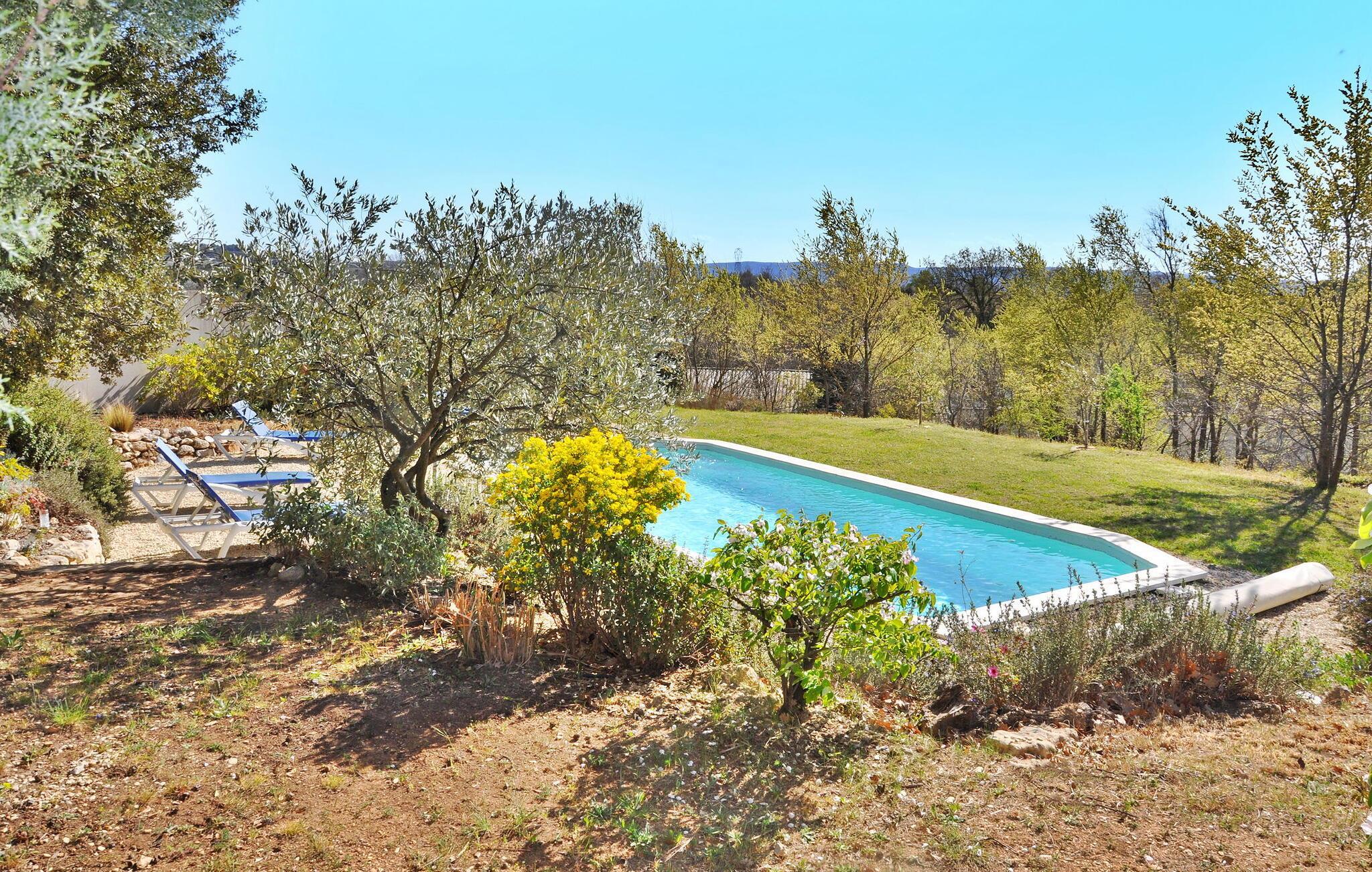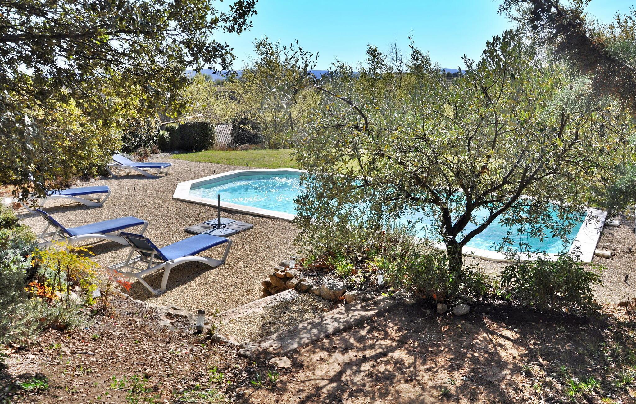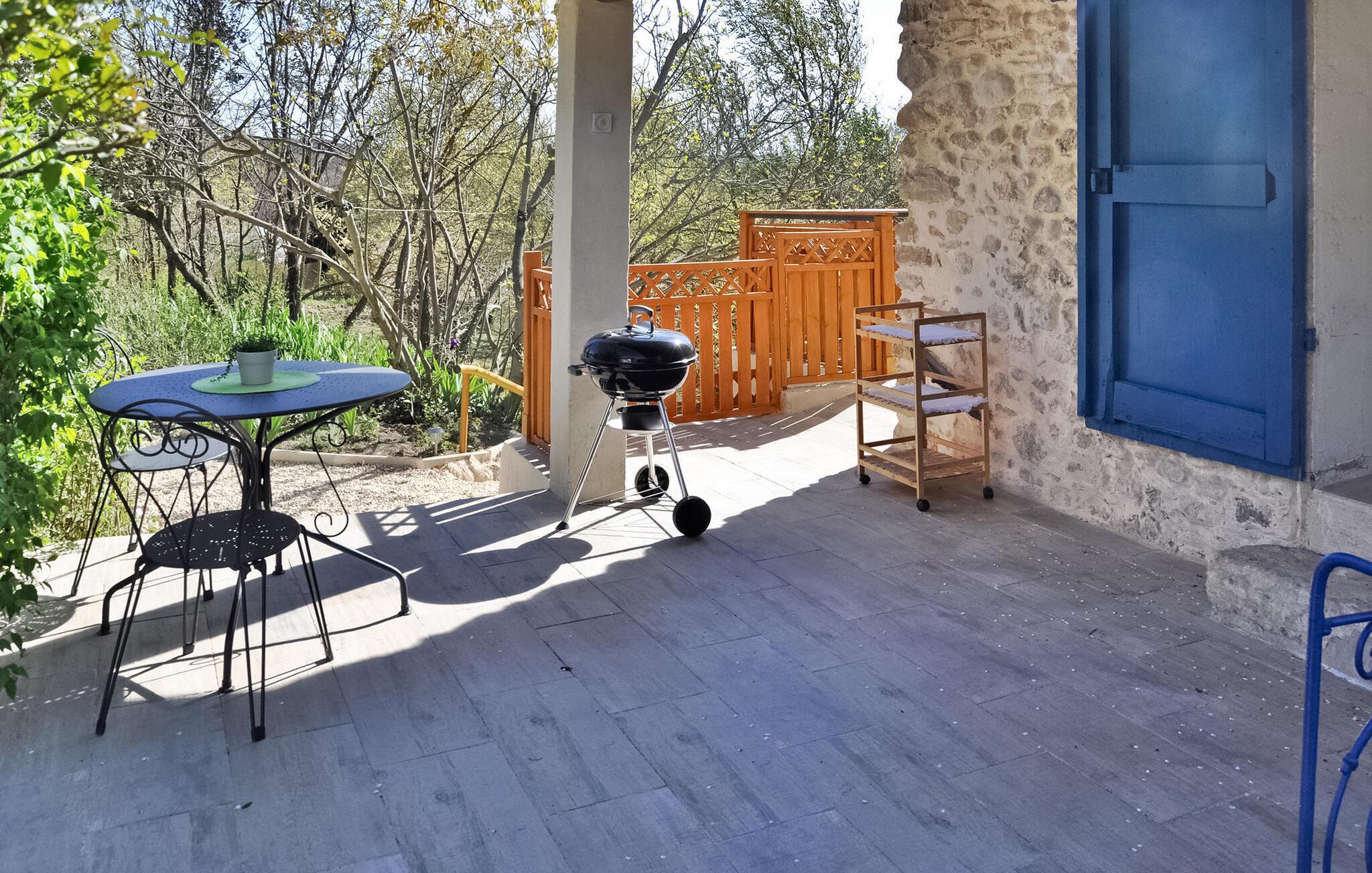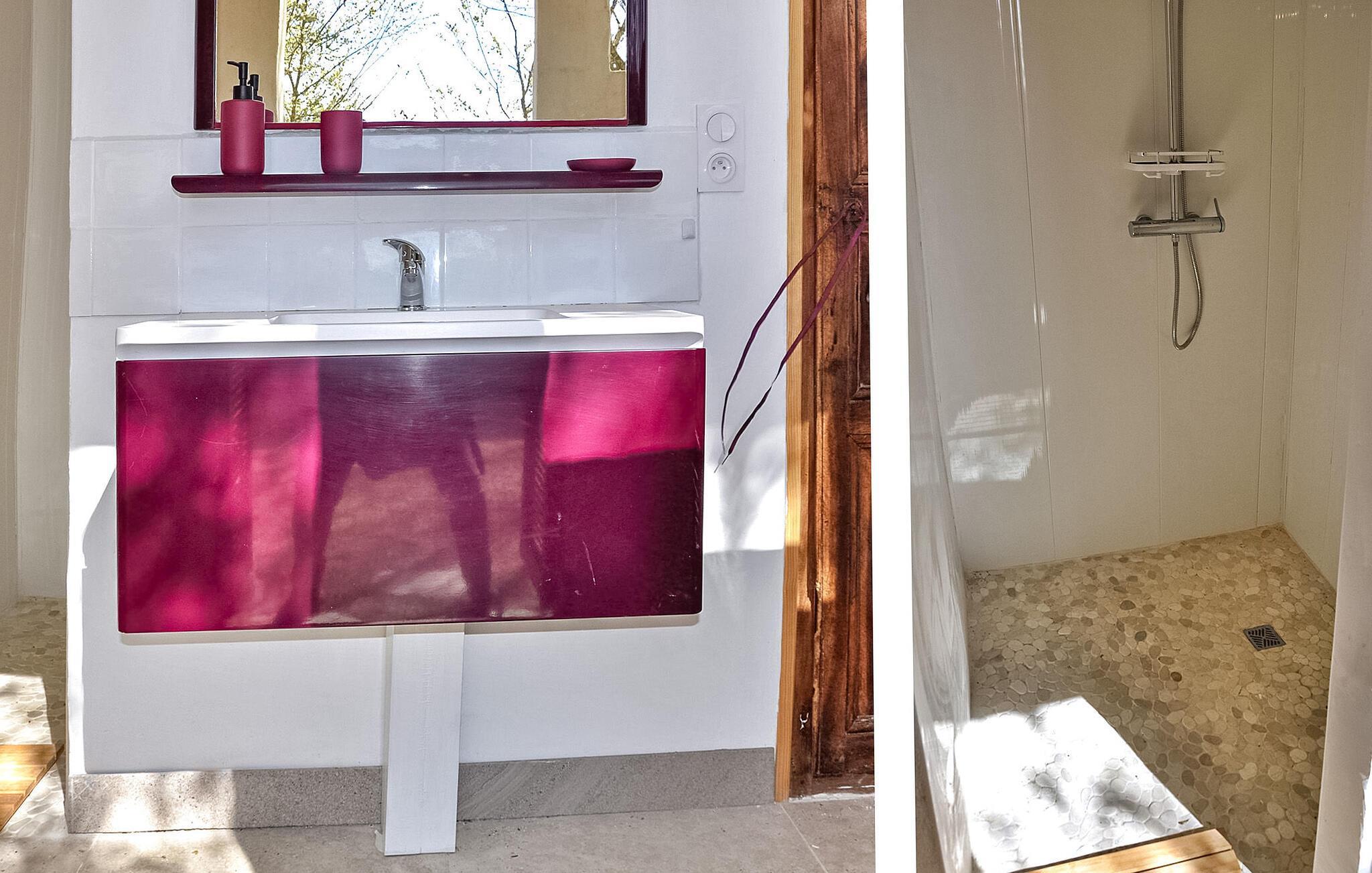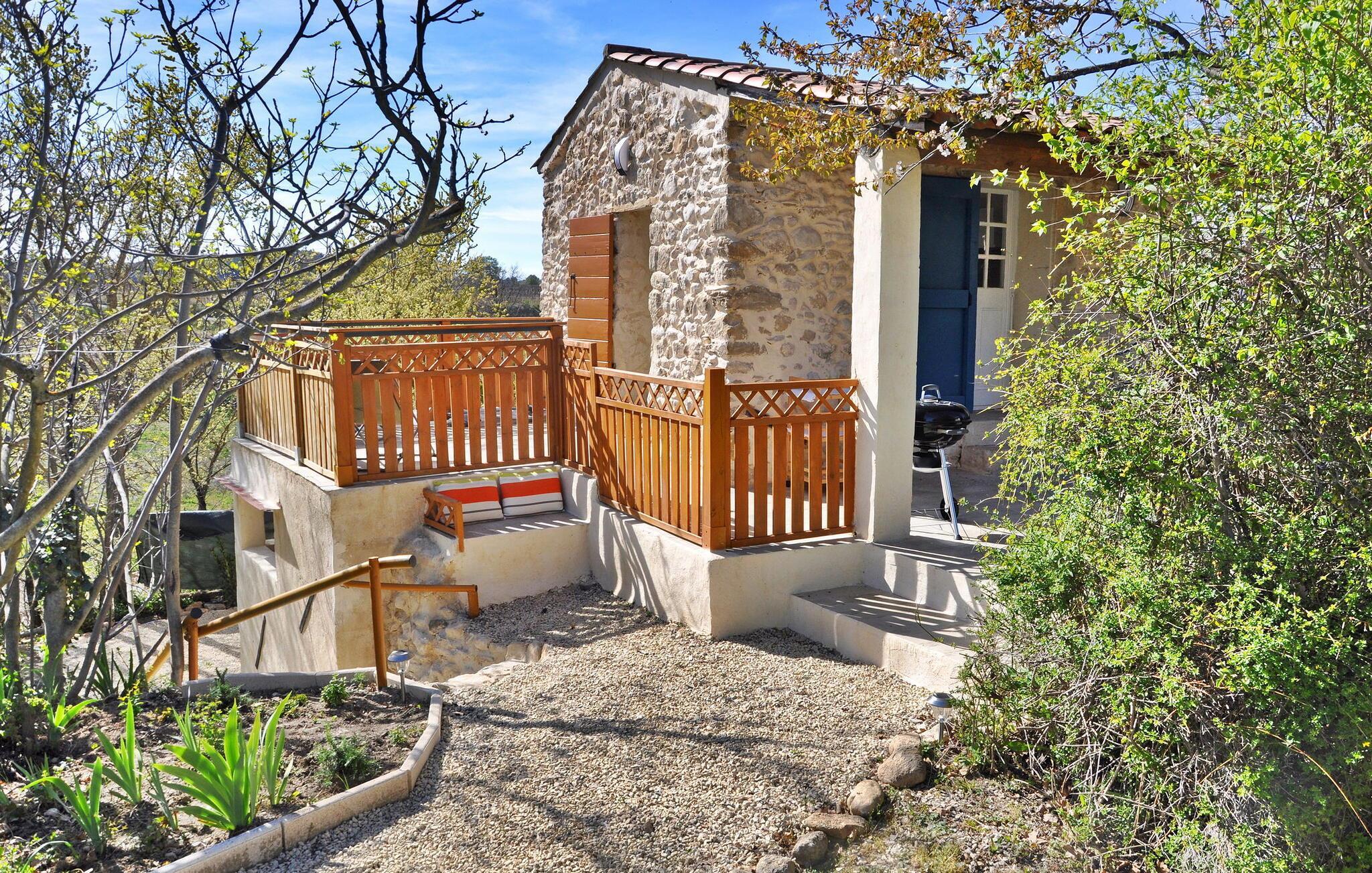 Das Ferienhaus in La Tour d'Aigues liegt auf einem Privatgrundstück in der Nähe des Dorfzentrums. Dieses romantische Refugium umfasst einen Wohnbereich mit einem Schlafsofa auf der Gartenebene und eine von außen zugängliche untere Ebene mit Schlafzimmer, Duschbad und WC. Draußen gibt es eine Terrasse mit Sitzgelegenheiten und einem Grill sowie einen Gemeinschaftspool mit Sonnenliegen. Das Grundstück erstreckt sich über 7000 m², wobei ca. 2500 m² für die Vermietung vorgesehen sind. Gäste haben Zugang zum Swimmingpool, der gelegentlich von den Eigentümern genutzt wird, die in einer separaten Villa vor Ort wohnen, die etwa 30 Meter entfernt liegt. Das Anwesen besteht aus dem Ferienhaus und der unabhängigen Villa der Eigentümer, etwa 1 km vom Dorfzentrum von La Tour d'Aigues entfernt, wo Sie alle örtlichen Geschäfte finden. La Tour d'Aigues liegt im Herzen der Provence. Das Dorf ist von weiten kultivierten Ebenen und Weinbergen umgeben, die einen berühmten Wein produzieren. Sie werden auch das große Renaissanceschloss entdecken. Erleben Sie ein authentisches französisches Ferienhaus im Vaucluse in der Provence.