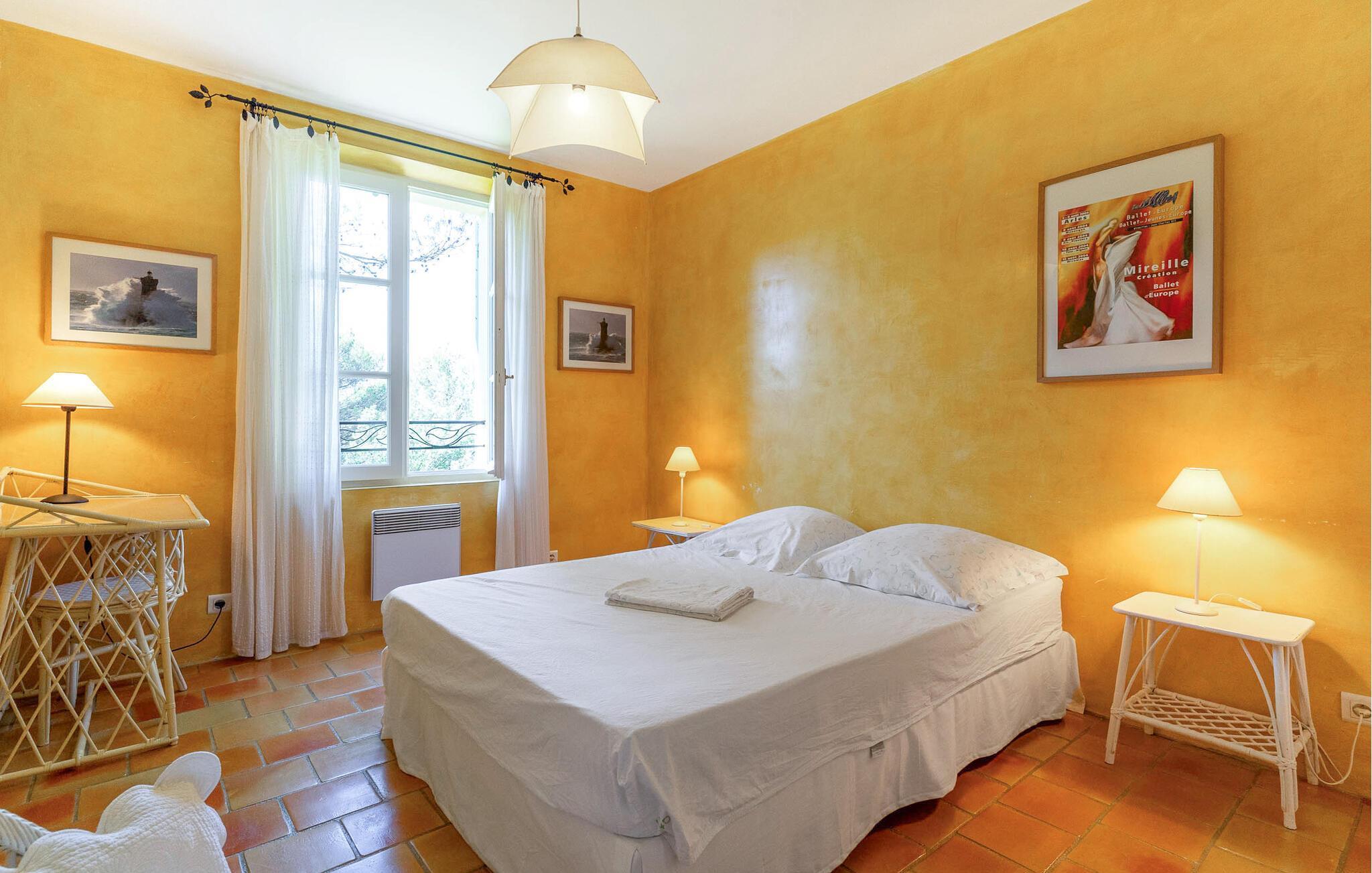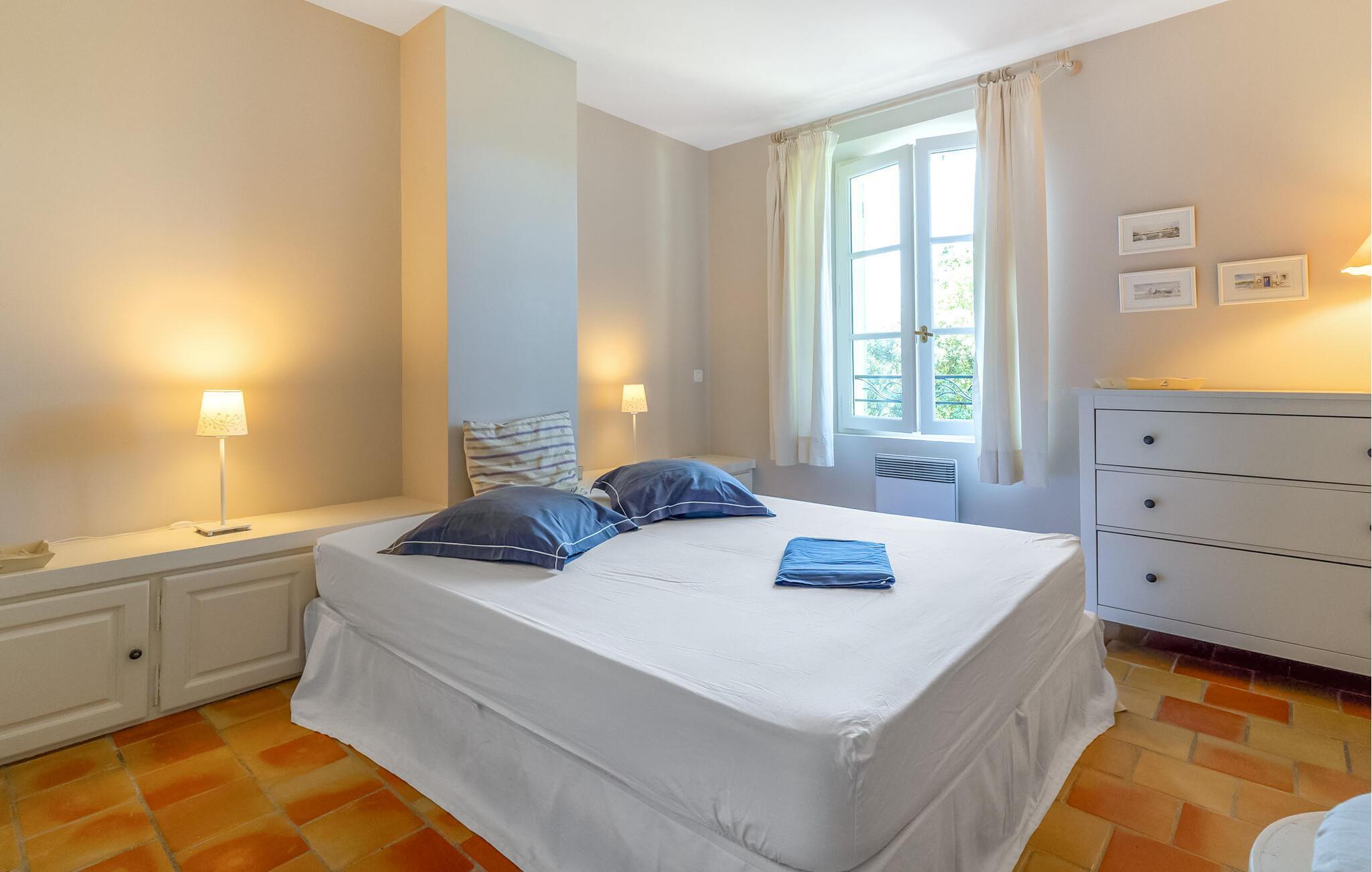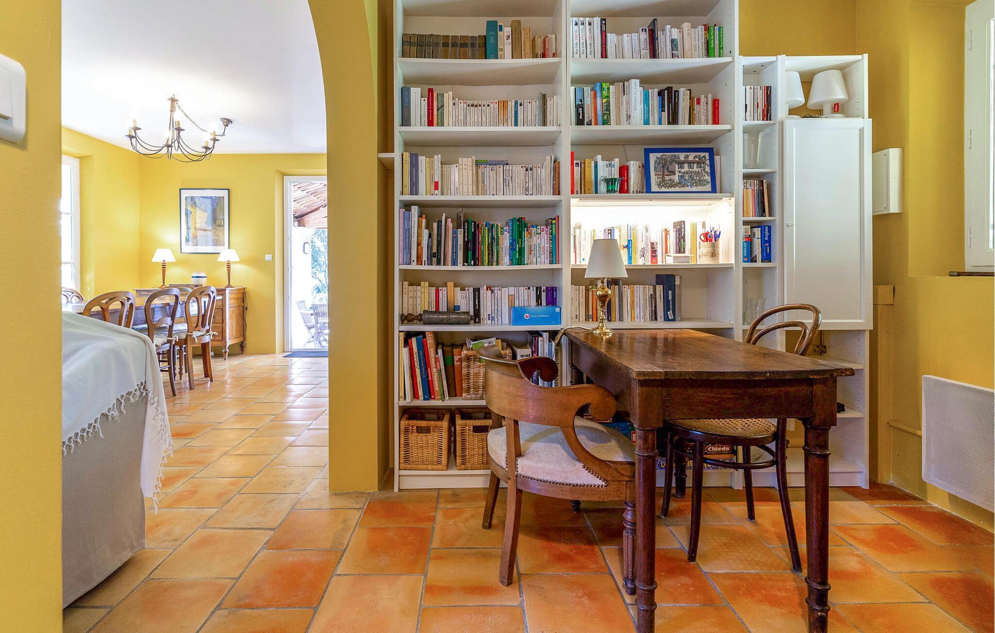Dieses charmante provenzalische Ferienhaus in La Tour-d'Aigues ist ein perfekter Rückzugsort für alle, die Ruhe und Entspannung in der Provence suchen. Die großzügigen Innenräume sind geschmackvoll eingerichtet und bieten einen einladenden Wohnbereich mit offener Küche. Genießen Sie die fröhlichen Farben und die klassischen Holzmöbel, die es Ihnen einfach machen, sich auf den zwei Etagen zu entspannen und erholt Ihrem Ferienalltag nachzugehen.