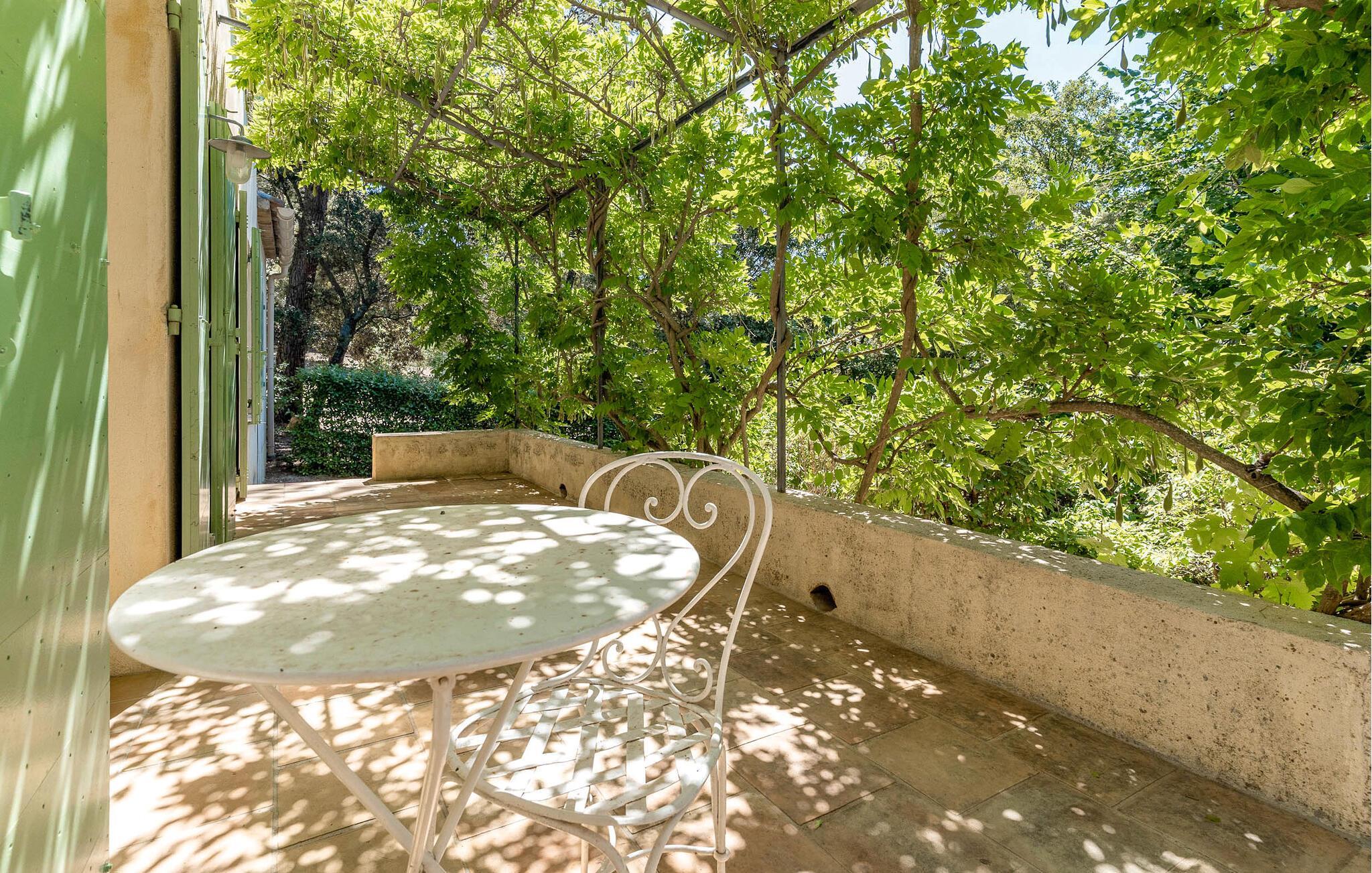 Umgeben von Pinien und Steineichen, lädt es Sie ein, die friedliche Atmosphäre zu genießen. Auf den verschiedenen Terrassen können Sie sowohl den Duft der Glyzinien als auch den herrlichen Blick auf die Landschaft genießen. Der private, geflieste Pool ist ideal, um die heißen Sommertage zu verbringen und befindet sich unterhalb des Hauses. Der Pool verfügt über eine Alarmanlage, ist aber nicht durch einen Zaun gesichert. Er ist daher nicht für Personen und Kinder geeignet, die nicht schwimmen können.