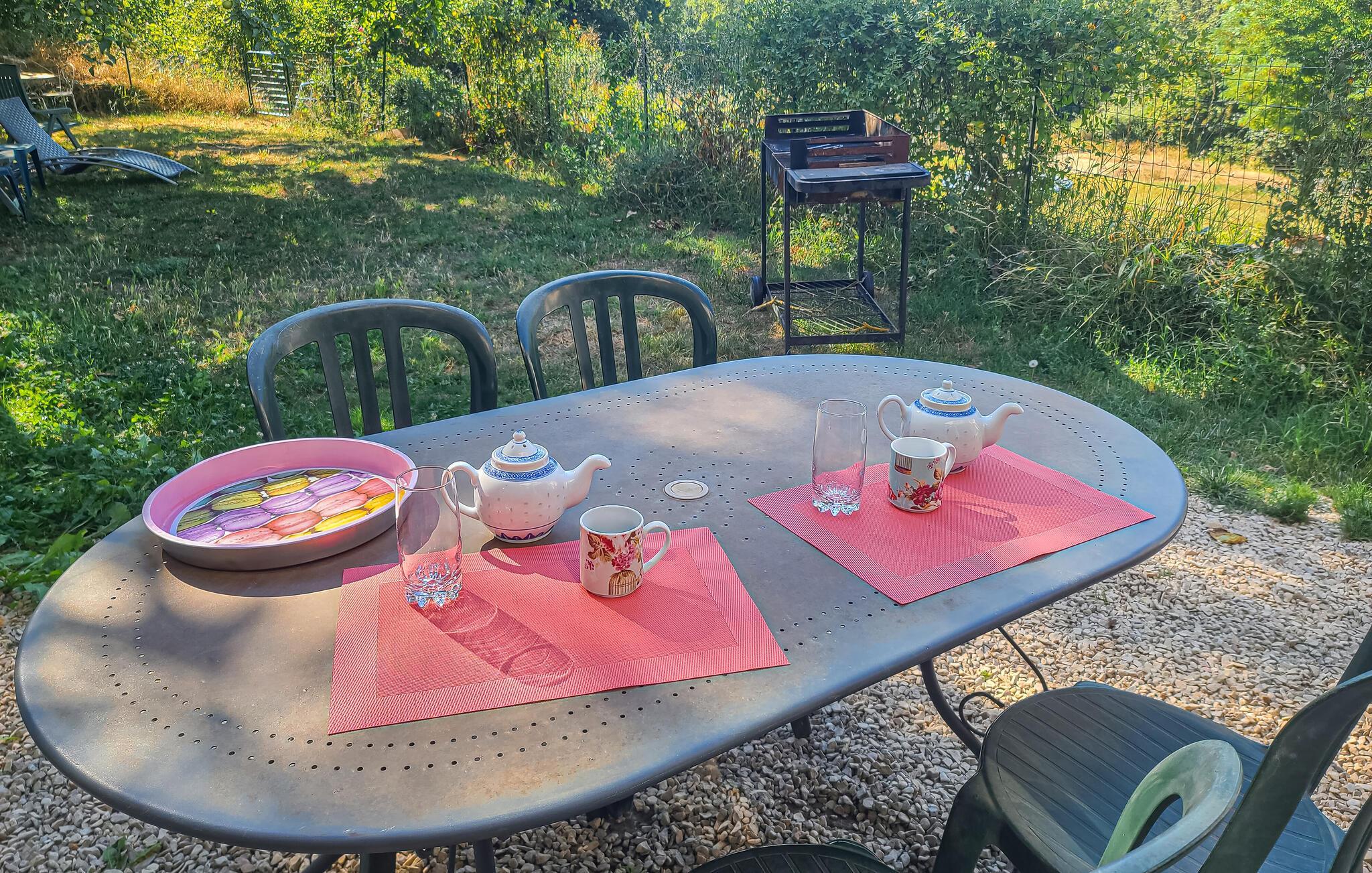 Ihr eingezäunter Garten birgt lauschige Plätze zum Speisen, Plaudern und Entspannen im Schatten. Erfrischen Sie sich im schönen Gemeinschaftspool, spielen Sie Boule und freuen Sie sich auf stimmungsvolle Abende am Grill.