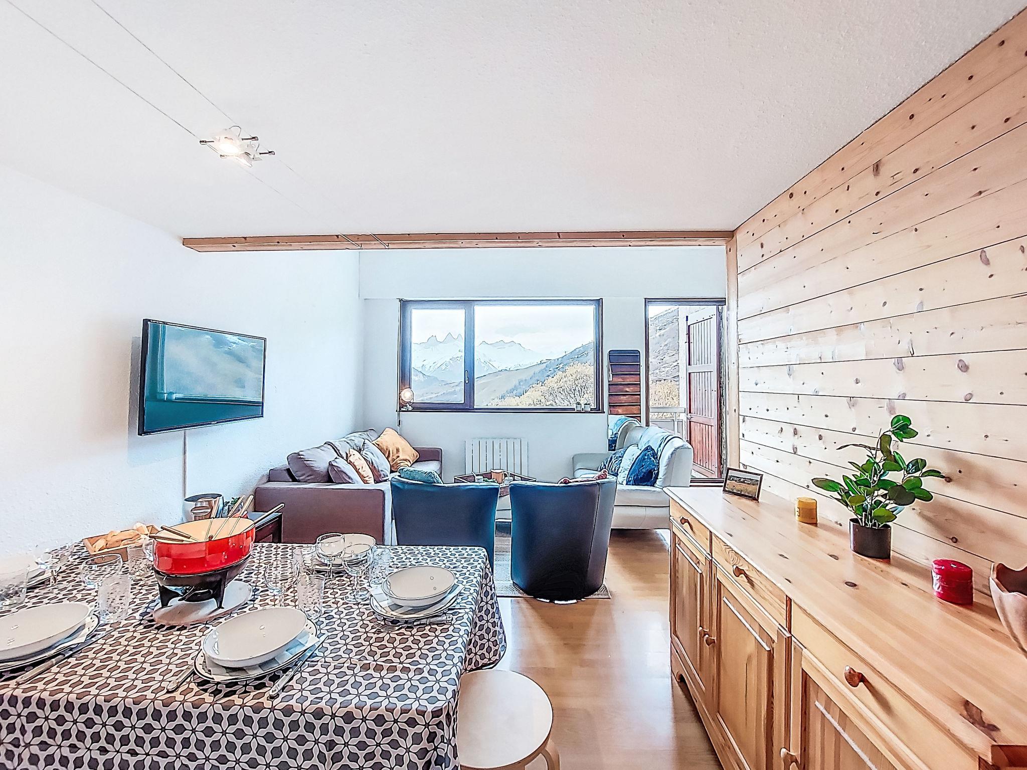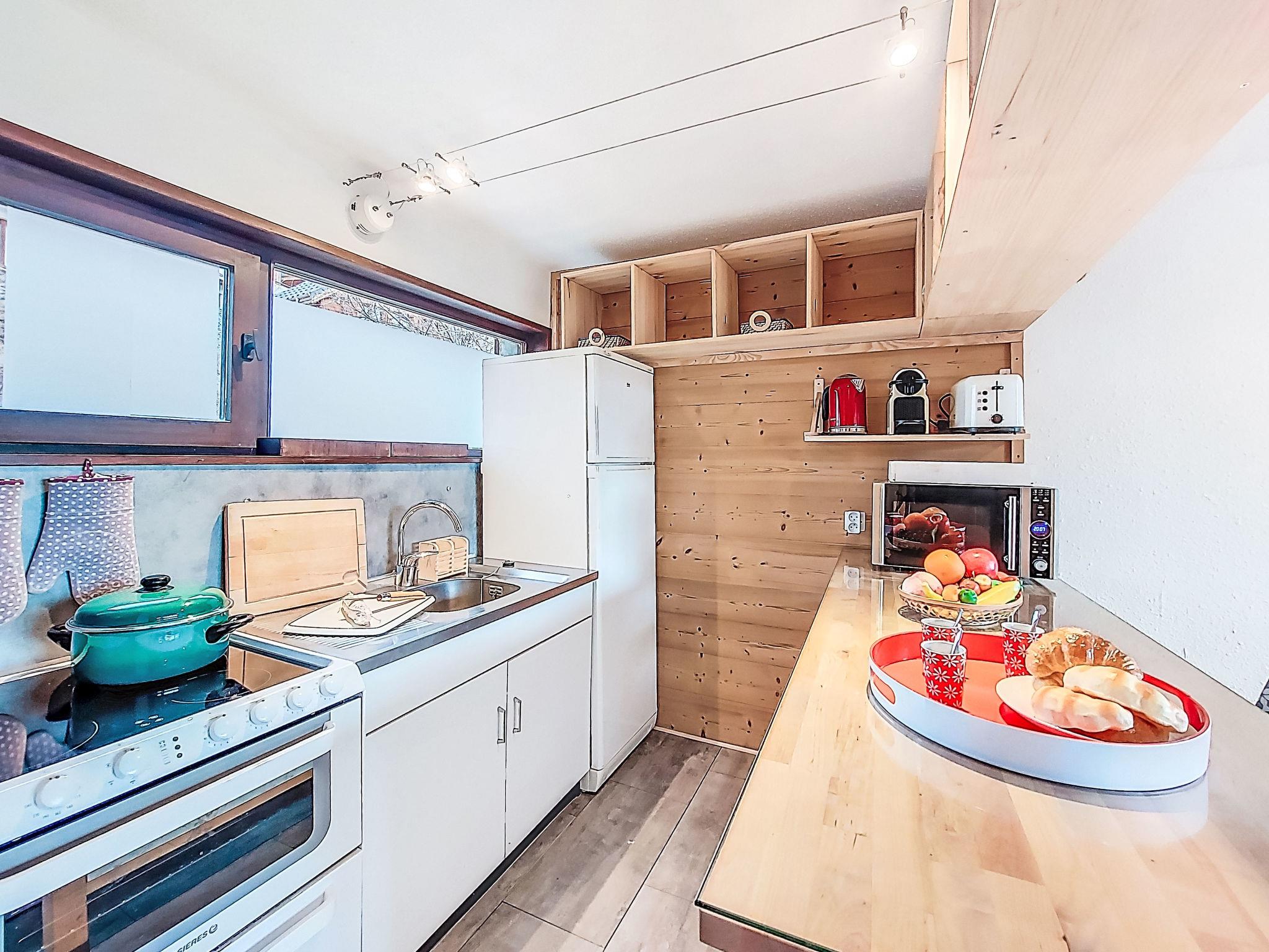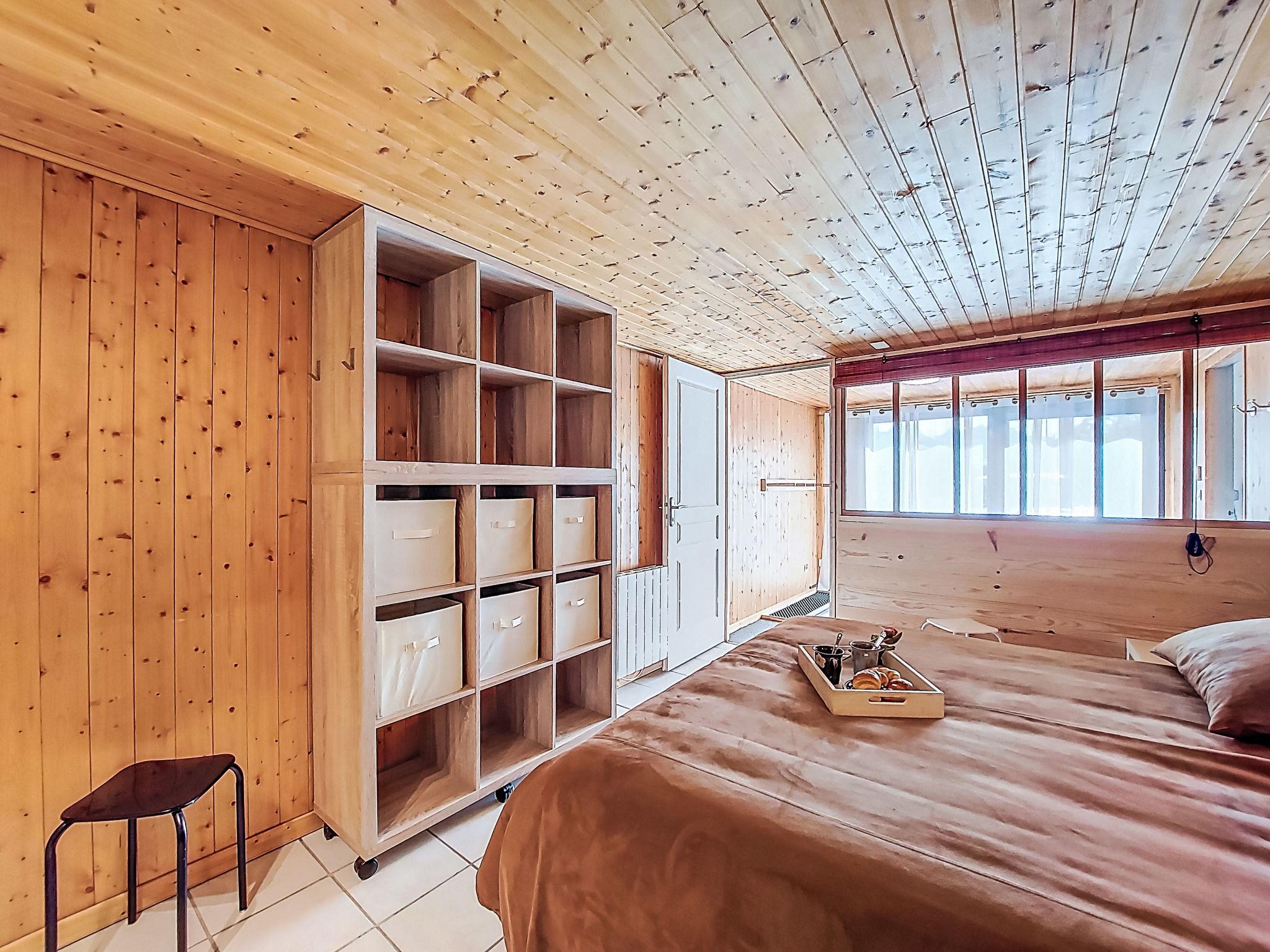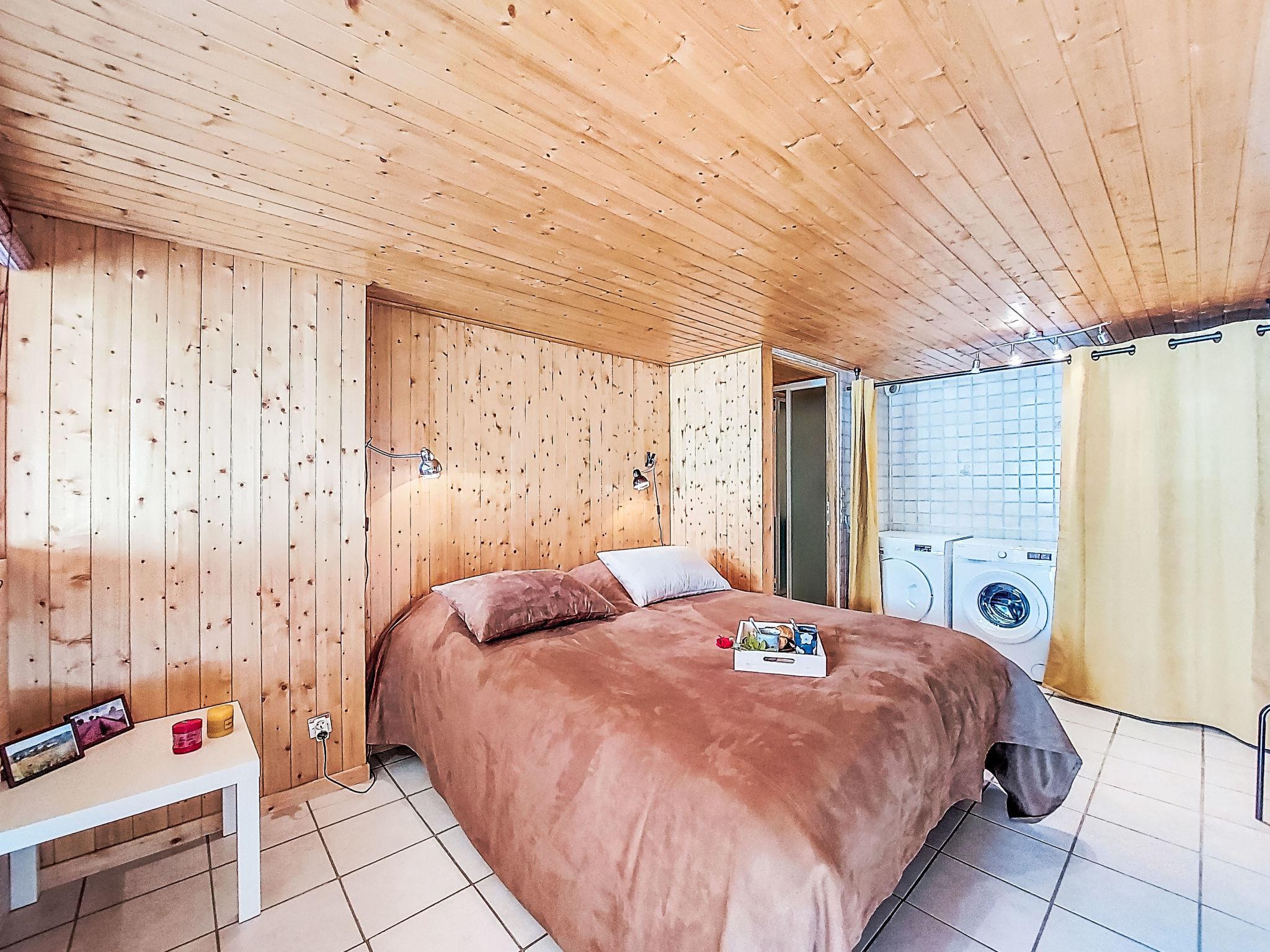 "LA COMBE AUX OURS", 4-room apartment 90 m2 on 3 levels on 1st floor, south-east facing position. Comfortable furnishings: living/dining room with TV (flat screen). Exit to the balcony. Kitchen-/living room (oven, dishwasher, 4 ceramic glass hob hotplates, toaster, kettle, microwave, freezer, electric coffee machine, Capsules for coffee machine (NESPRESSO) extra, raclette grill, fondue Set (cheese)) with bar. Sep. WC. On the lower ground floor: 1 room with 1 french bed (1 x 160 cm, length 190 cm), shower/WC. Upper floor: 1 room with 1 french bed (1 x 160 cm, length 190 cm). 1 room with 1 x 2 bunk beds (80 cm, length 190 cm). Shower/WC. Parquet floors. Balcony 6 m2, south-east facing position. Balcony furniture. Marvellous view of the mountains. Facilities: washing machine, dryer, baby cot for up to 2 year olds, hair dryer. Parking space n 5 (1 car). Please note: 1 pet/ dog allowed. Smoke alarm. Offer by a private individual according to Art. 155, IV of CGI.