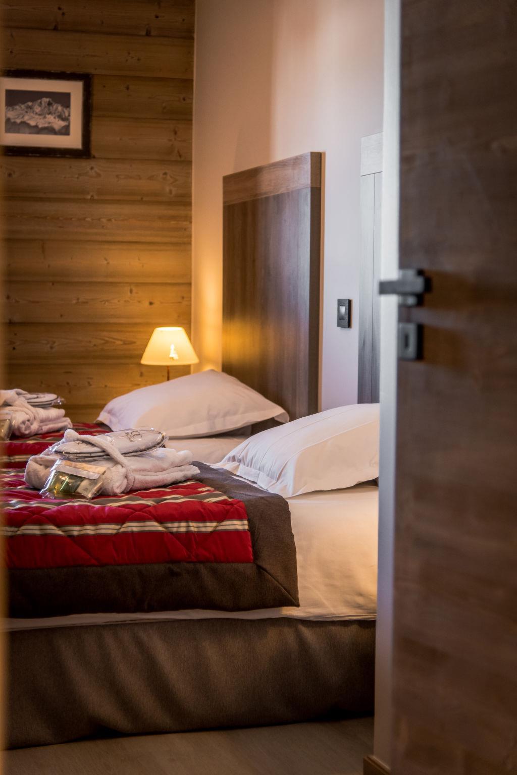 "Résidence Boutique CGH L'Alpaga 5*", 4-room apartment 70 m2. Beautiful and modern furnishings: living/sleeping room with 1 double sofabed and satellite TV. Exit to the balcony. 1 room with 1 french bed. 2 rooms, each room with 2 beds. Open kitchen (oven, dishwasher, 4 ceramic glass hob hotplates, toaster, kettle, electric coffee machine). 2 showers/WC. Balcony or terrace. Facilities: hair dryer. Internet (WiFi). Please note: maximum 1 pet/ dog allowed. Smoke alarm, fire extinguisher. This type of apartment can also be created on two levels.