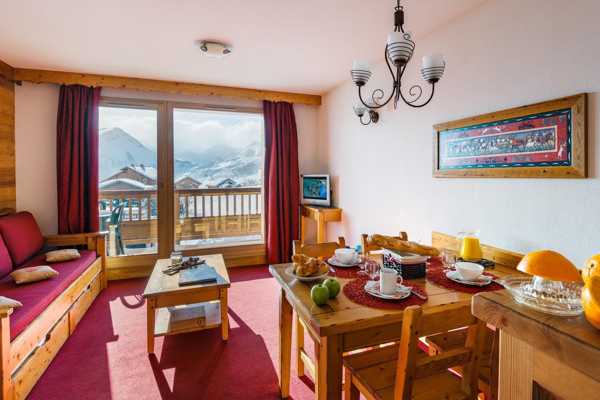 Comfortable Alpine Stay Set in the heart of La Toussuire, this spacious three-room apartment offers a welcoming base for up to six guests. The interior combines practicality with warmth, featuring a bright living room with a sofa bed and TV, a modern kitchenette with a ceramic cooker, microwave, and dishwasher, plus two separate bedrooms with twin beds. A private balcony invites you to take in the crisp mountain air, while the shared heated indoor pool provides a relaxing space after a day outdoors. Ideal Mountain Location The apartment sits just steps from the village center, where ski shops, cafés, and bakeries bring local life to your doorstep. The ski slopes of the Northern Alps are close by, making it easy to start your day on the pistes. For summer visitors, nearby hiking and cycling trails provide access to stunning alpine landscapes. Guests also benefit from convenient on-site facilities such as ski storage and shared wellness spaces, ensuring comfort year-round. Dining and Pet Activities La Toussuire offers a variety of dining experiences, from traditional Savoyard restaurants serving cheese specialties to casual bistros for hearty mountain meals. Since pets are welcome here, you can explore scenic walking routes together, including gentle village paths and alpine meadows perfect for an afternoon stroll. Many nearby cafés even welcome four-legged friends, making it easy to enjoy local flavors without leaving your pet behind.