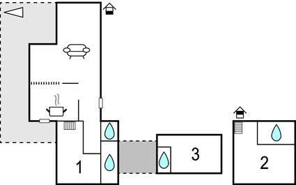 Badezimmer (nr. 2) - WC. Warmes und kaltes Wasser. Dusche