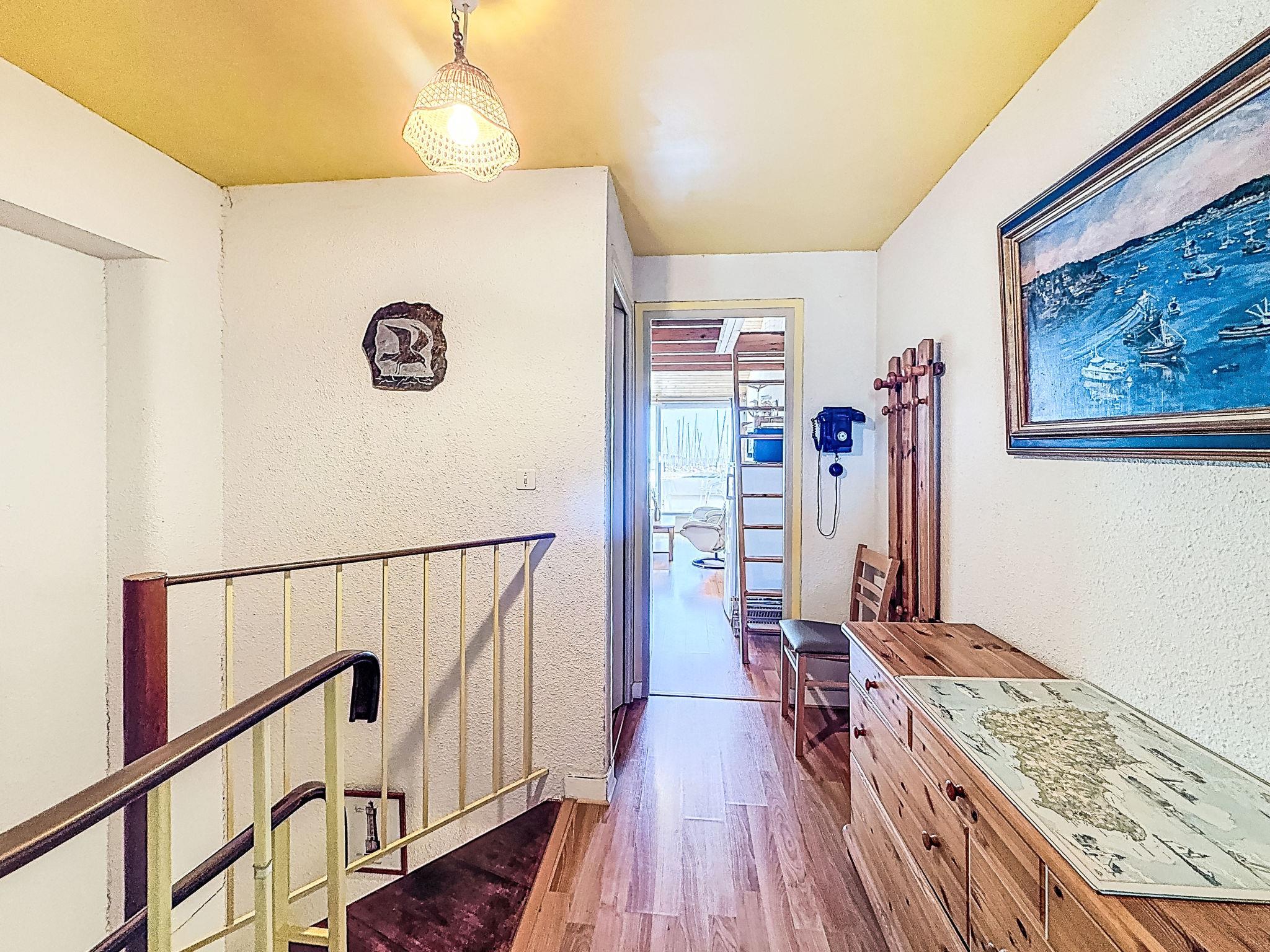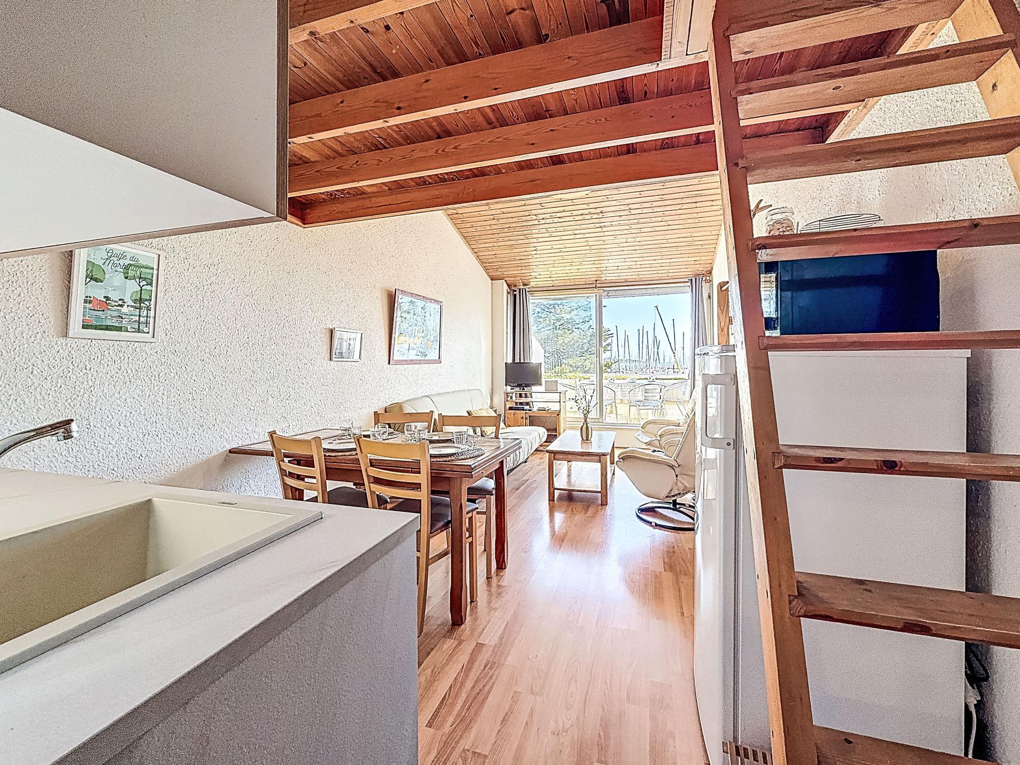 2-room apartment 45 m2 on 3 levels on 1st floor. Comfortable furnishings: 1 room with 1 bed (90 cm, length 190 cm), 1 x 2 bunk beds (90 cm, length 190 cm). Upper floor: (spiral staircase) living/dining room with TV (flat screen). Exit to the balcony. Open kitchen (2 induction hot plates, toaster, kettle, microwave, electric coffee machine). Shower, sep. WC. 2nd upper floor: (steep stair), 1 open small room with sloping ceilings with 1 french bed (1 x 140 cm, length 190 cm). Balcony 6 m2, south facing position. Balcony furniture. Partial view of the sea. Facilities: washing machine, iron, hair dryer. Internet (WiFi, free). Garage space n 14 (1 car). Please note: non-smokers only. Smoke alarm. Offer by a private individual according to Art. 155, IV of CGI. 56258000053LB