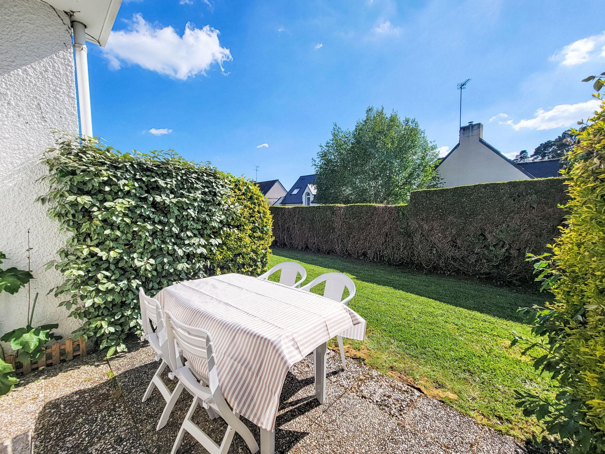 "Le Dolmen", 2-room apartment 34 m2, on the ground floor. Object suitable for 2 adults. Partly renovated in 2021, beautiful furnishings: living/dining room with TV (flat screen). Exit to the terrace. 1 room with 2 beds (80 cm, length 190 cm). Kitchenette (oven, 2 ceramic glass hob hotplates, microwave, electric coffee machine). Bathroom, sep. WC. Electric heating. Small terrace 6 m2. Terrace furniture. View of the garden. Facilities: washing machine, iron, hair dryer. Internet (WiFi, free). Parking (1 car). Please note: non-smokers only. Access to the narrow car park (standard vehicle). 56258000057AU