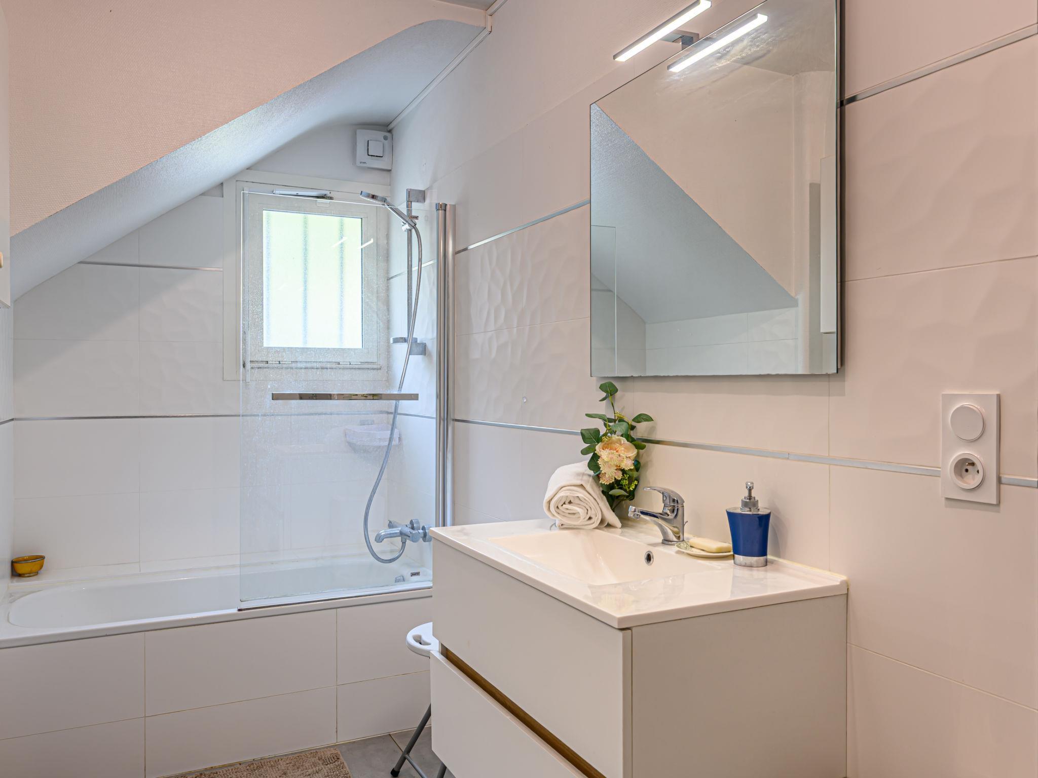 2-family house "Les Voiles". In the resort, 750 m from the centre, 50 m from the sea, 2.5 km from the beach. Private: property (fenced). Shop 500 m, grocery, supermarket 750 m, restaurant, bar 100 m, bakery 1 km, bus stop 200 m, sandy beach "Kerbihan" 2.5 km, thermal baths "Thalazur Carnac" 6000 km. Sports harbour 750 m, golf course (18 hole) 15 km, surf school 11 km, sailing school 1 km. Nearby attractions: Les Alignements de Carnac 5 km, Le Port de la Trinité-sur-mer 750 m, Presqu'île de Quiberon 15 km, Auray & Saint-Goustan 15 km, Vannes 25 km.