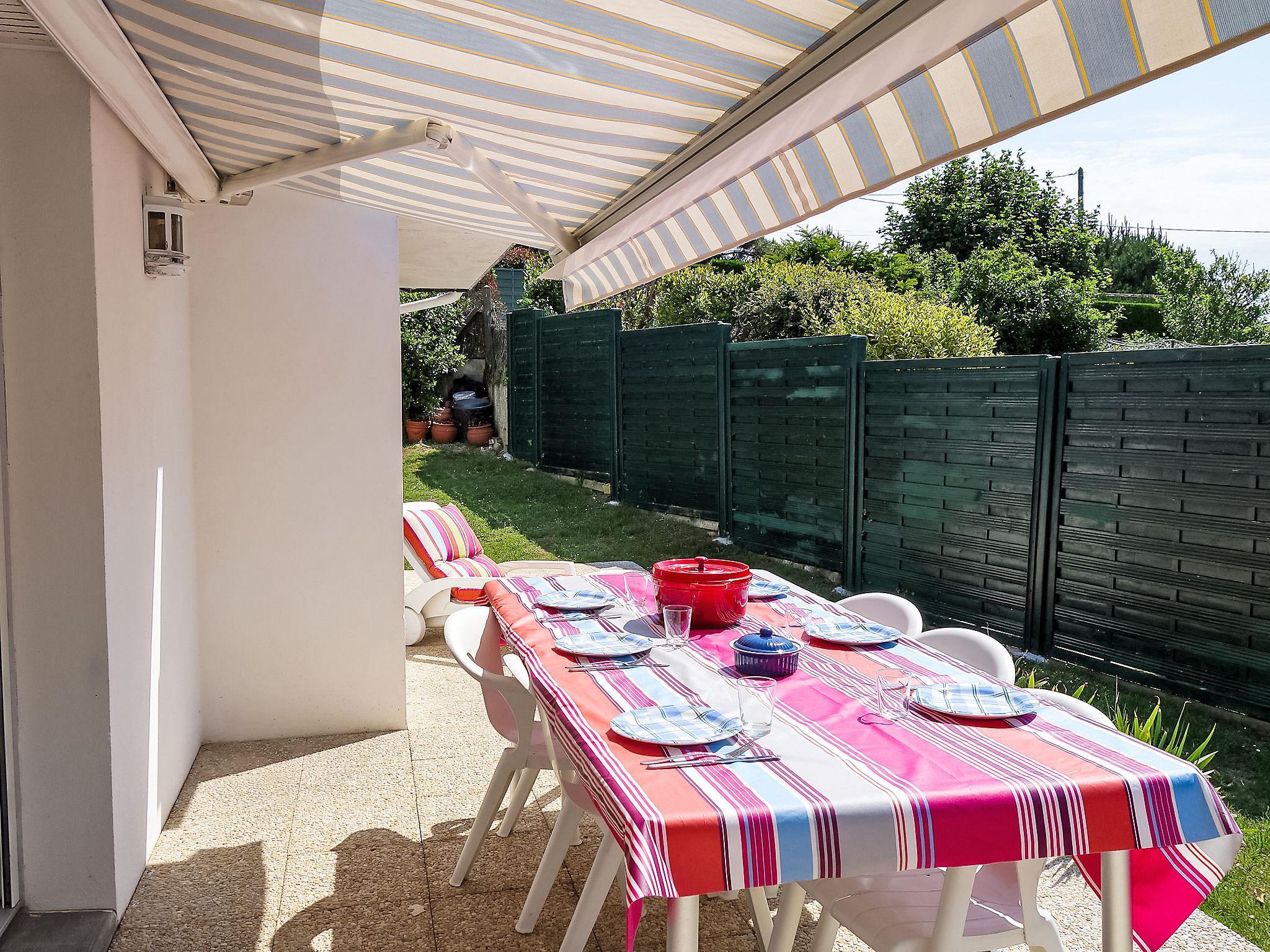 4-room house 82 m2 on 2 levels, east facing position. Beautiful furnishings: living/dining room with TV. Exit to the terrace. 1 room with 1 french bed (140 cm). Open kitchen (4 hot plates, oven, dishwasher, microwave, freezer, electric coffee machine, Capsules for coffee machine (Dosette Dolce Gusto) extra). Shower, sep. WC. Upper floor: 1 room with 2 beds (90 cm, length 200 cm). 1 room with 1 french bed (140 cm, length 190 cm). Bath/shower/WC. Electric heating. Terrace 22 m2 partly roofed. Terrace furniture, deck chairs (3). Facilities: washing machine. Internet (WiFi, free). Please note: maximum 1 pet/ dog allowed. TV only FR. Smoke alarm. 5625800024374