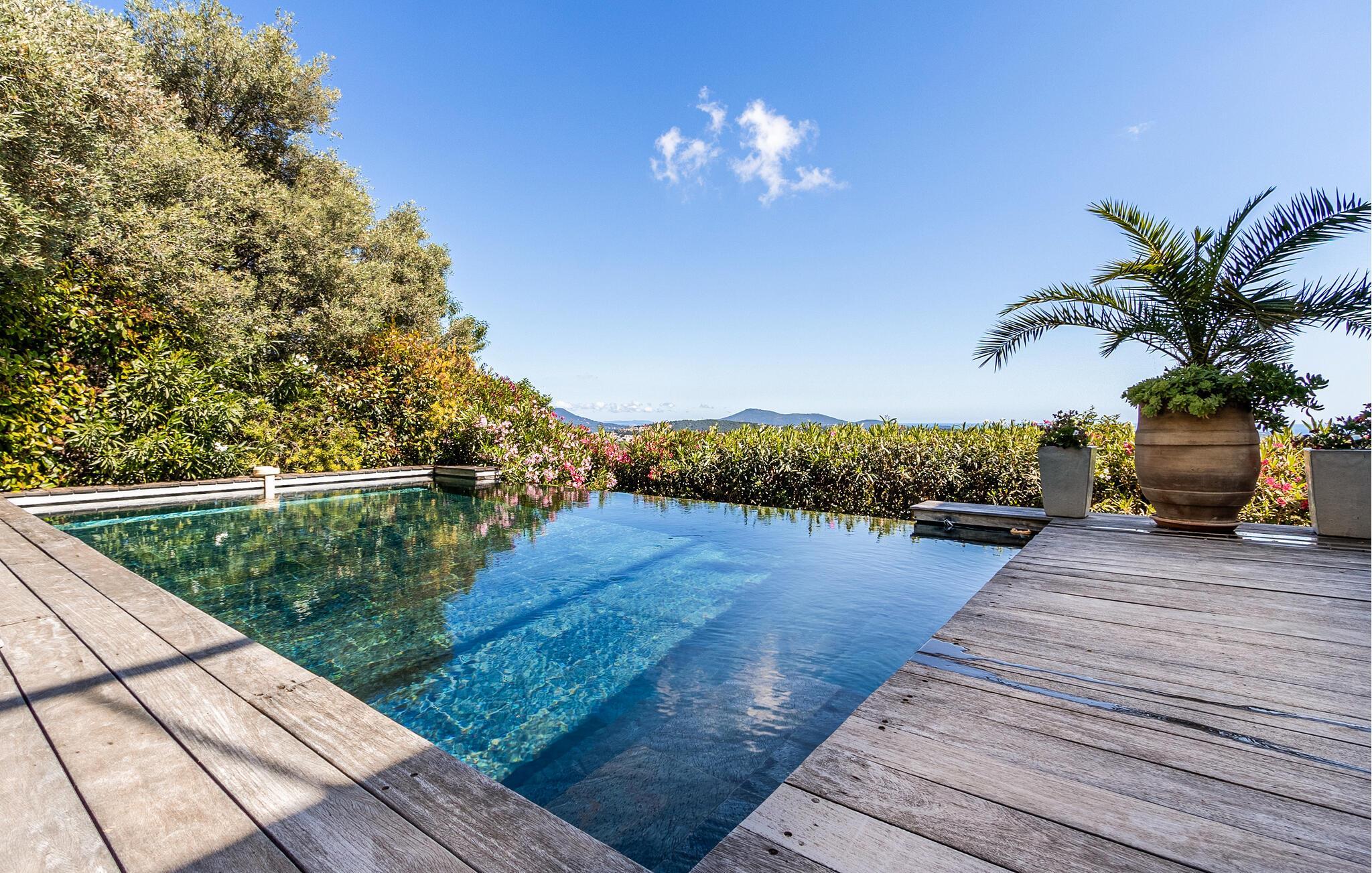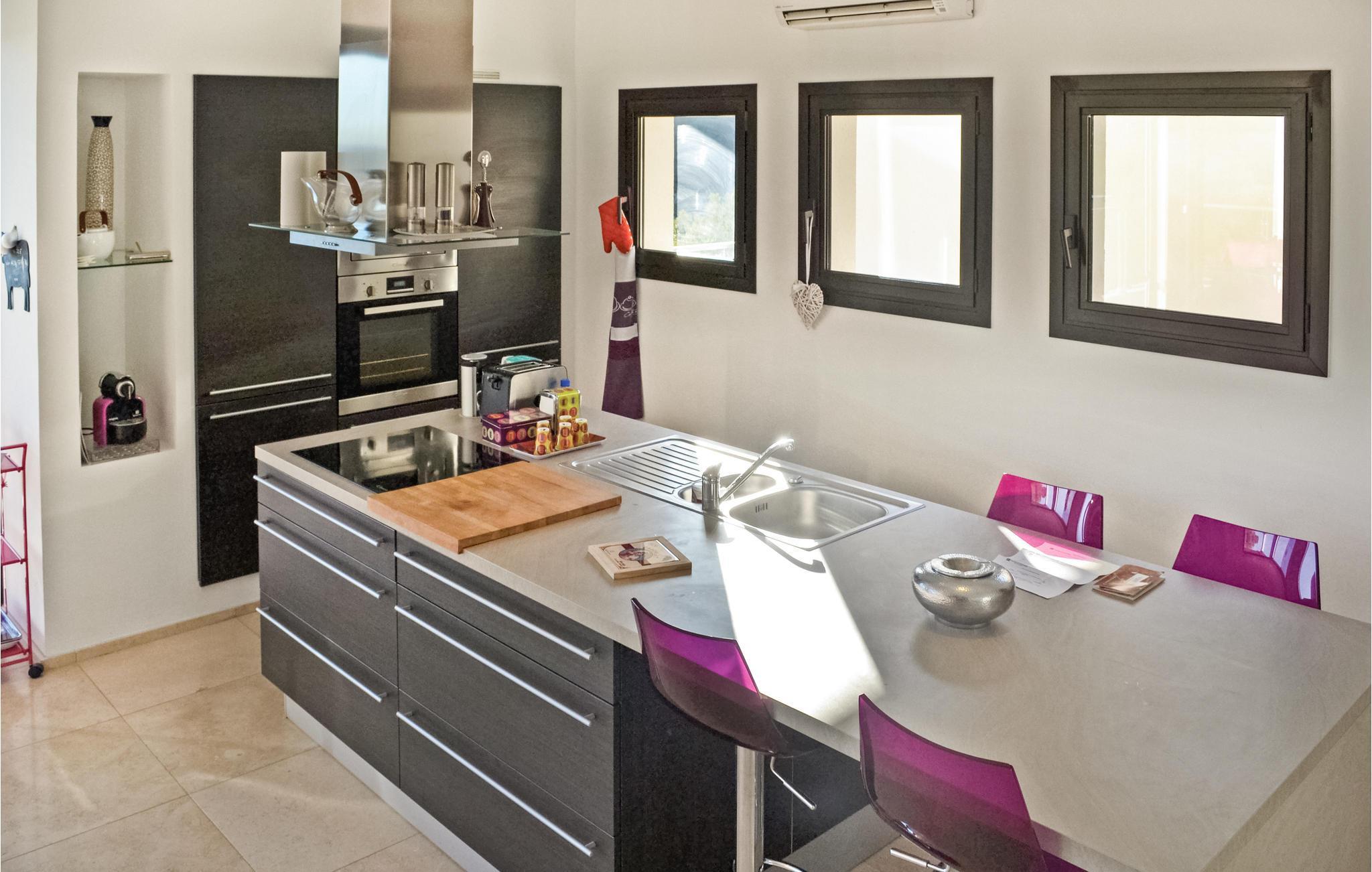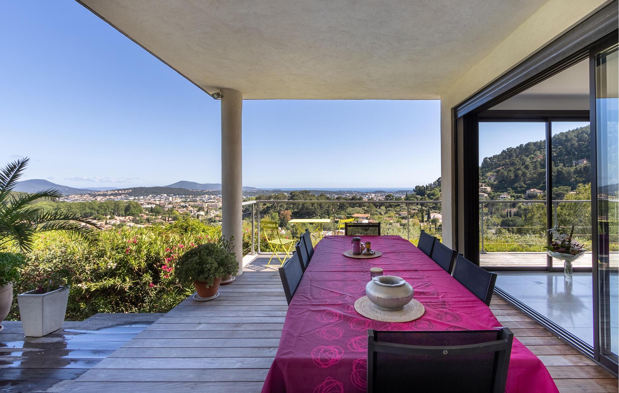 Dieses Haus liegt zwischen dem Mont Faron und dem Mont Coudon und bietet fantastische Blicke über die Bucht von Le Pradet und die Goldenen Inseln. Alle Zimmer, einschließlich der Schlafzimmer, haben große, gläserne Türen und Meeresblicke, während das Wohnzimmer auf eine hölzerne Terrasse mit einem überdachten Außenbereich und einem Pool geht. Die Küche hat einen Ausgang zu einem unabhängigen Patio, wo sie Ihr Frühstück genießen können. Le Pradet ist ein reizender Badeort zwischen Hyères und Toulon, der sich über 7 km der Küste entlang erstreckt. Wilde Buchten wechseln sich mit Sandstränden ab und sind von schönen Mittelmeerpflanzen umgeben. Die Îles d’Or sind die Juwelen der Küste und voller Erinnerungen an ihre aufgeregte Geschichte. Innentreppe ohne Geländer.