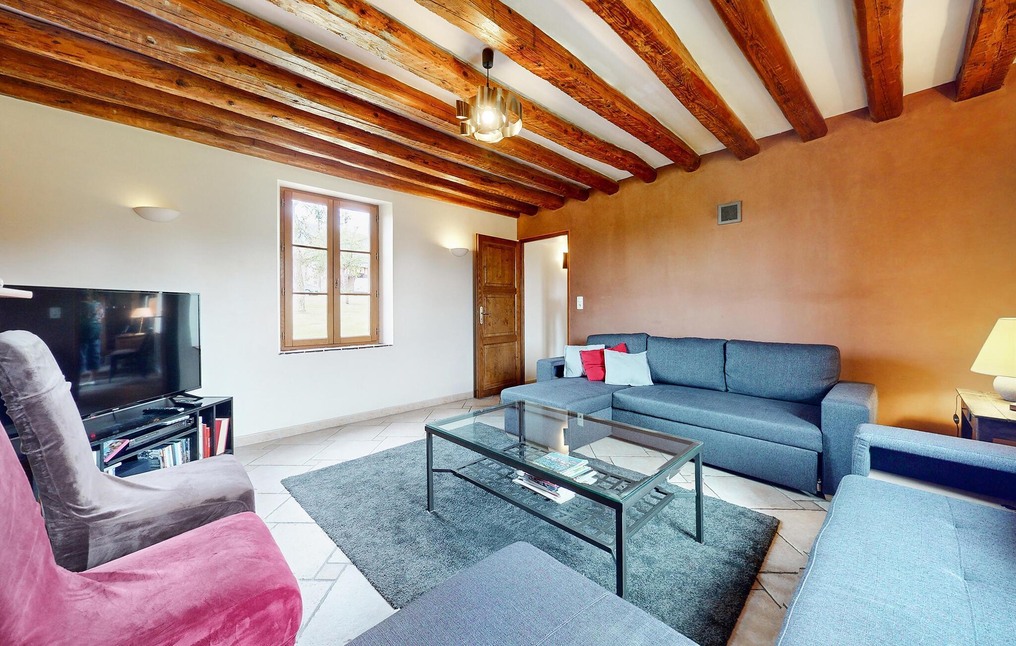 Im Inneren des geräumigen Hauses erwartet Sie eine große, gemütliche Gemeinschaftsfläche, die ideal für Familien- oder Freundesrunden ist. Machen Sie es sich auf den bequemen Sitzmöglichkeiten gemütlich und nutzen Sie den großen Beamer für gemeinsame Filmabende oder um Sportereignisse zu verfolgen. Die gut ausgestattete Küche und der Essbereich bieten alles, was Sie für entspannte Mahlzeiten brauchen.