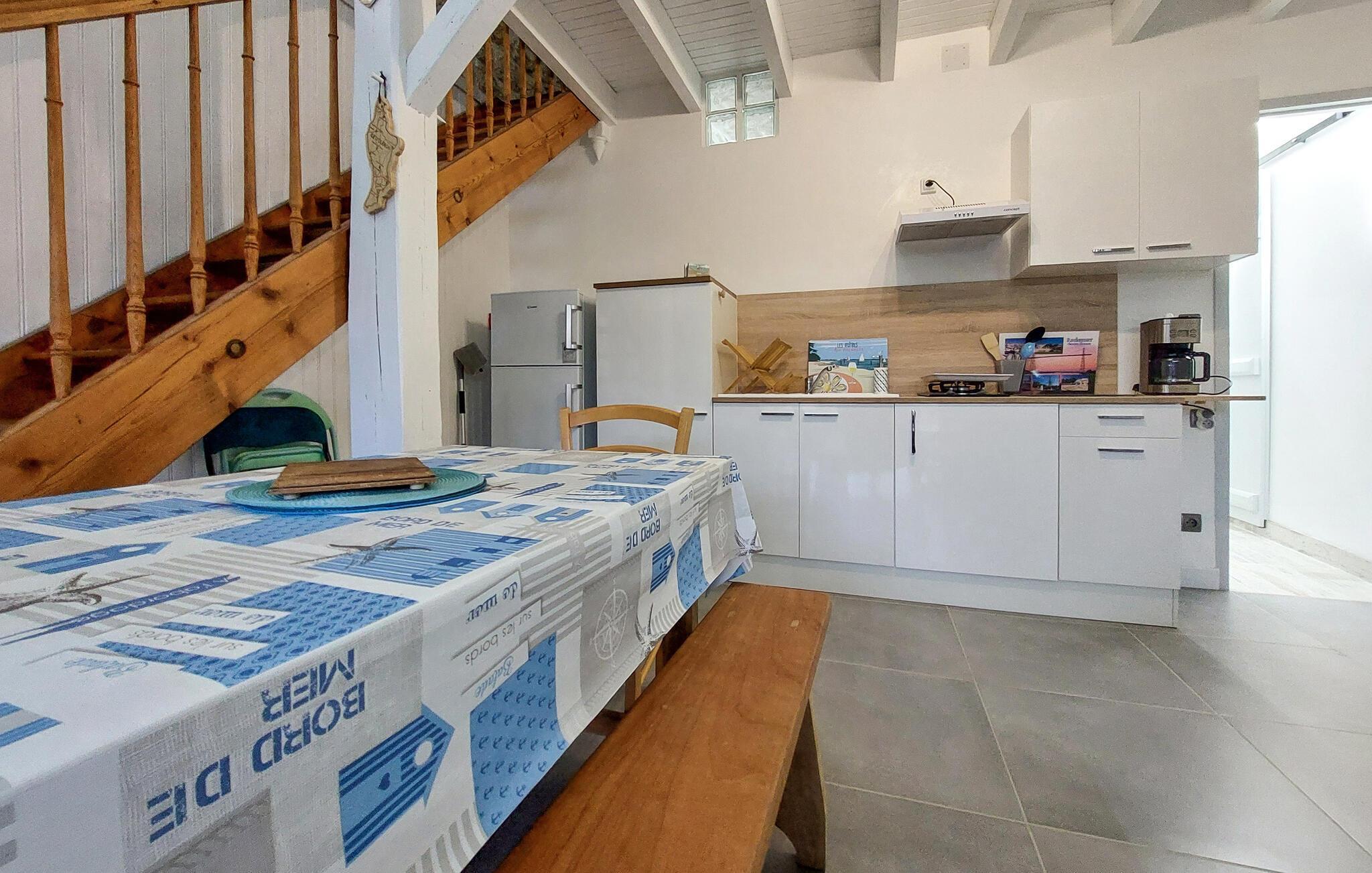 Machen Sie es sich im schön gestalteten Wohnraum mit hohen Decken, Natursteinwand und gemütlicher Sitzecke sowie zahlreichen geschmackvollen Details bequem. Die offene Küche ist praktisch eingerichtet und bietet die Möglichkeit, gemeinsam die Kochlöffel zu schwingen. Nutzen Sie den Esstisch für Ihre Urlaubsmahlzeiten und verbringen Sie entspannte Stunden vor dem Fernseher.